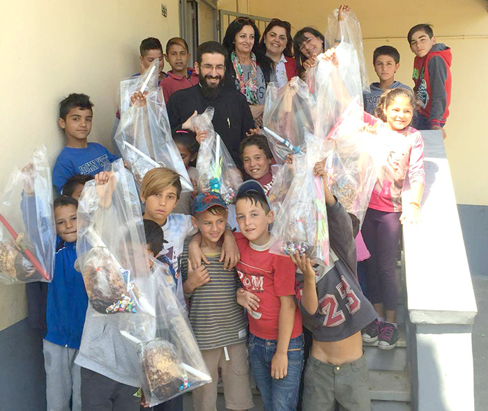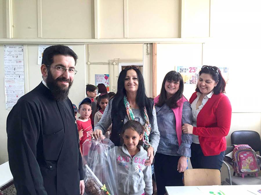 Ο π. Φίλιππος μοίρασε λαμπάδες και δώρα στα παιδιά, η πλειονότητα των οποίων είναι Ρομά και μετέφερε τις ευχές και την αγάπη του σεβασμιώτατου τόσο στα παιδιά όσο και στους εκπαιδευτικούς. Η επίσκεψη αυτή έχει καθιερωθεί τα τελευταία 7 χρόνια πριν από τις γιορτές των Χριστουγέννων και πριν τις ημέρες του Πάσχα, ώστε τα παιδιά αυτά να μη νιώθουν παιδιά ενός άλλου Θεού. Οπως τόνισε ο π. Φίλιππος, "Δεν έχουμε υιοθετήσει τα παιδιά αυτά.... διότι υιοθεσία σημαίνει να κάνεις ξένα παιδιά δικά σου... Εμείς νιώθουμε τα παιδιά αυτά δικά μας. Δεν είναι ξένα!".