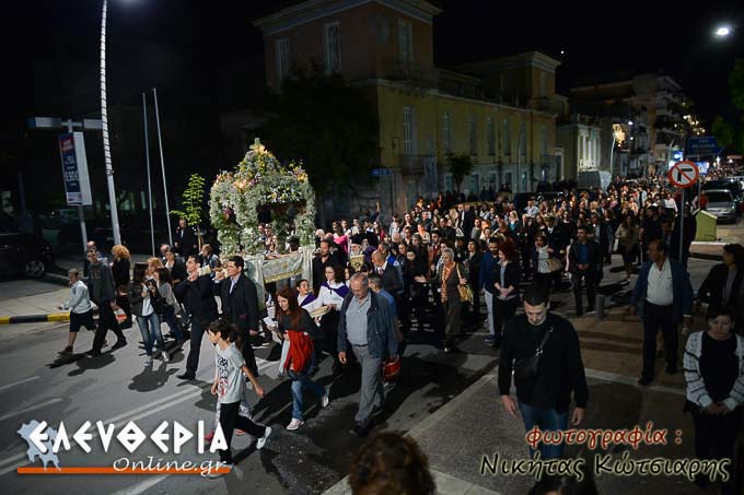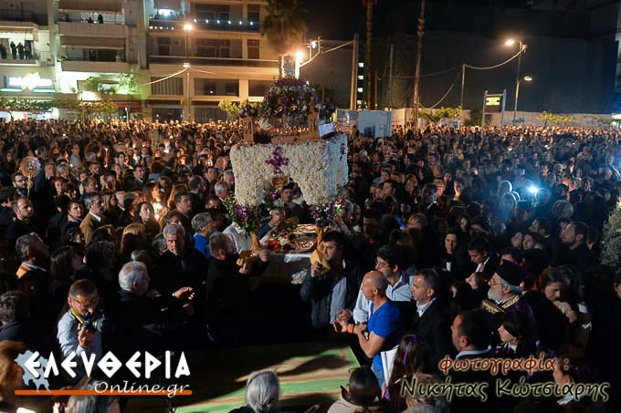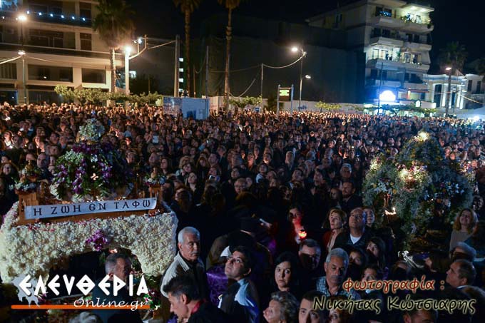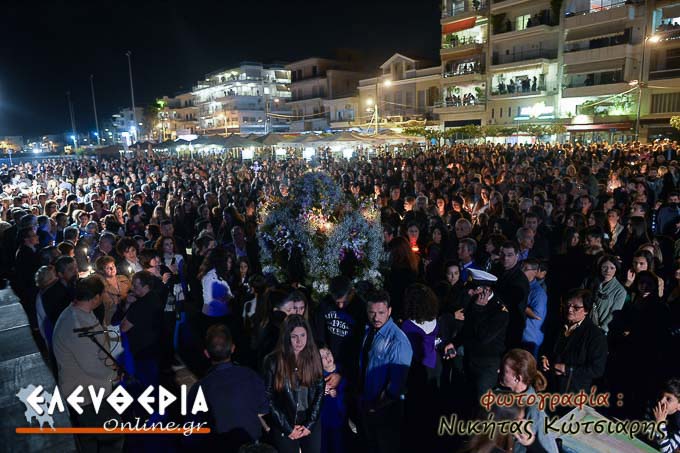 Η συνάντηση έγινε στην κεντρική προβλήτα του λιμανιού στην οδό Ναυαρίνου. Οι Επιτάφιοι ανήλθαν σε εξέδρα, όπου έγινε κοινή δέηση υπέρ υγείας και ενισχύσεως των πιστών που παρακολούθησαν την περιφορά, εψάλη μέρος των εγκωμίων, ενώ το θείο λόγο κήρυξε ο αρχιμανδρίτης Χερουβείμ Μουστάκας.