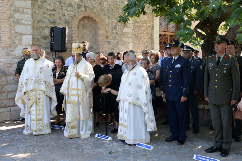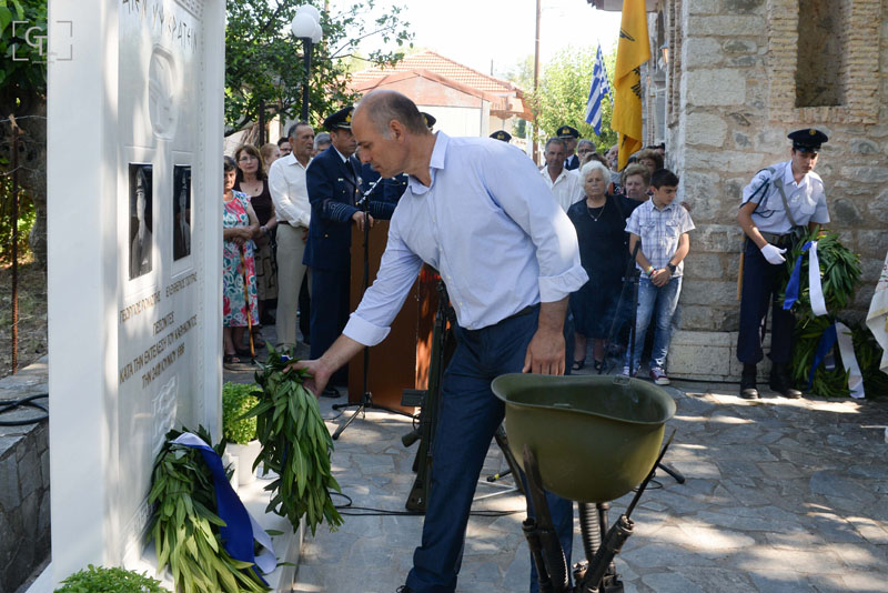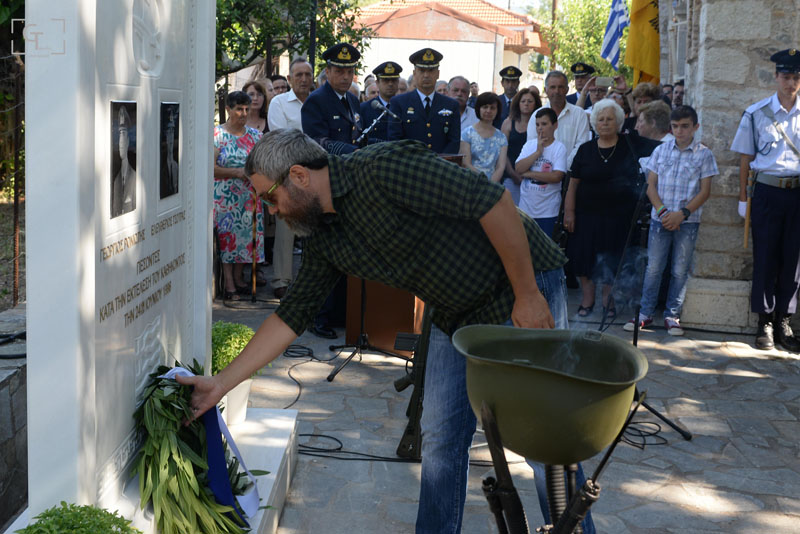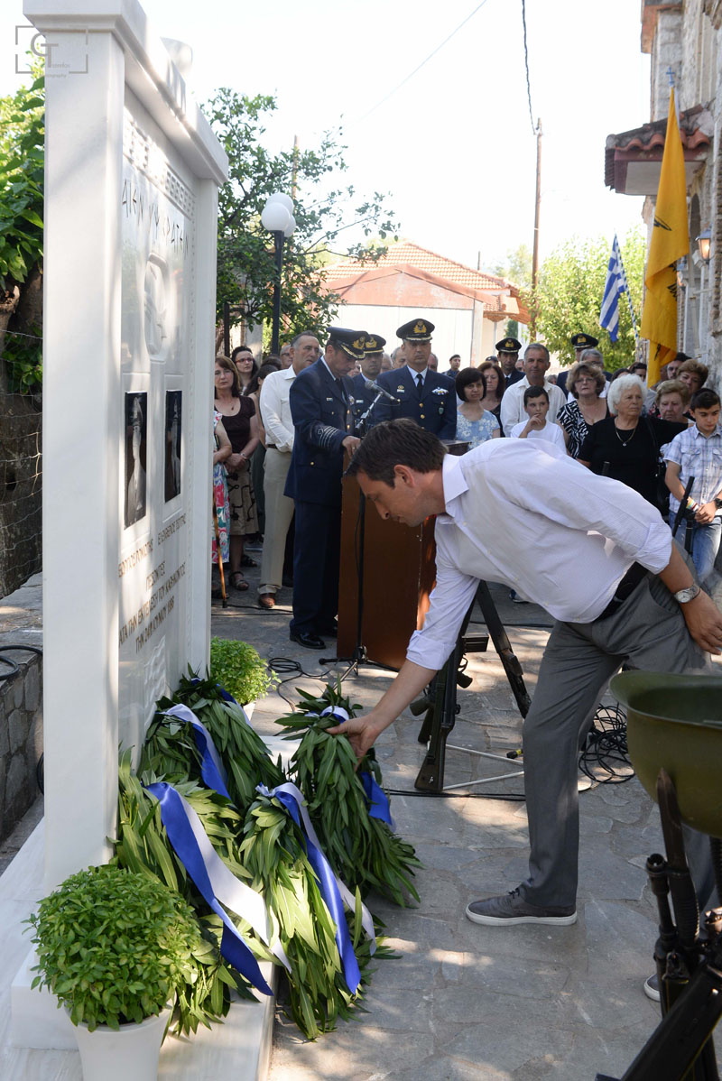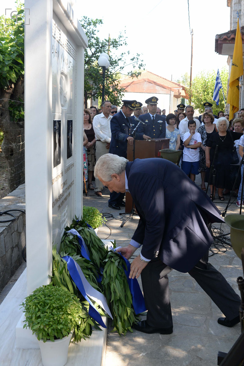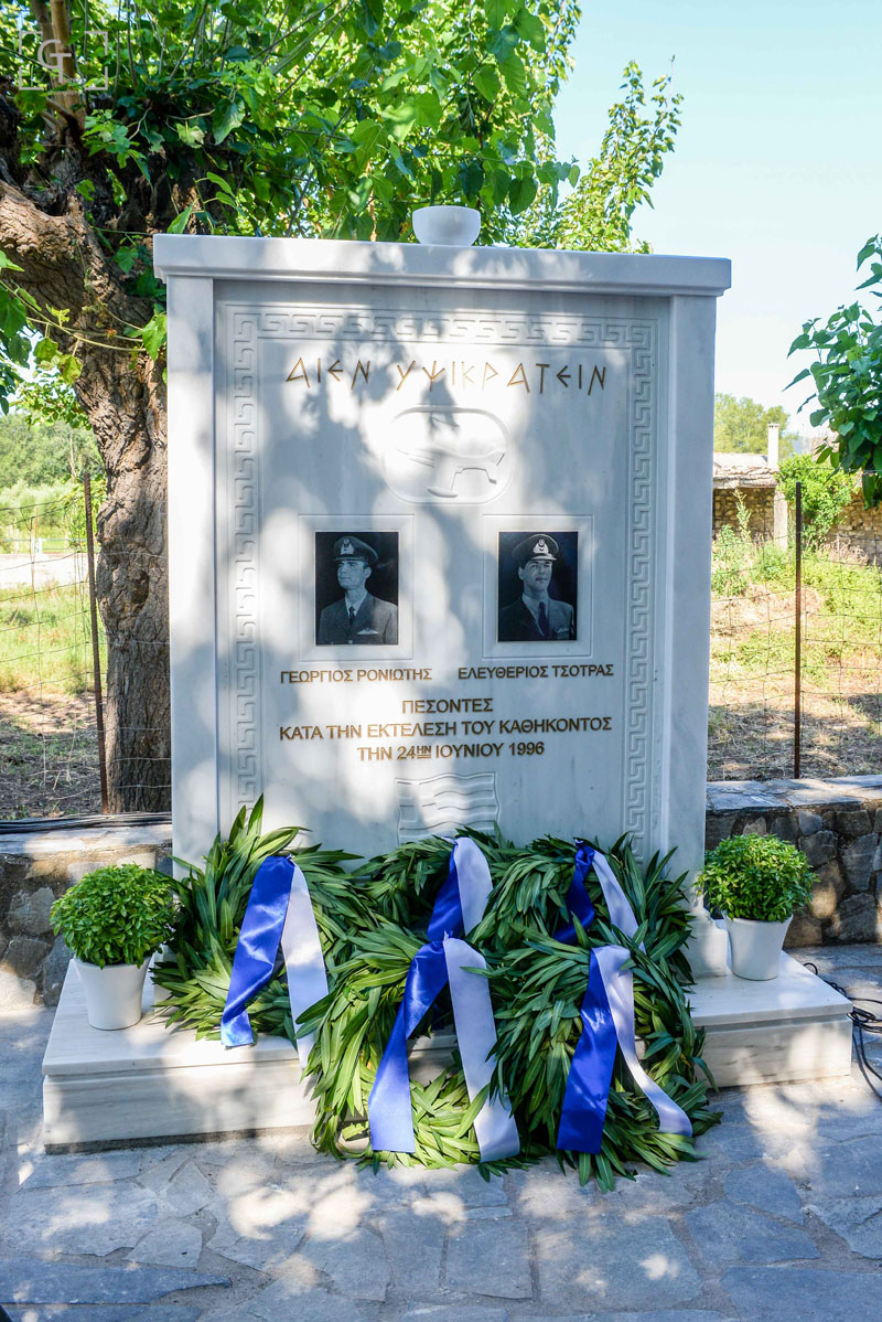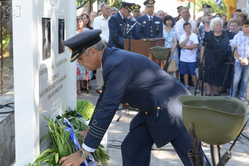 Επειτα τελέστηκε επιμνημόσυνη δέηση και στη συνέχεια σε κλίμα συγκίνησης έγιναν τα αποκαλυπτήρια του μνημείου των πεσόντων από το μητροπολίτη Χρυσόστομο και το διοικητή της 120 ΠΕΑ σμήναρχο Κωνσταντίνο Χίνη. Ακολούθως έγινε προσκλητήριο πεσόντων και εκφωνήθηκε ομιλία από εκπρόσωπο της 120 ΠΕΑ και κατάθεση στεφάνων, ενώ τιμές απέδωσαν άγημα της Αεροπορίας και η Στρατιωτική Μουσική της ΔΙΚΕ Τρίπολης.