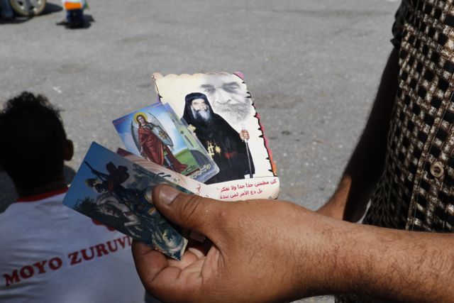 «Συνεπιβάτες» στο ταξίδι όλων τους στη Μεσόγειο; Οι άγιοι της χριστιανοσύνης -όπως ο Αγιος Γεώργιος, η Σάντα Μαρία, η Παναγία των Καθολικών- μαζί με μορφές της δικής τους θρησκείας, προφητών και αγγέλων. Οι μετανάστες μάς έδειξαν οι ίδιοι τις χάρτινες εικονίτσες, από τις οποίες έπαιρναν δύναμη για να συνεχίσουν τον σύγχρονο Γολγοθά τους.