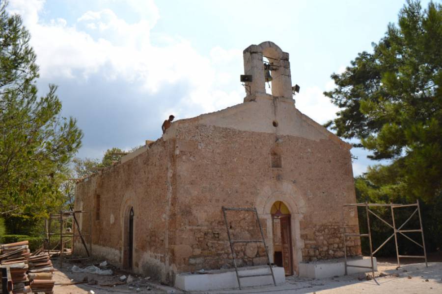 Ηδη μέσα στον Σεπτέμβριο ολοκληρώνεται η πρώτη φάση των εργασιών, που είναι η αλλαγή της σκεπής του ναού, η αποκάλυψη των τοίχων εσωτερικά και εξωτερικά με αφαίρεση των σοφάδων και των ασβεστωμάτων, αλλά και εξωτερικές εργασίες περιμετρικά του ναού για την αποφυγή υγρασιών στο μέλλον. Ο ίδιος ο ανάδοχος του έργου Βασίλης Γιάννης εκτίμησε ότι το αργότερο μέχρι το τέλος του μήνα θα έχουν ολοκληρωθεί όλα αυτά.