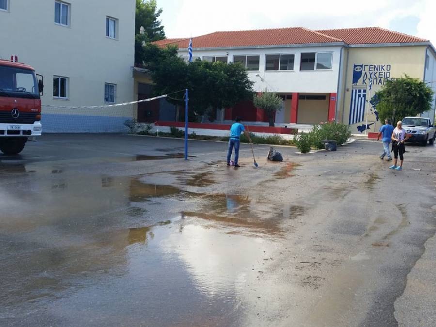 Πάντως για ακόμη μια φορά το πυροσβεστικό κλιμάκιο Κυπαρισσίας ανταποκρίθηκε στο αίτημα του σχολείου στέλνοντας όχημα και προσωπικό που καθάρισαν το προαύλιο.