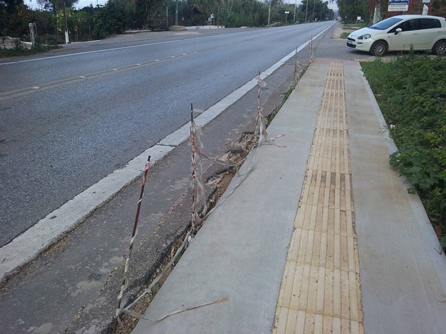 Μπορεί το έργο να ξεκίνησε τον Αύγουστο, αλλά ακόμη δεν έχει ολοκληρωθεί και κάποιες σιδερένιες βέργες με κορδέλες που είχαν τοποθετηθεί και το χώριζαν από τον δρόμο, σήμερα τα περισσότερα από αυτά έχουν φύγει. Μια ακόμη παγίδα είναι το κενό που έχει δημιουργηθεί μεταξύ δρόμου και πεζόδρομου (να σημειώσουμε ότι δεν έχουν υψομετρική διαφορά), ένα μικρό κενό σε όλο το μήκος, που αλίμονο αν εκεί βρεθεί ρόδα δίτροχου.