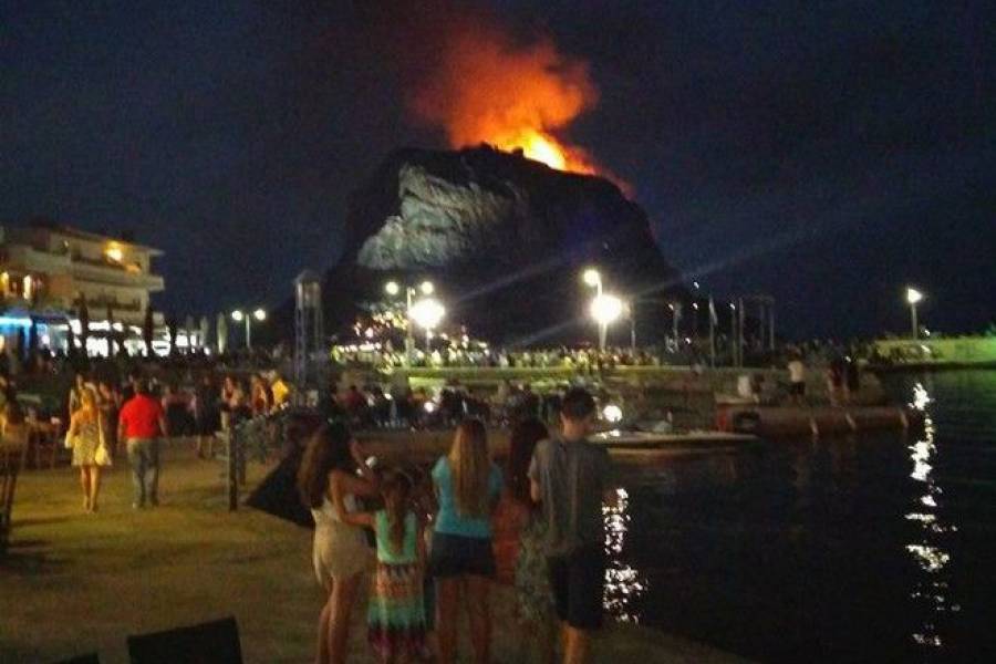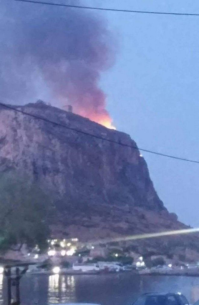 Φωτιά ξέσπασε στο Κάστρο Μονεμβασιάς το βράδυ της Κυριακής.