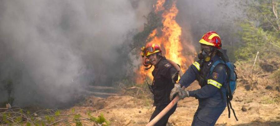 Ισχυρές επίγειες δυνάμεις της πυροσβεστικής επιχειρούν να ελέγξουν την φωτιά, βοηθούμενες και από εναέρια μέσα που επιχειρούν από το πρωί.