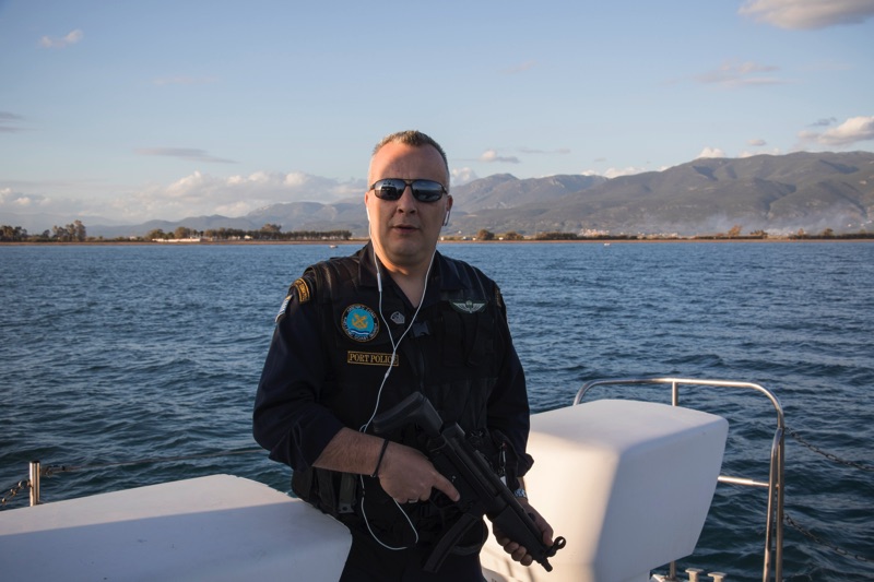 Γι’ αυτό και όταν η “Ε” επιβιβάστηκε στο σκάφος του Κεντρικού Λιμεναρχείου Καλαμάτας για μια περιπολία ρουτίνας στον Μεσσηνιακό Κόλπο, το πλήρωμα μας υποδέχτηκε... πάνοπλο.