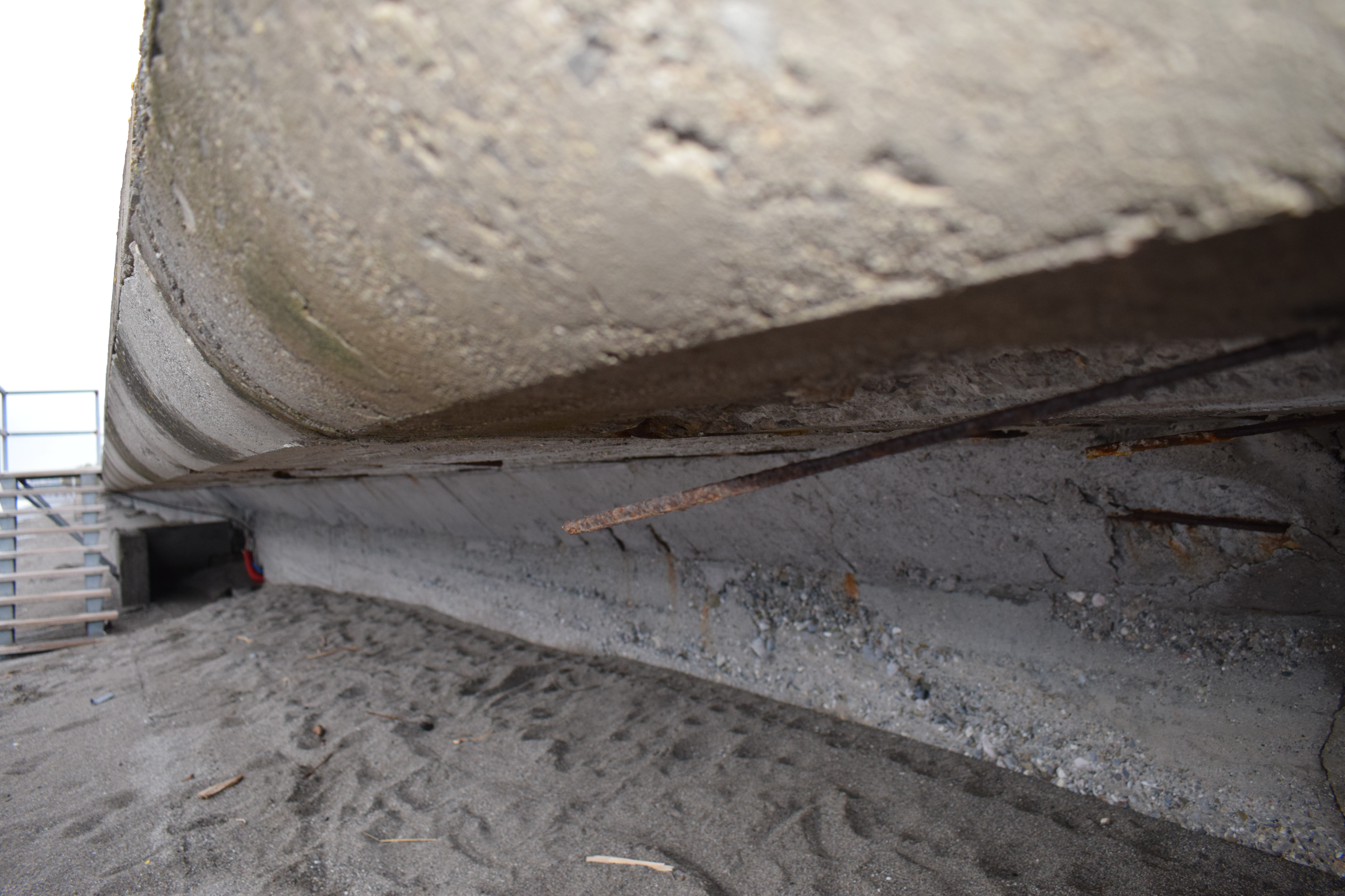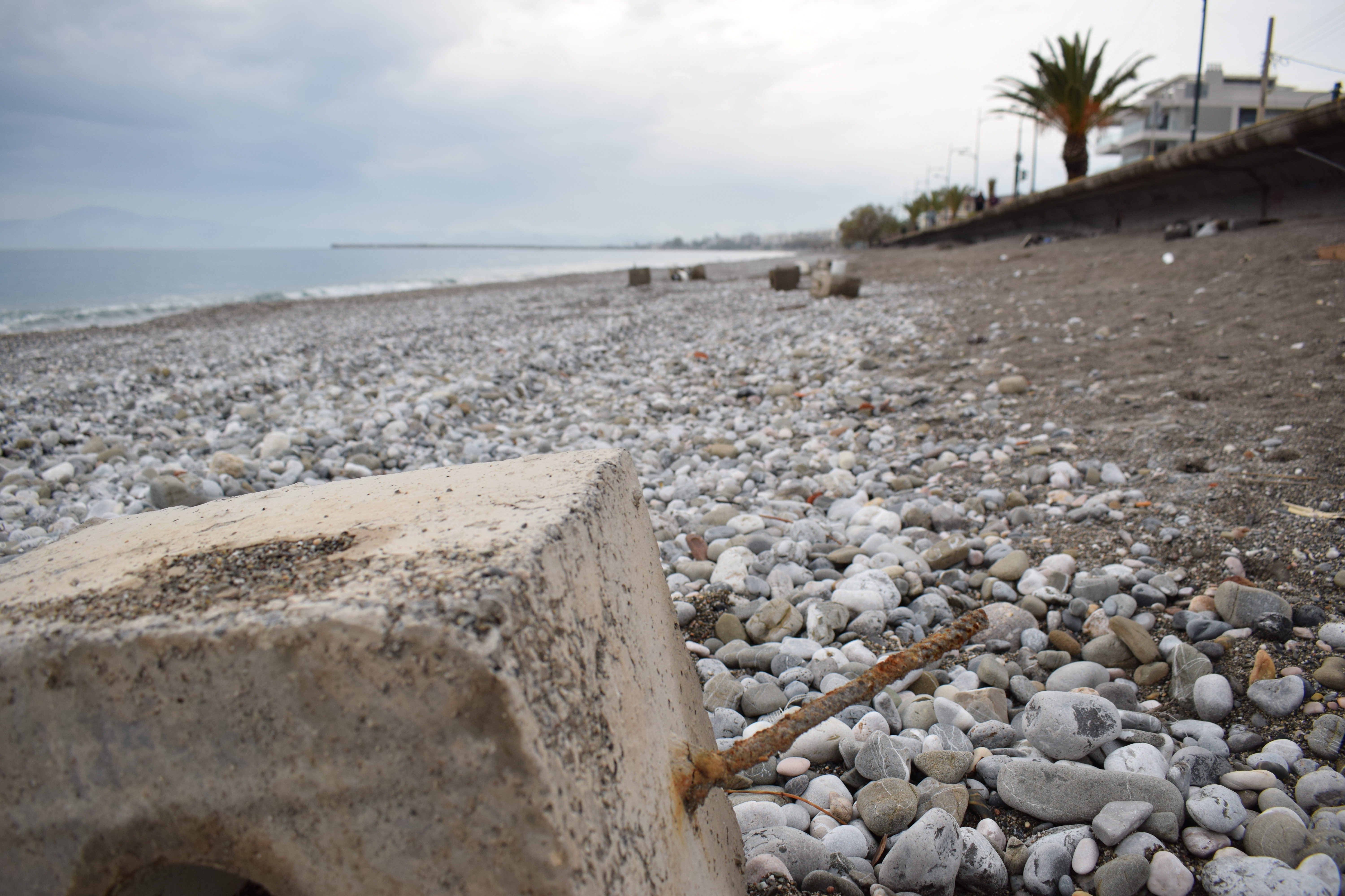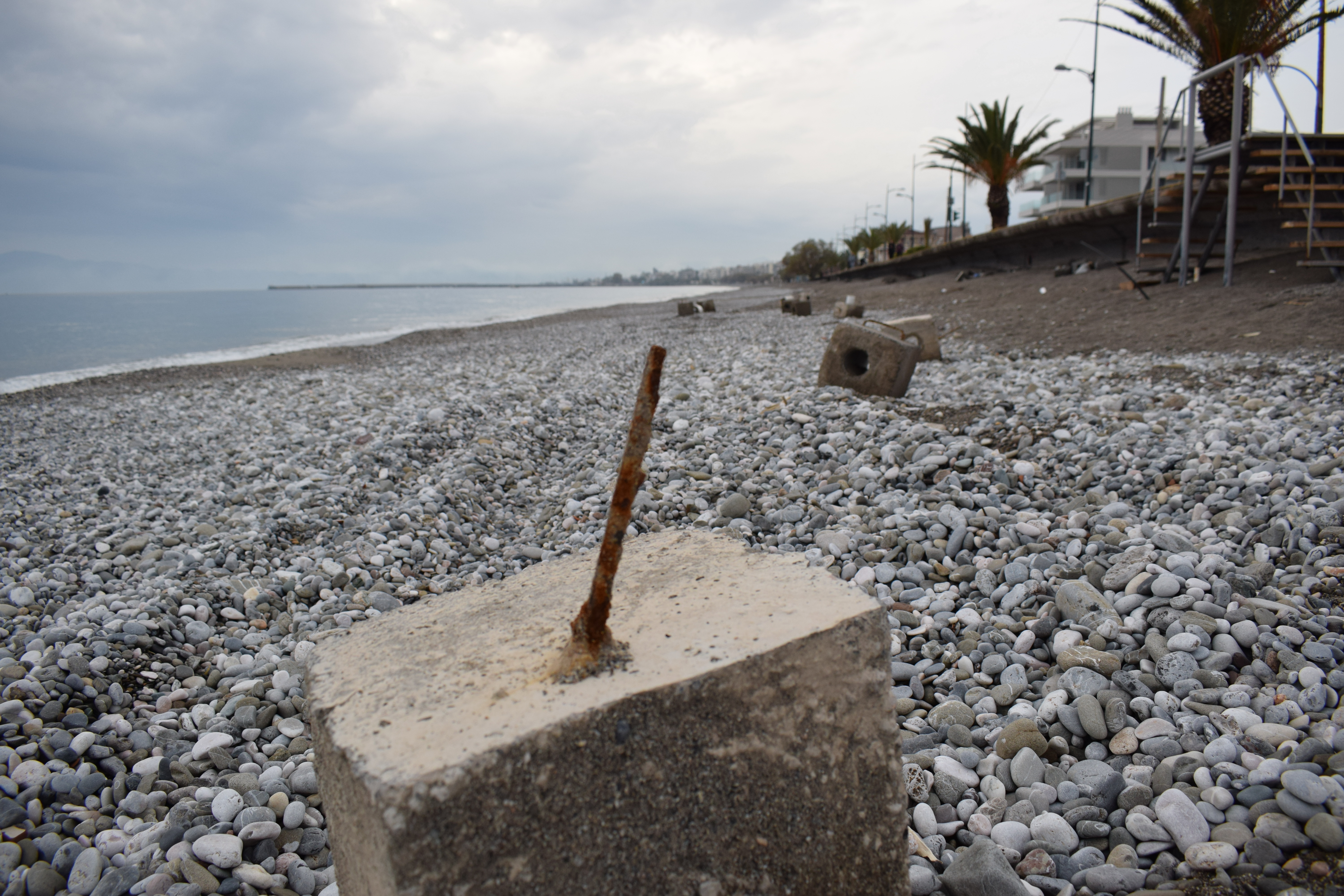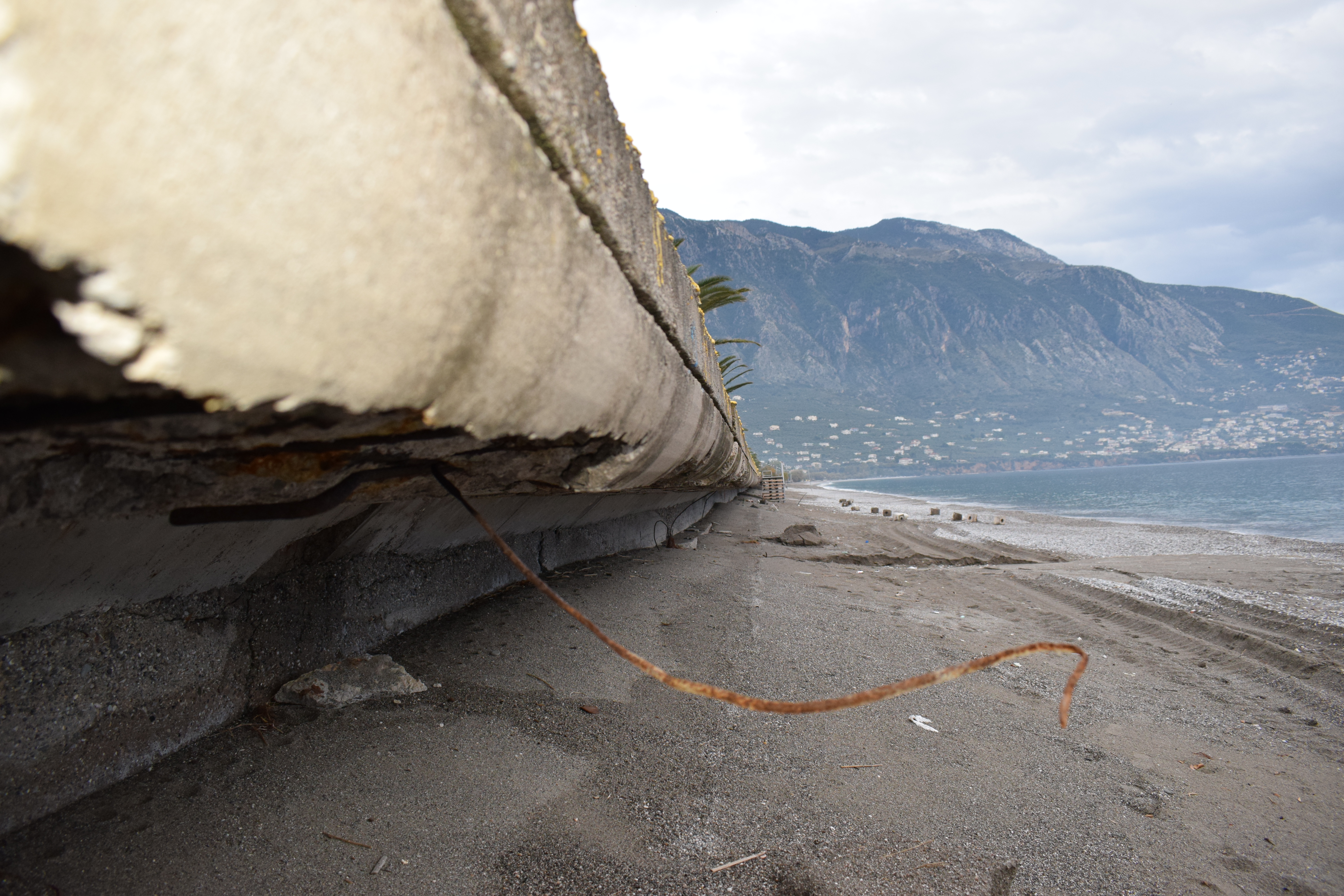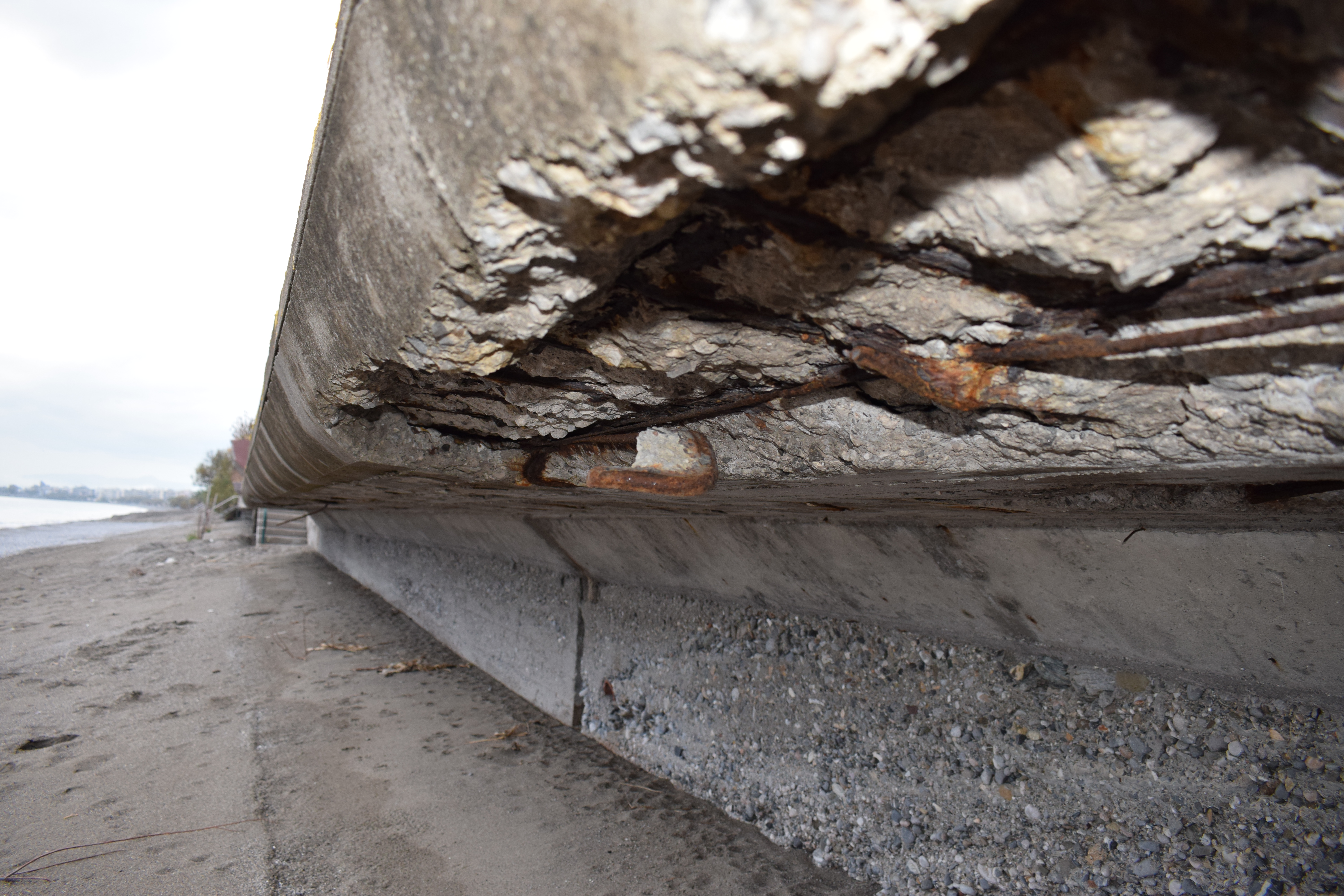 Όπως φαίνεται καθαρά στο φωτορεπορτάζ της "Ε", σκουριασμένα σίδερα προεξέχουν του πεζοδρομίου με ό,τι αυτό συνεπάγεται για την ασφάλεια πολλών οικογενειών, οι οποίες ουκ ολίγες φορές κάνουν βόλτα με τα παιδιά τους πλάι στο κύμα, ακόμα και τον χειμώνα.
