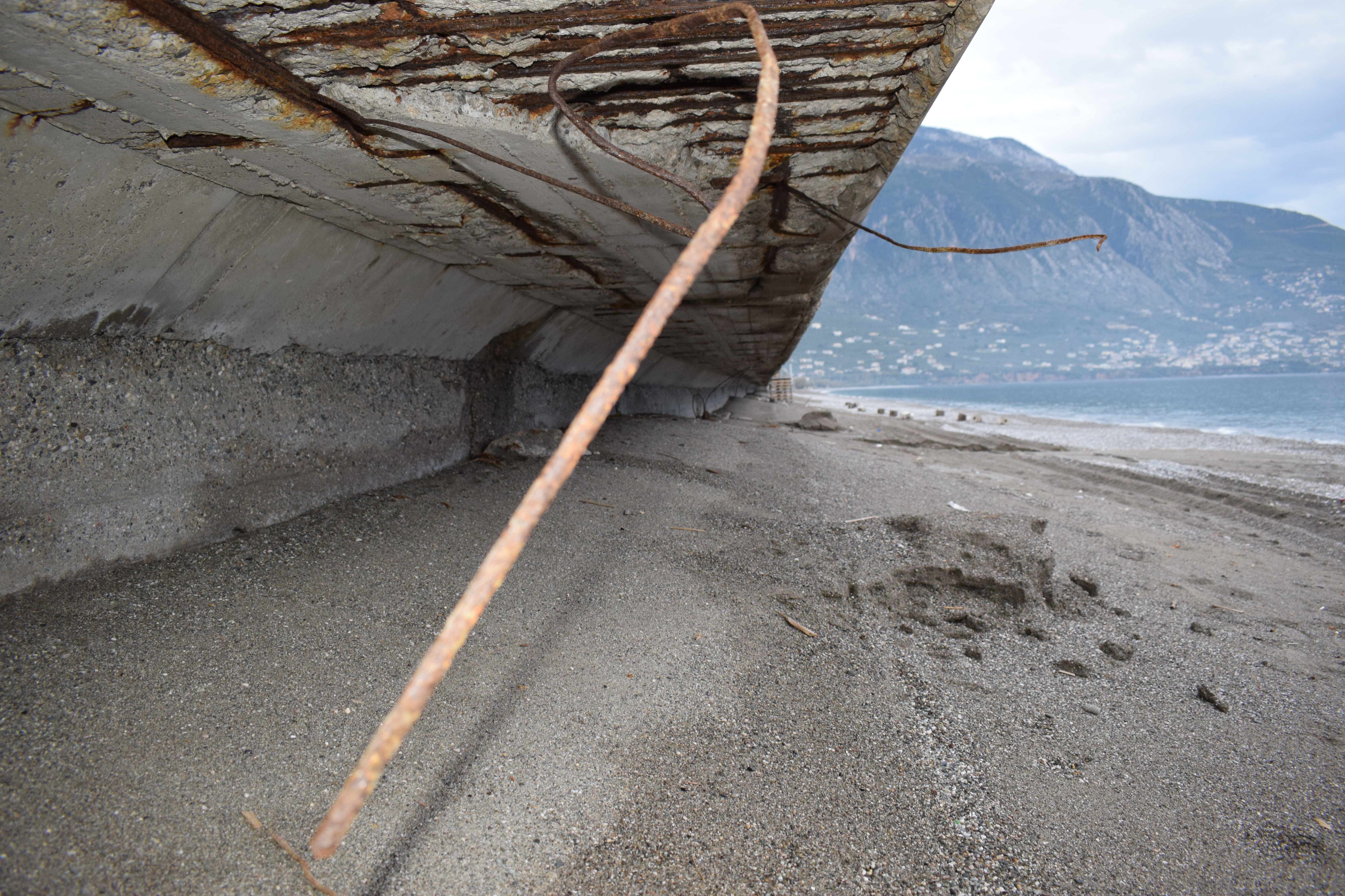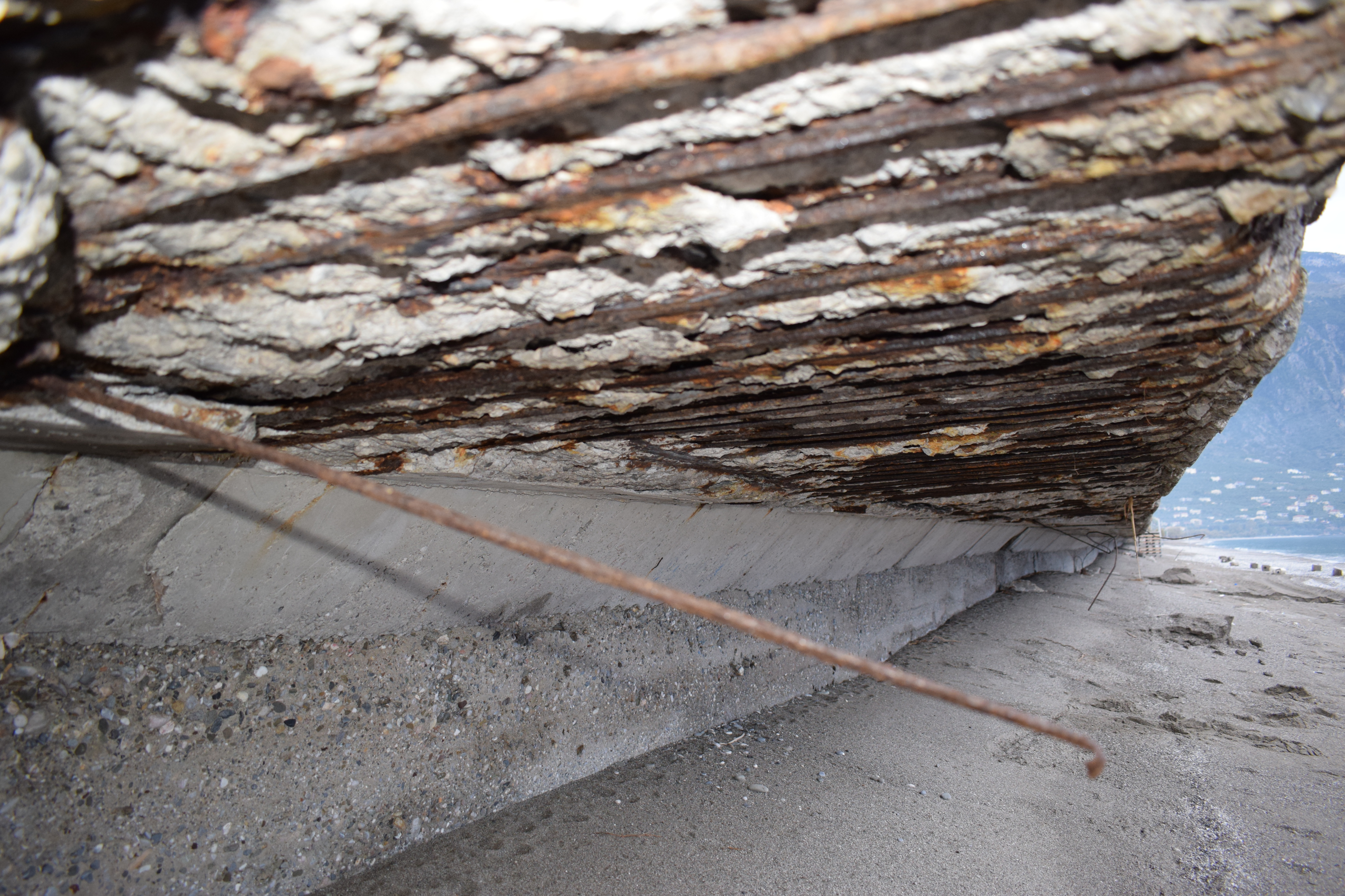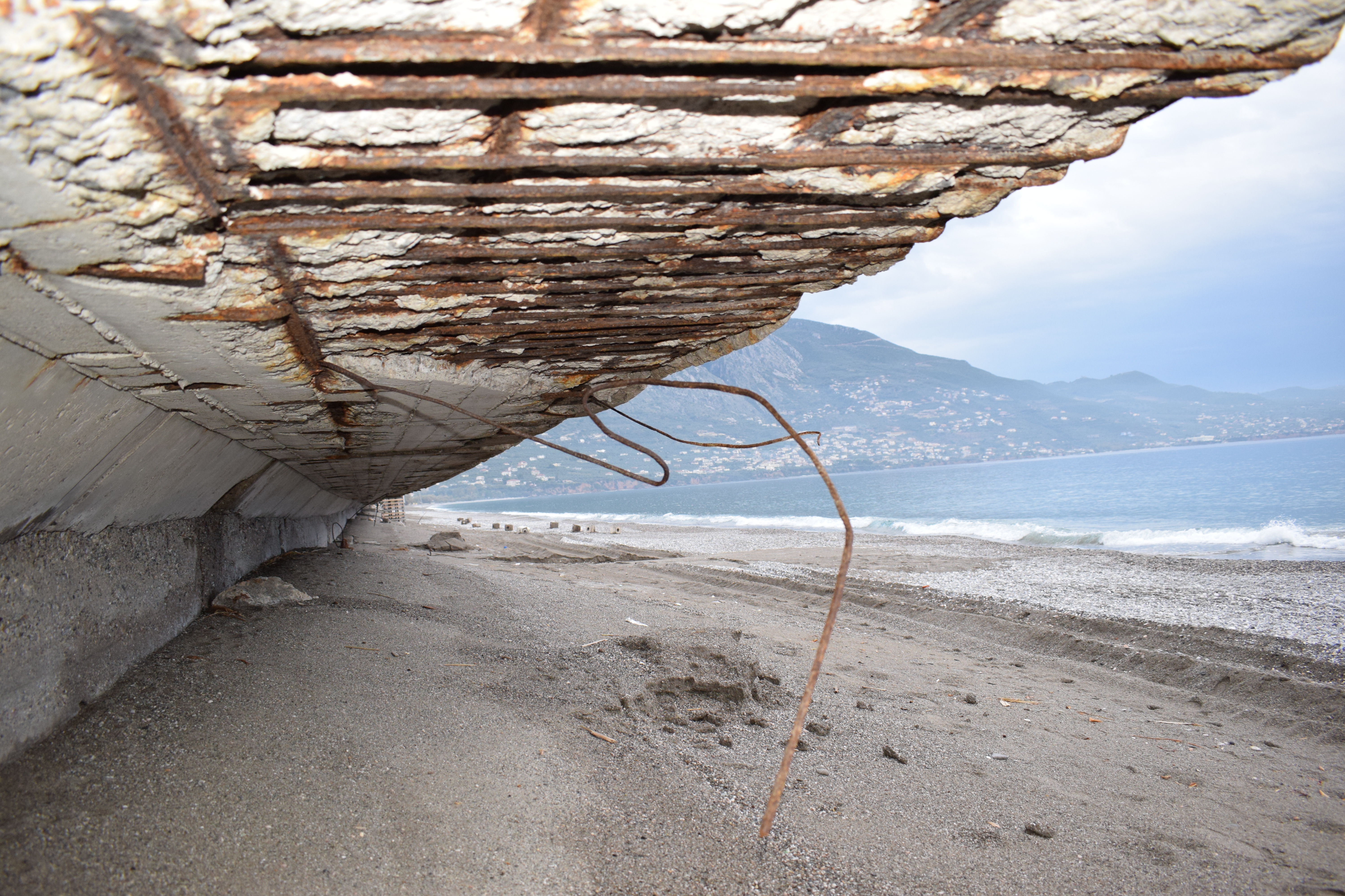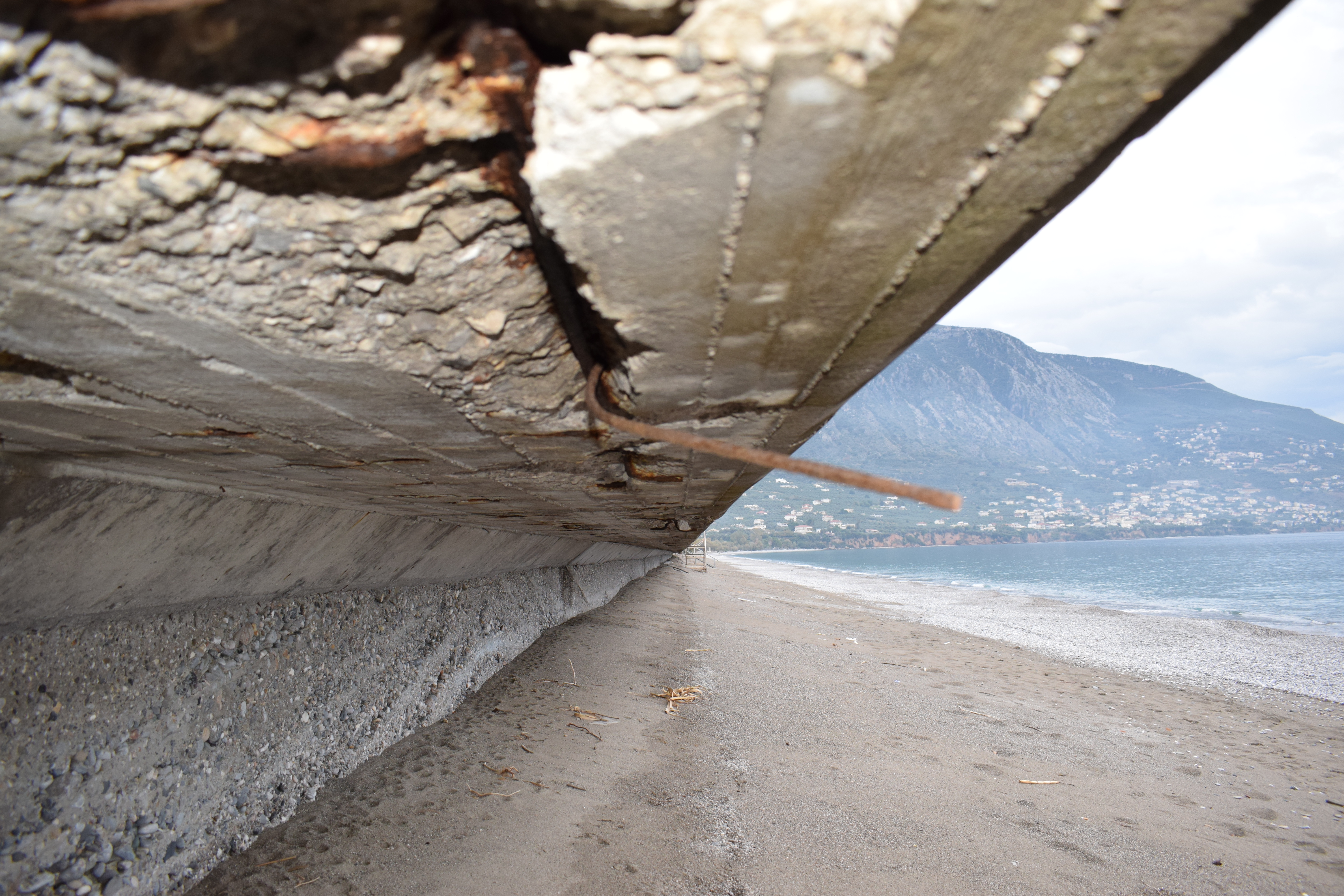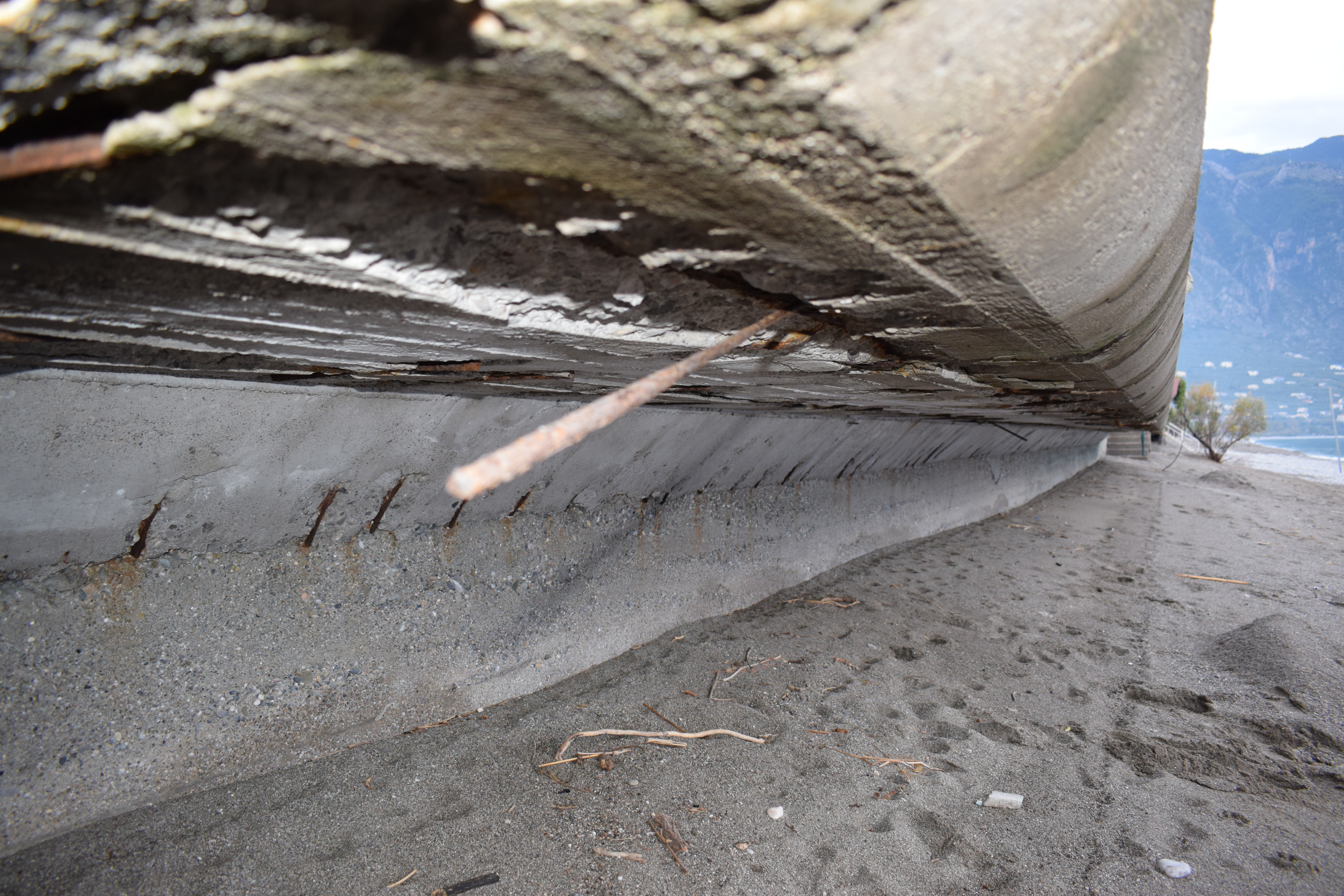 Όπως φαίνεται καθαρά στο φωτορεπορτάζ της "Ε", σκουριασμένα σίδερα προεξέχουν του πεζοδρομίου με ό,τι αυτό συνεπάγεται για την ασφάλεια πολλών οικογενειών, οι οποίες ουκ ολίγες φορές κάνουν βόλτα με τα παιδιά τους πλάι στο κύμα, ακόμα και τον χειμώνα.