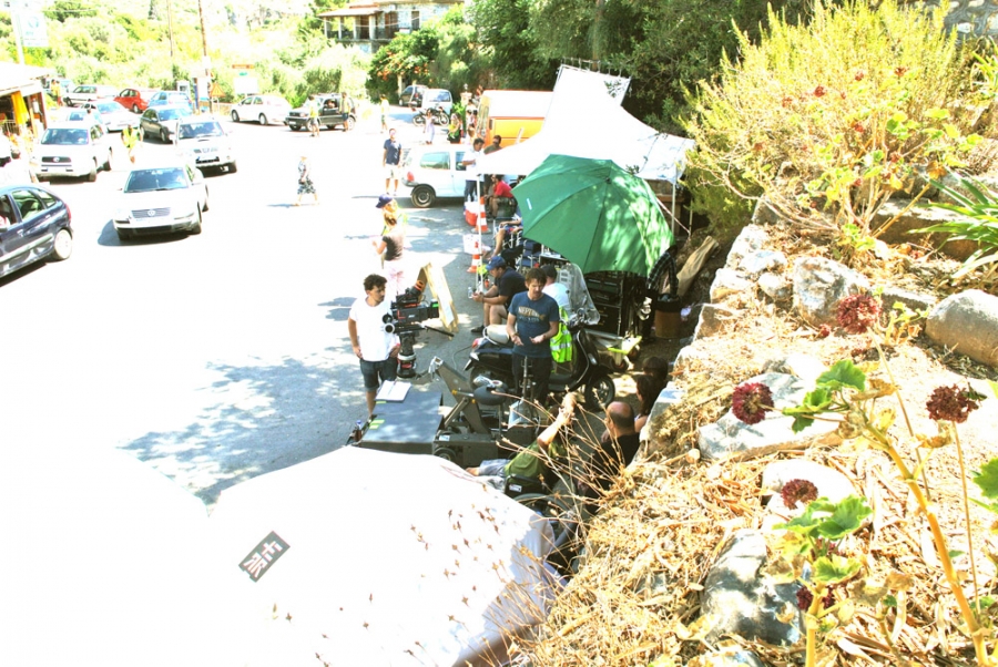 Προχθές οι υπεύθυνοι του συνεργείου επέβλεπαν τους εξωτερικούς χώρους που θα γίνονταν τα γυρίσματα, στα οποία μετείχαν περίπου 10 άτομα.