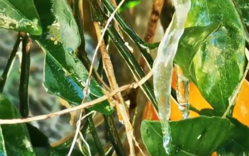 Αποτέλεσμα ήταν να σχηματιστούν οι γνωστοί σταλακτίτες με το παγωμένο νερό κάτω από τις πορτοκαλιές σε αρκετά κτήματα στον Αργολικό κάμπο, από την τεχνητή βροχή που χρησιμοποιούν οι αγρότες για την προστασία των φυτικού κεφαλαίου, σύμφωνα με το argolikeseidhseis.gr.