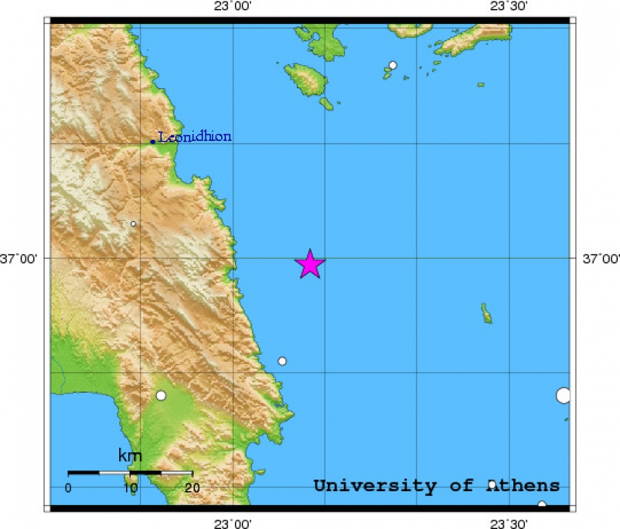 Σεισμική δόνηση μεγέθους 4,4R βαθμών της κλίμακας Ρίχτερ σημειώθηκε την Τρίτη στις 8.59 μ.μ. Το επίκεντρο εντοπίζεται 32 χλμ. ΝΑ από το Λεωνίδιο στο Μυρτώο Πέλαγος.