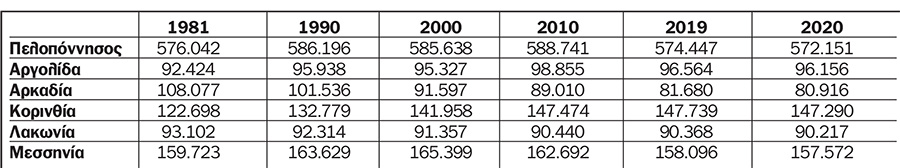 Σε κάθε περίπτωση αξίζει να σημειωθεί ότι τις τέσσερις τελευταίες δεκαετίες ο πληθυσμός της Αρκαδίας έχει μειωθεί κατά 25%, ενώ αντιθέτως ο πληθυσμός της Κορινθίας έχει αυξηθεί κατά 20%. Αύξηση 4% παρουσιάζει τα τελευταία 40 χρόνια και ο πληθυσμός της Αργολίδας.