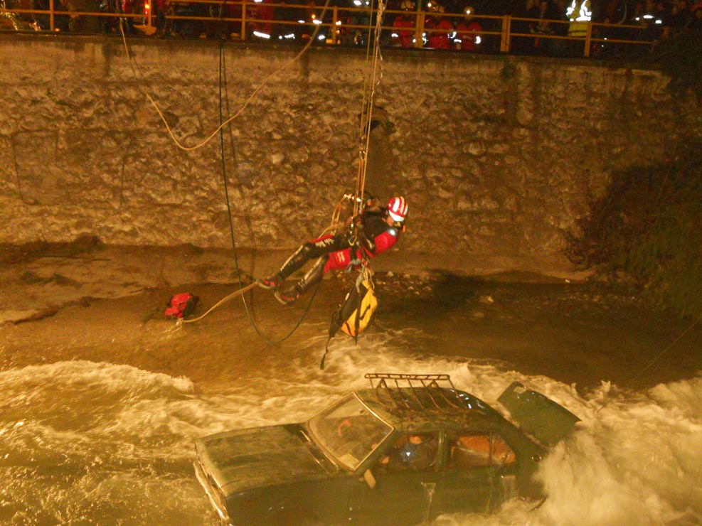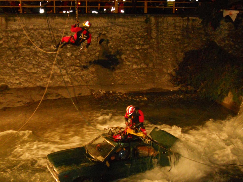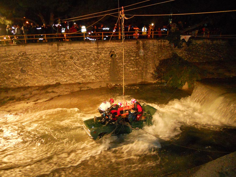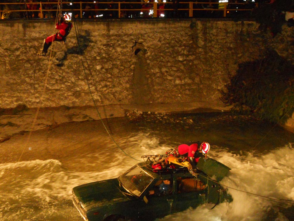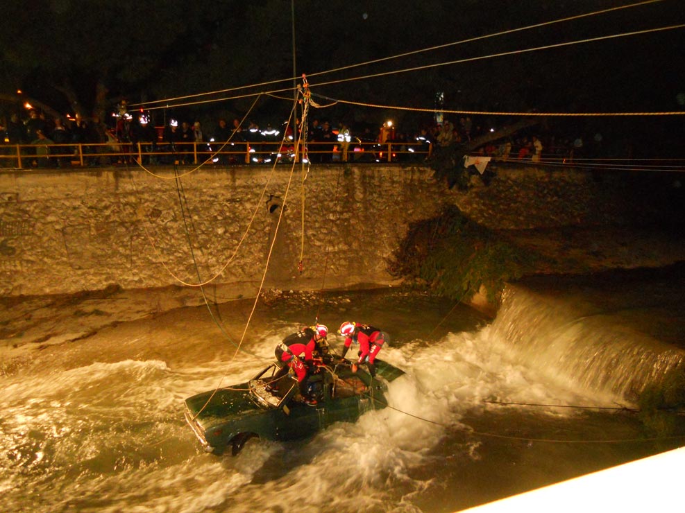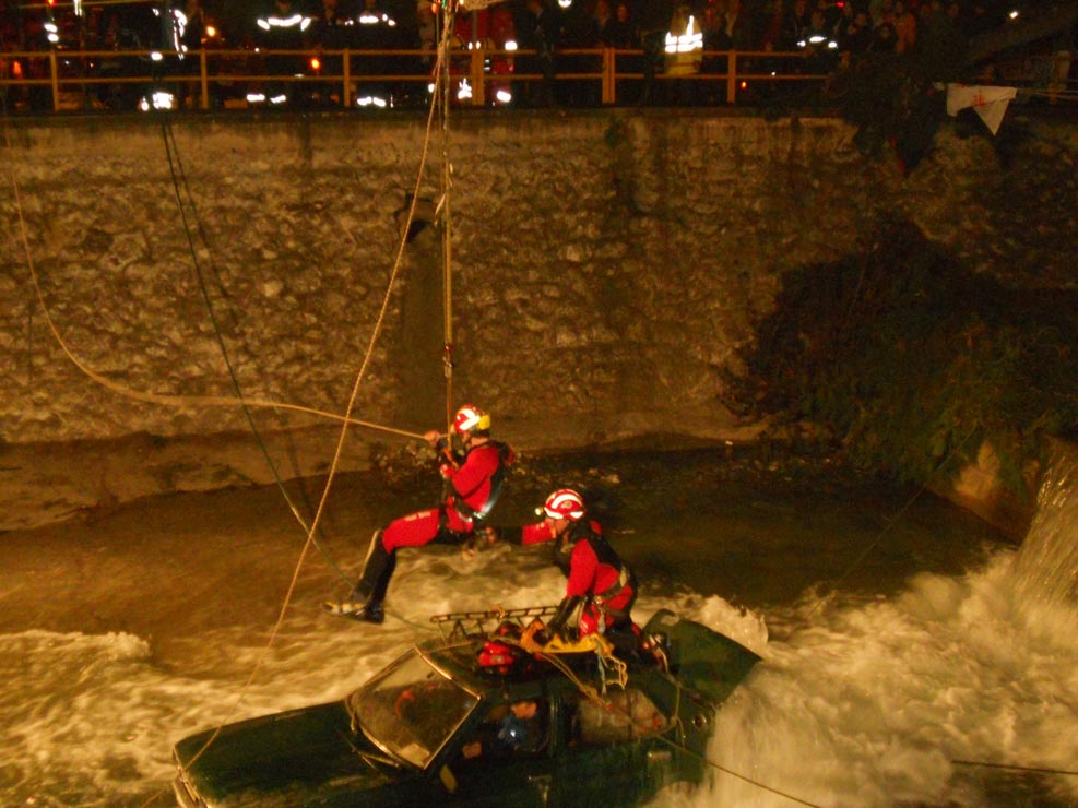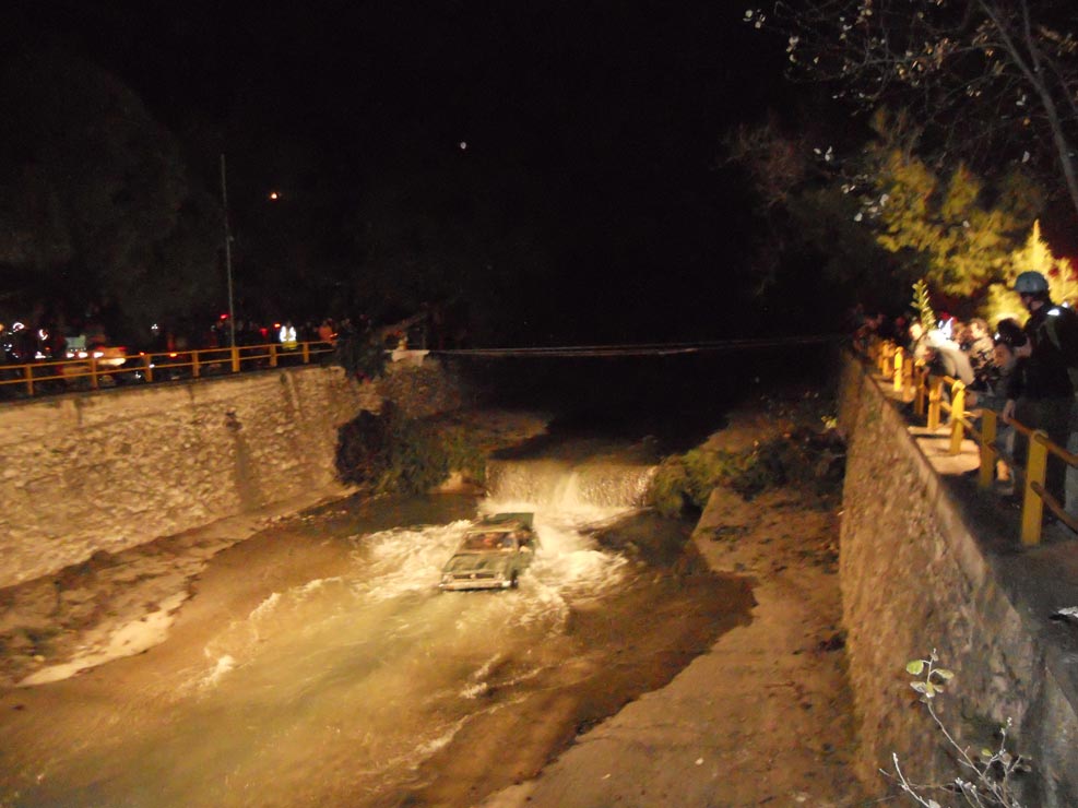 Πλήθος κόσμου συγκεντρώθηκε απόψε στην κοίτη του Νέδοντα, στη συμβολή των οδών Μακεδονίας και Αρτέμιδος, για να παρακολουθήσει από κοντά την άσκηση απεγκλωβισμού οδηγού, στο πλαίσιο της Παγκόσμιας Ημέρας Πολιτικής Προστασίας.