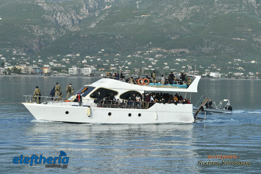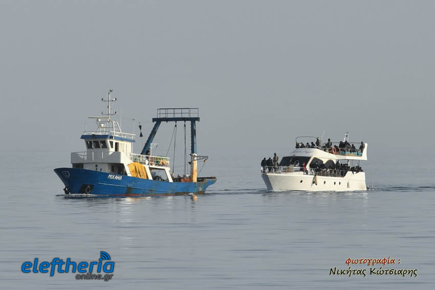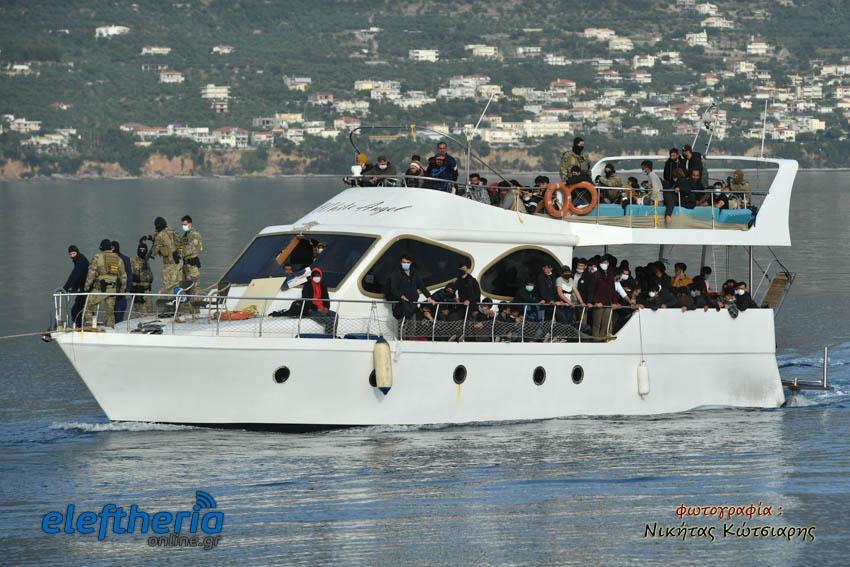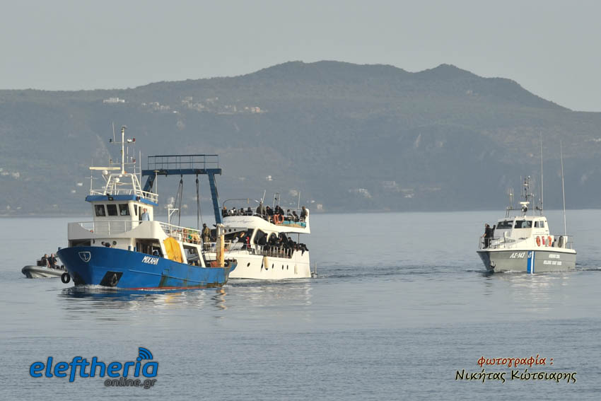Πρόκειται για άτομα από Συρία, Αφγανιστάν και Πακιστάν που είχαν ξεκινήσει από την Τουρκία με προορισμό την Ιταλία, αλλά εξέπεμψαν σήμα κινδύνου μέσω του "Ολυμπία Ράδιο" το απόγευμα της Κυριακής του Πάσχα. Αρχικά ρυμουλκήθηκαν από παραπλέον φορτηγό πλοίο και έπειτα την ρυμούλκηση ανέλαβε μεγάλο σκάφος του Λιμενικού Σώματος.