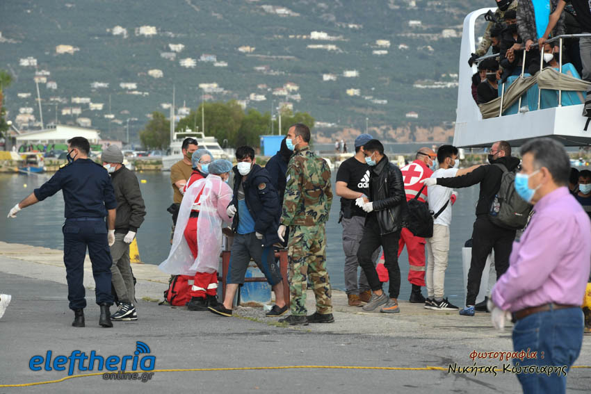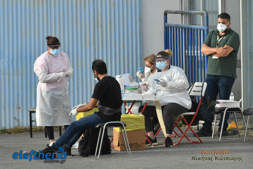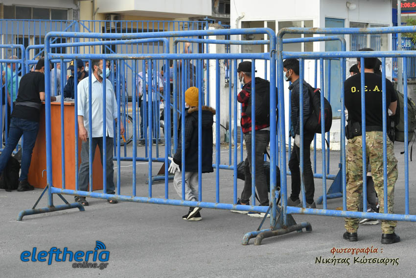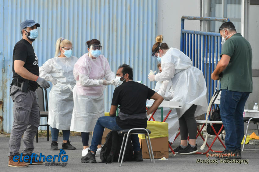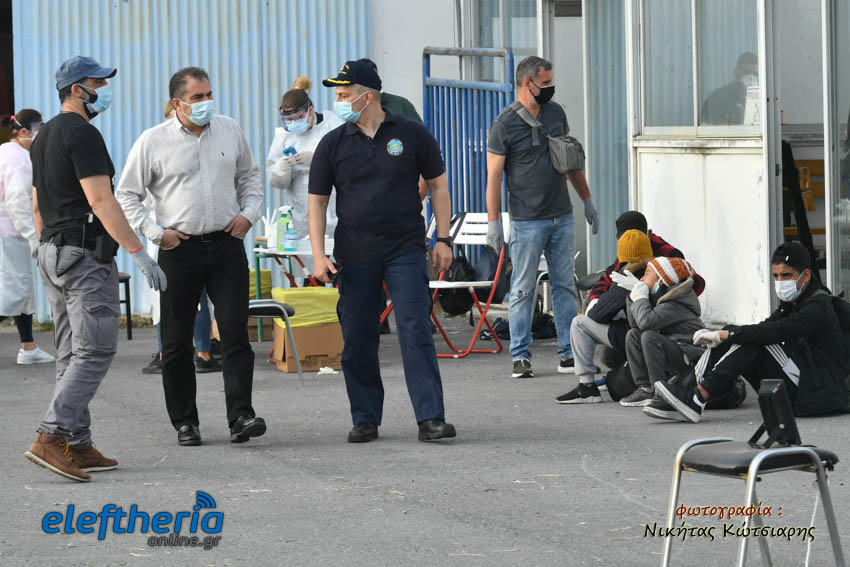 Τα 182 άτομα εξετάζονται από κλιμάκιο του ΕΟΔΥ για κορονοϊό, ενώ στο χώρο για κάθε βοήθεια βρίσκεται και ο Ελληνικός Ερυθρός Σταυρός.