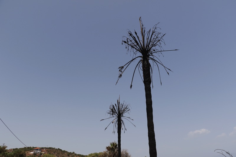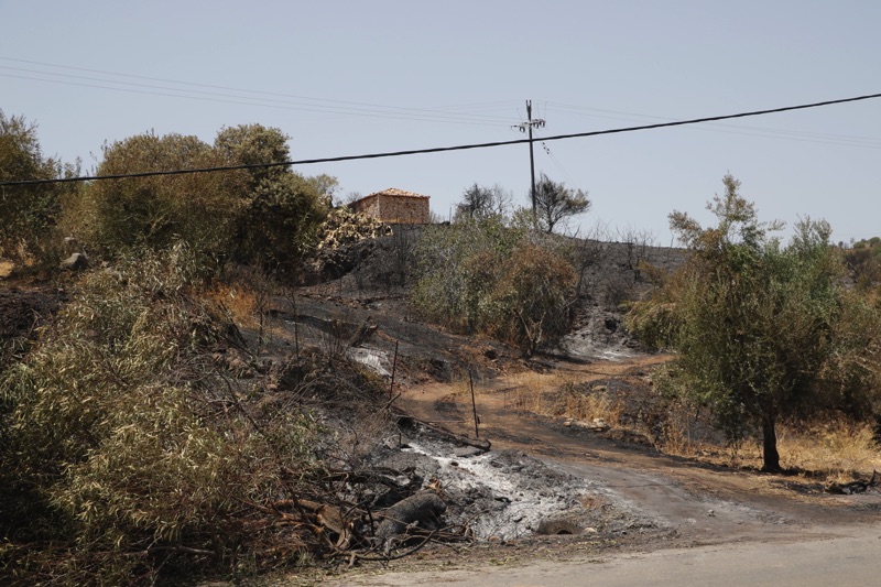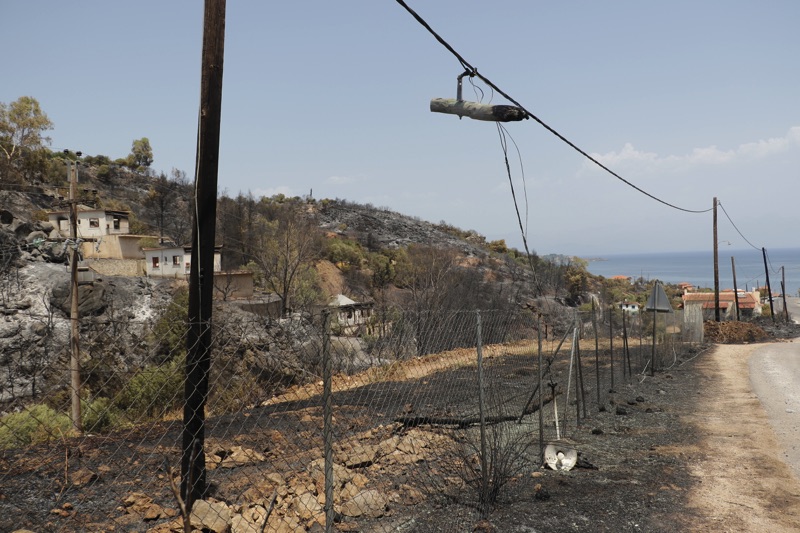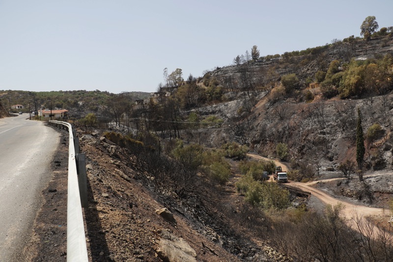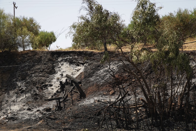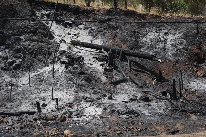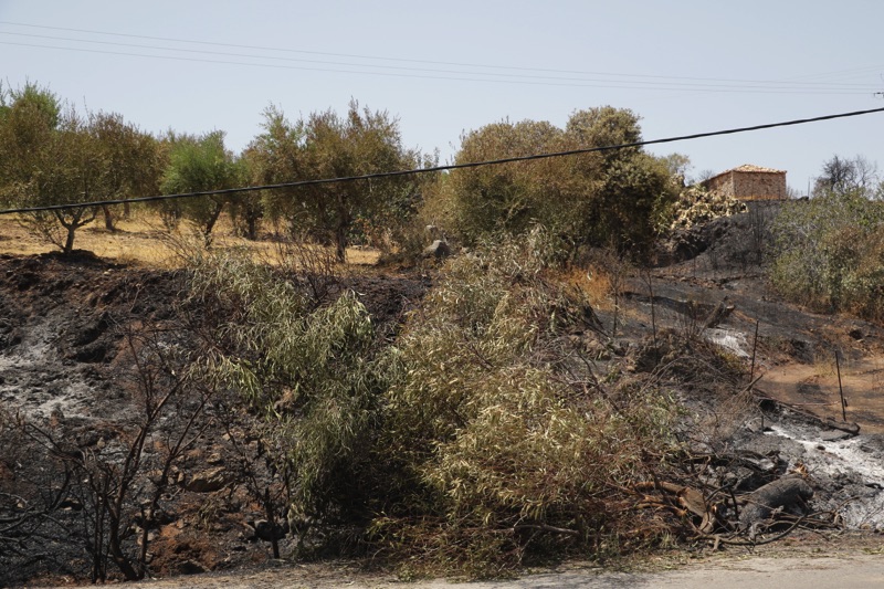 Στην περιοχή Κρυονέρι, κοντά στο “λιμανάκι” είδαμε το σημείο που η φωτιά πέρασε τον επαρχιακό δρόμο κι έφτασε στη θάλασσα.