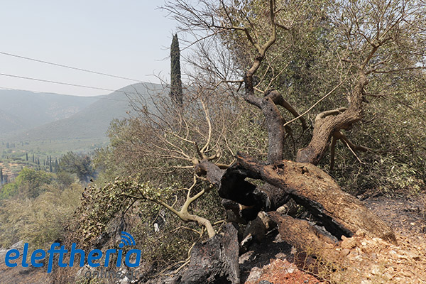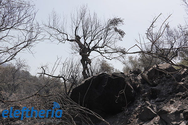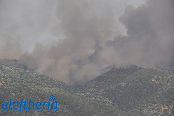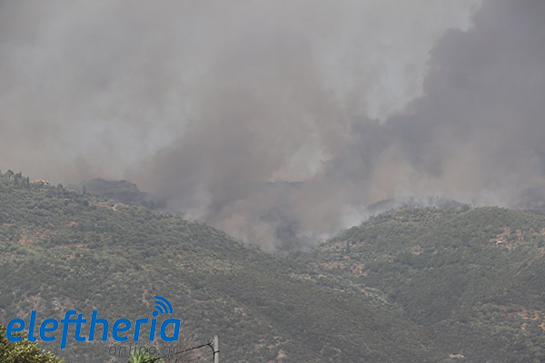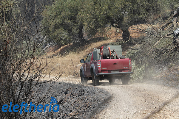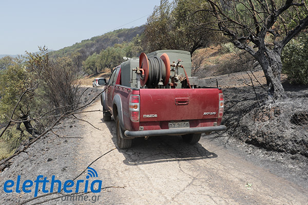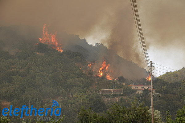 Την ίδια ώρα, η ίδια φωτιά που είχε κινηθεί ανατολικά και ξαφνικά έστριψε νότια, βρέθηκε σε κοντινή απόσταση από το σημείο που ήμαστε, απειλώντας να μας περικυκλώσει. Αμέσως δόθηκε εντολή για απομάκρυνση προς το Δεσύλλα, όπως έγινε και για κατοίκους από το Καρνάσι που είχαν φύγει από το χωριό αλλά παρέμεναν κοντά.