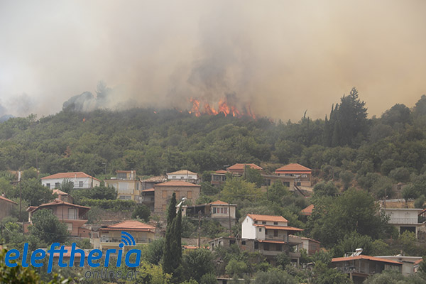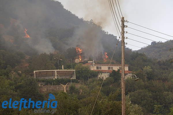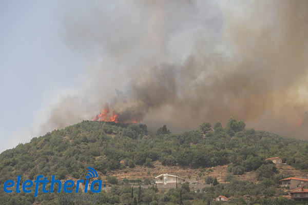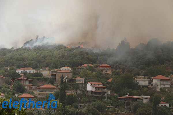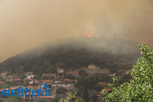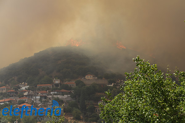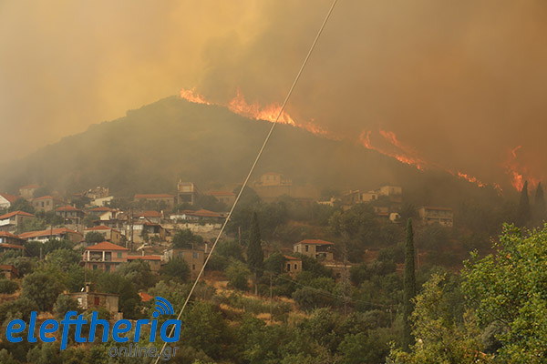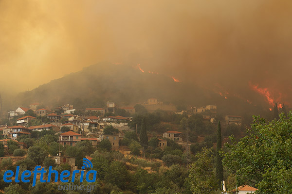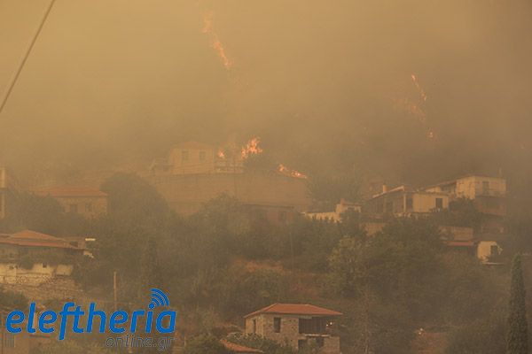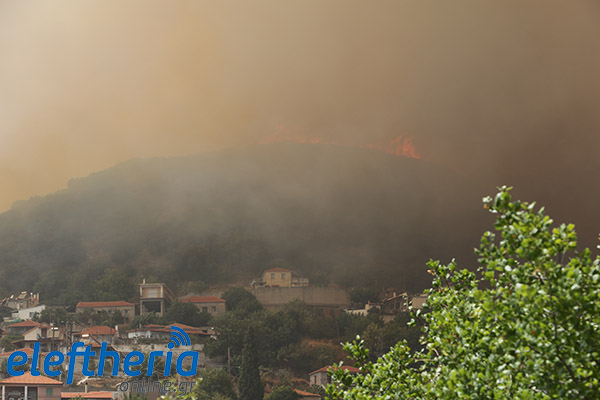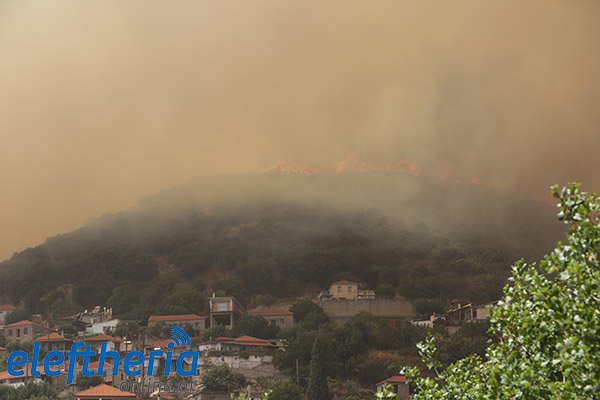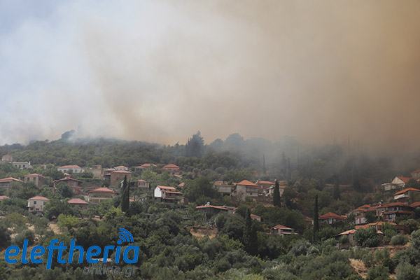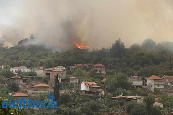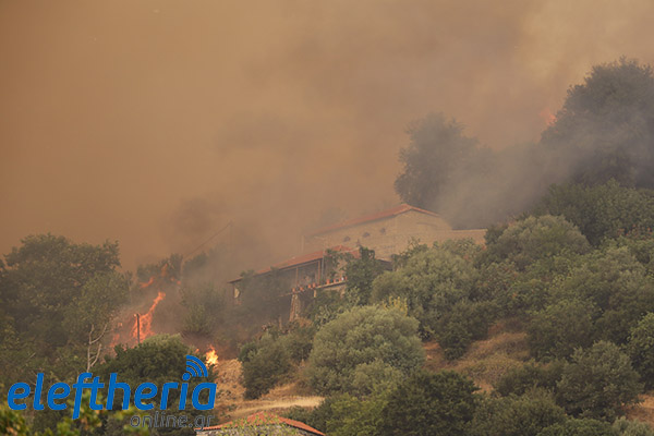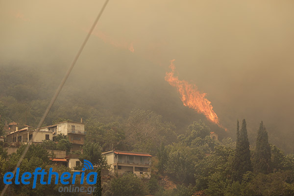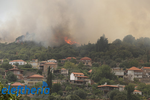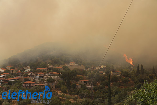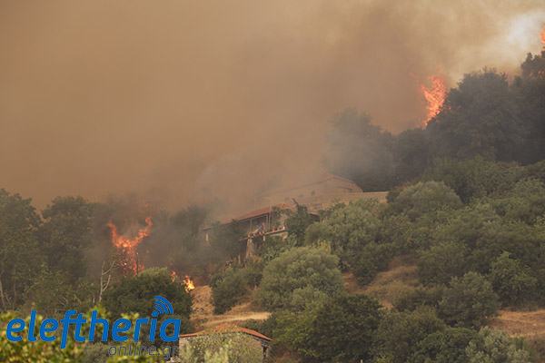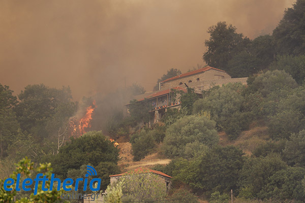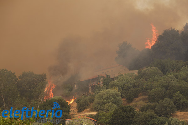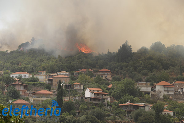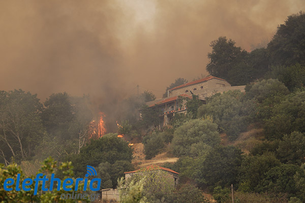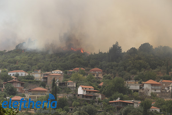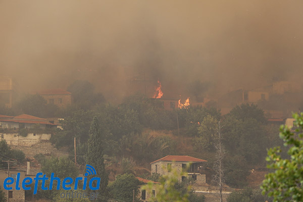 Την ίδια ώρα η πυρκαγιά μαινόταν ανεξέλεγκτη εξαιτίας των δυνατών ανέμων που έπνεαν στην περιοχή, και κινείτο με ορμή ανατολικά, πάνω από το Καρνάσι, και νότια μέσα στο χωριό, καίγοντας τα σπίτια. Κάποια στιγμή κι ενώ η φωτιά έκαιγε ήδη τα πρώτα σπίτια, είδαμε σε ένα από τα κοντινά σπίτια να υπάρχουν άνθρωποι, με άμεσο κίνδυνο να εγκλωβιστούν.