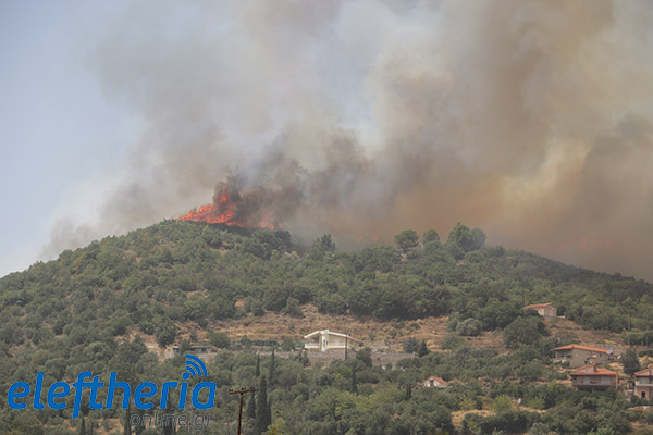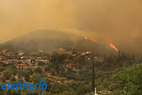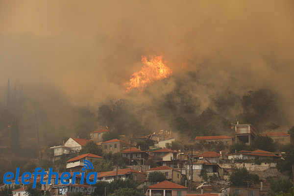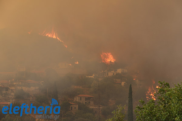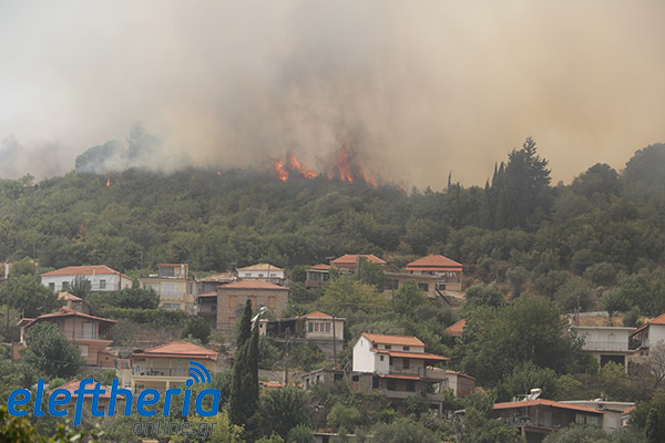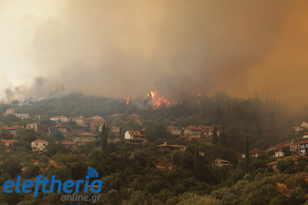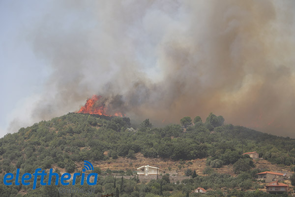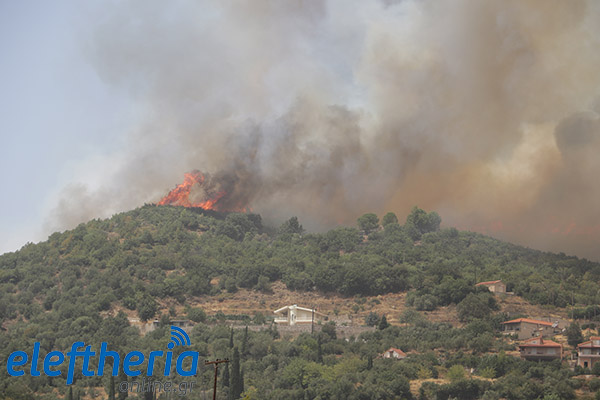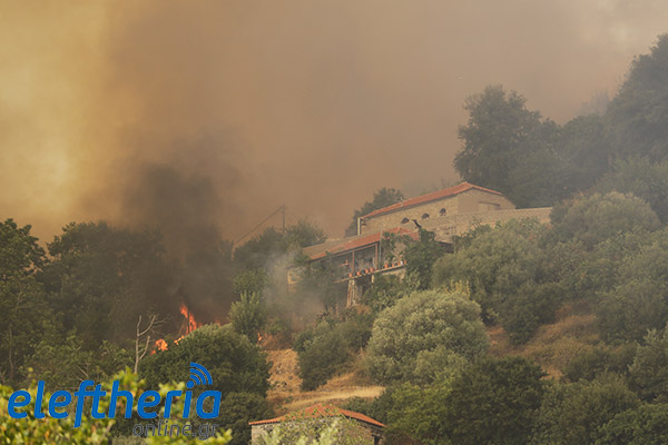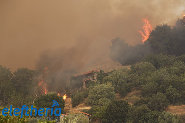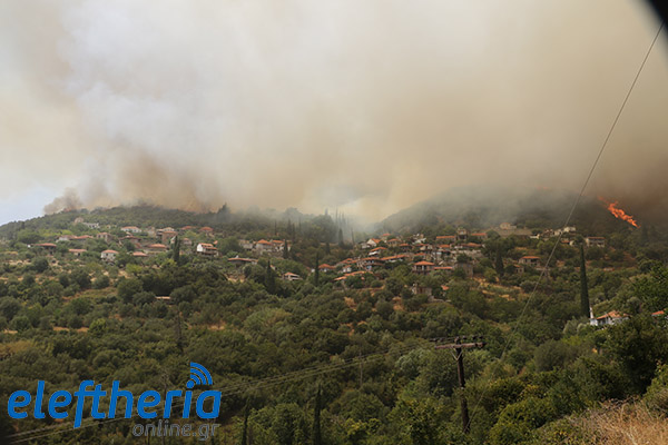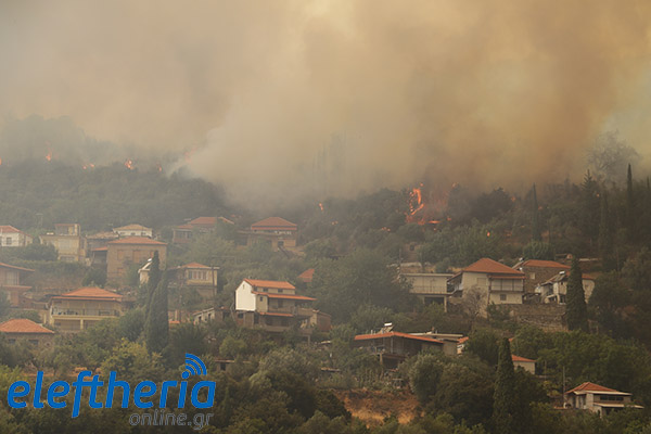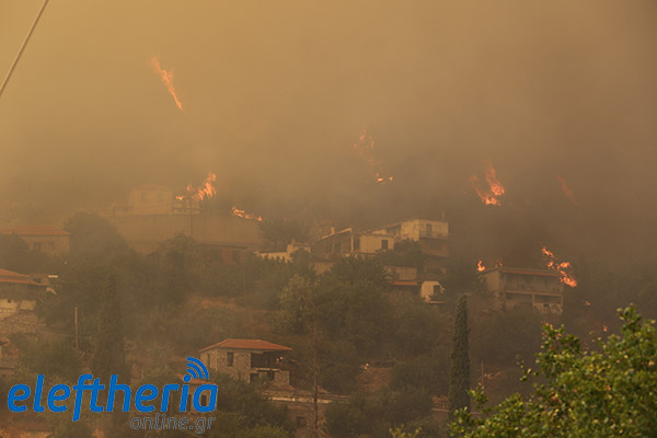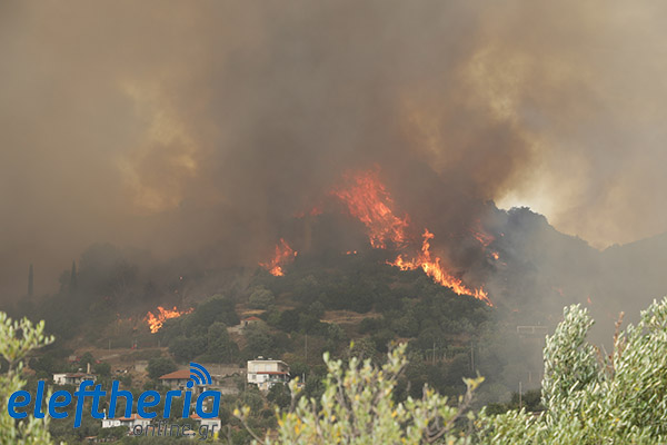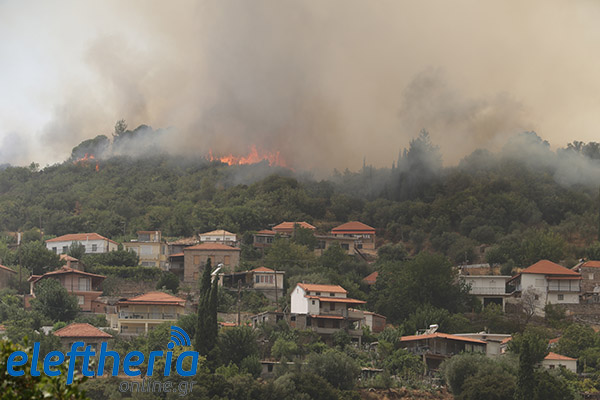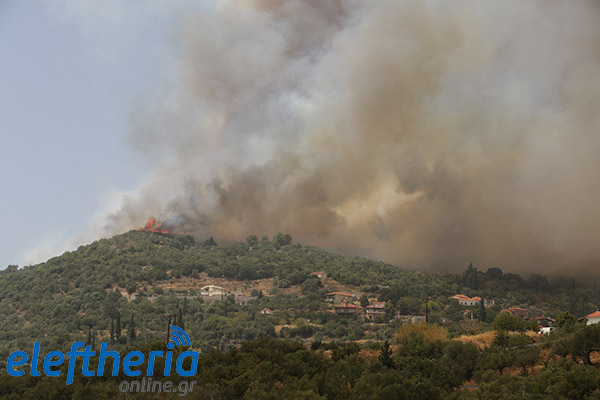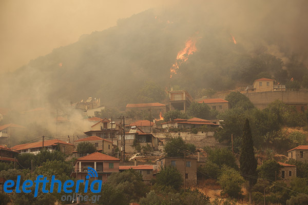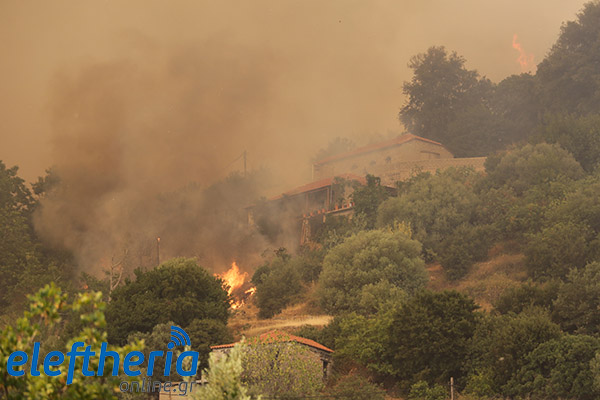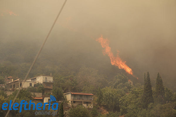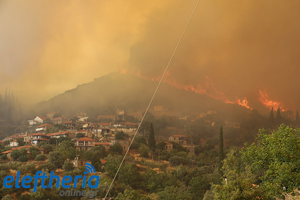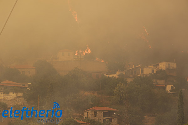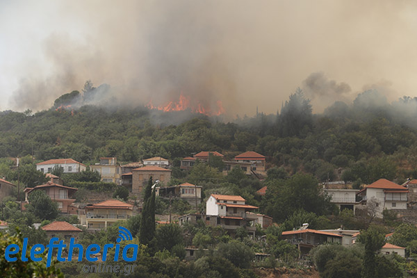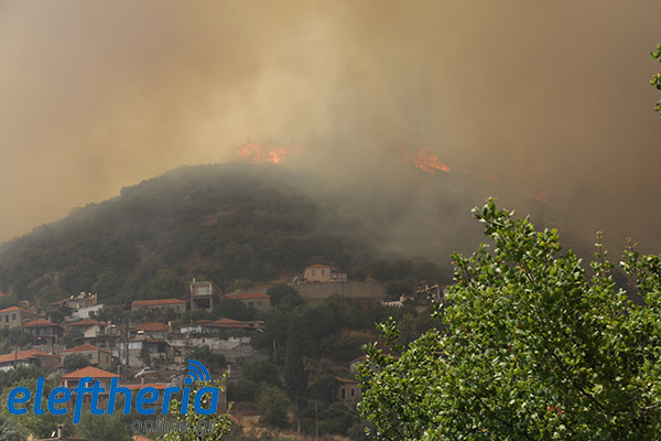 Την ίδια ώρα η πυρκαγιά μαινόταν ανεξέλεγκτη εξαιτίας των δυνατών ανέμων που έπνεαν στην περιοχή, και κινείτο με ορμή ανατολικά, πάνω από το Καρνάσι, και νότια μέσα στο χωριό, καίγοντας τα σπίτια. Κάποια στιγμή κι ενώ η φωτιά έκαιγε ήδη τα πρώτα σπίτια, είδαμε σε ένα από τα κοντινά σπίτια να υπάρχουν άνθρωποι, με άμεσο κίνδυνο να εγκλωβιστούν.