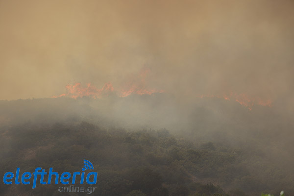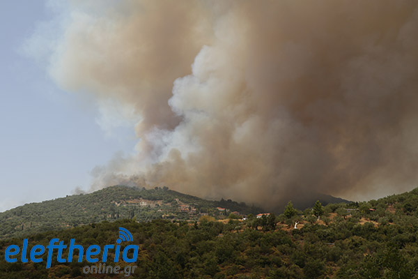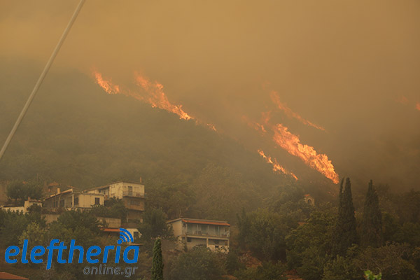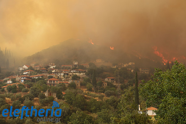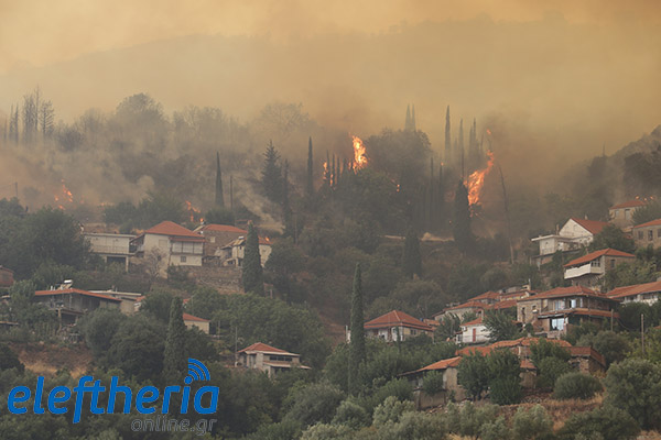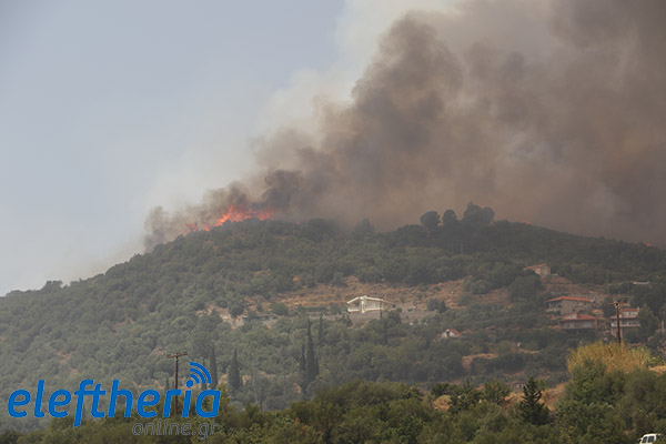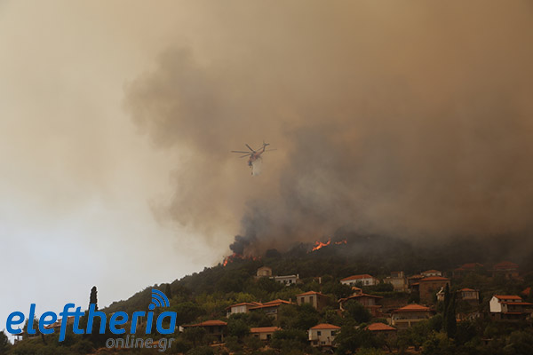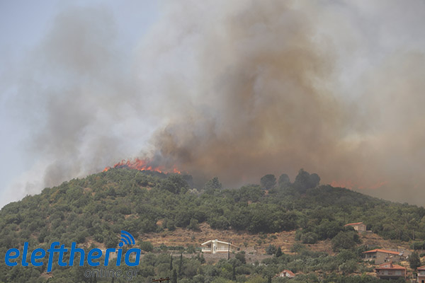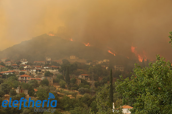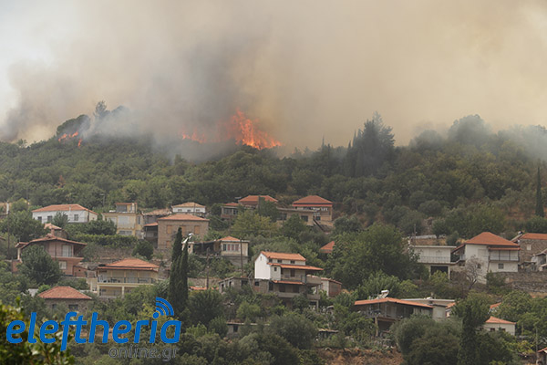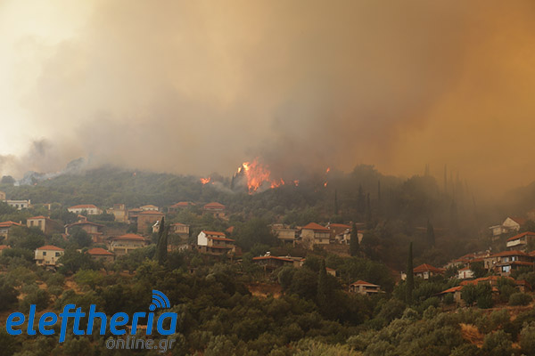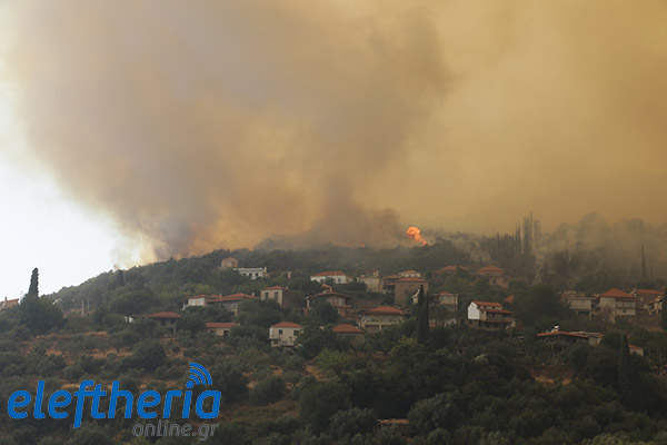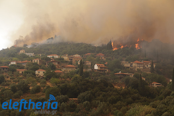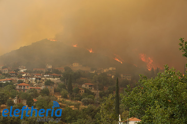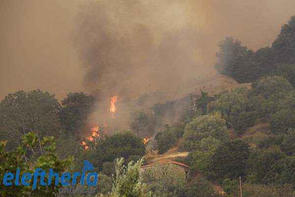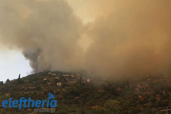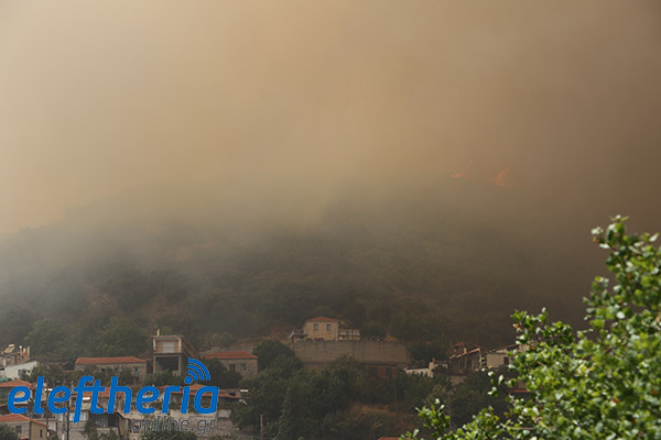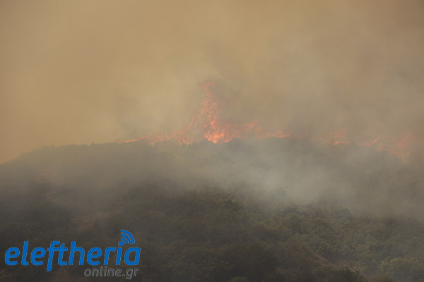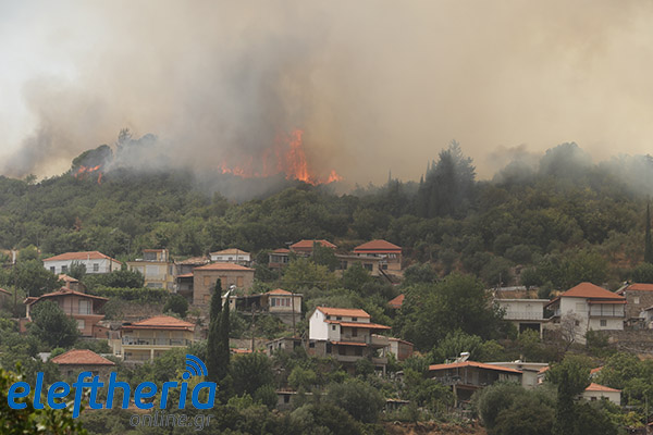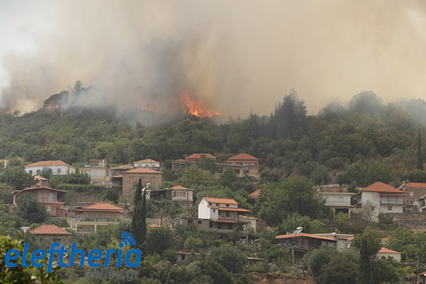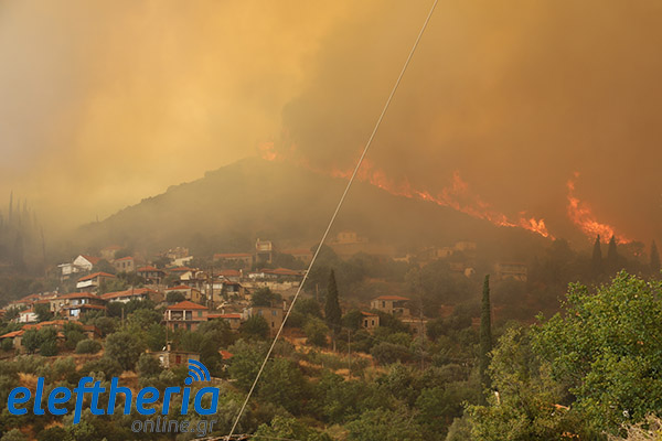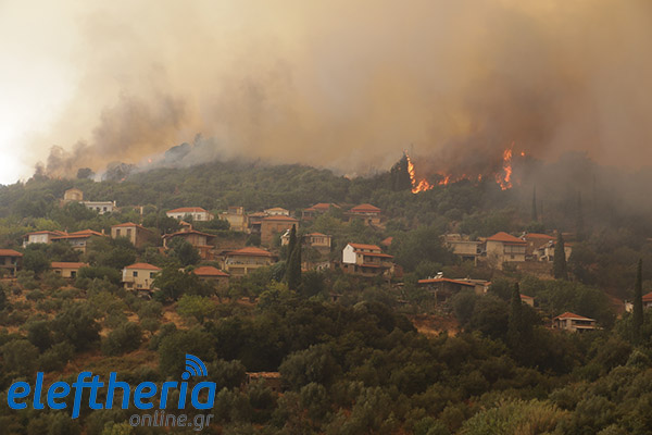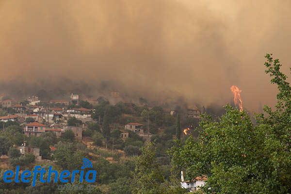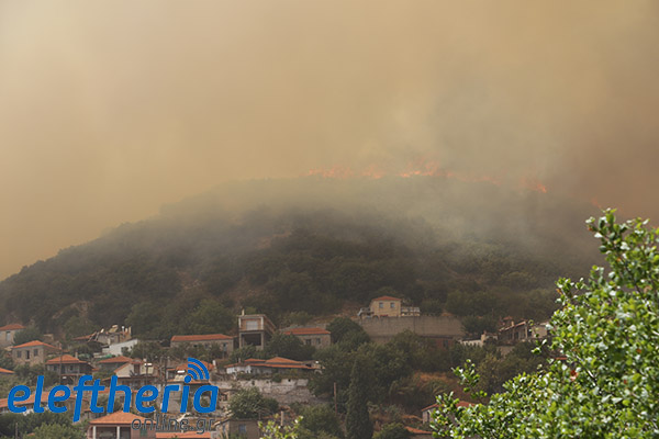 Την ίδια ώρα η πυρκαγιά μαινόταν ανεξέλεγκτη εξαιτίας των δυνατών ανέμων που έπνεαν στην περιοχή, και κινείτο με ορμή ανατολικά, πάνω από το Καρνάσι, και νότια μέσα στο χωριό, καίγοντας τα σπίτια. Κάποια στιγμή κι ενώ η φωτιά έκαιγε ήδη τα πρώτα σπίτια, είδαμε σε ένα από τα κοντινά σπίτια να υπάρχουν άνθρωποι, με άμεσο κίνδυνο να εγκλωβιστούν.