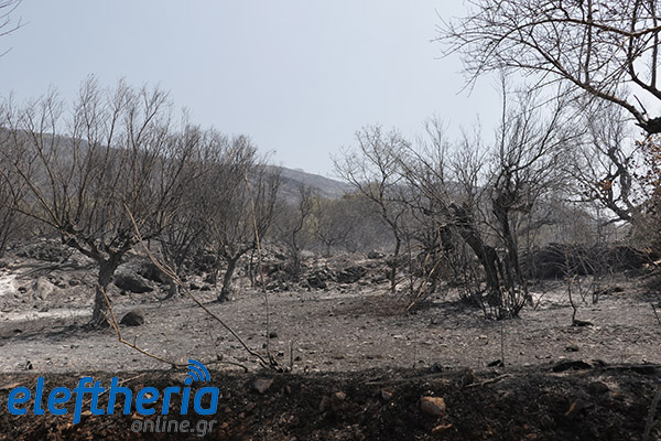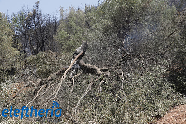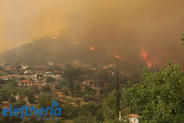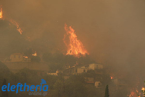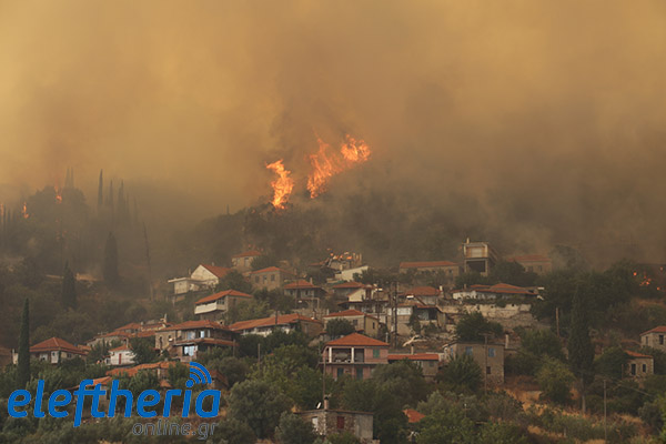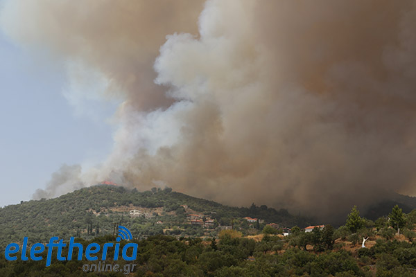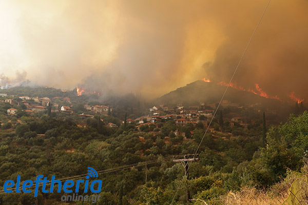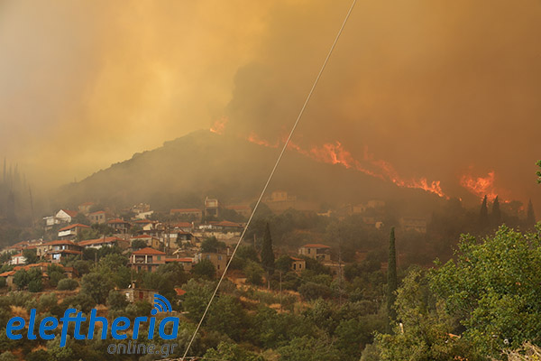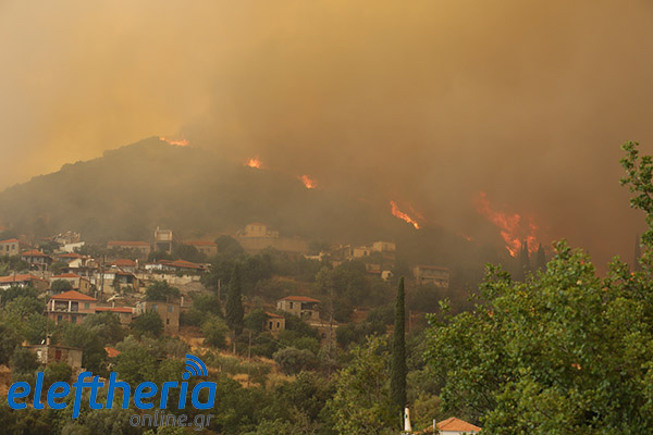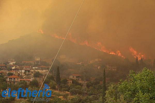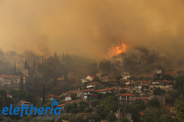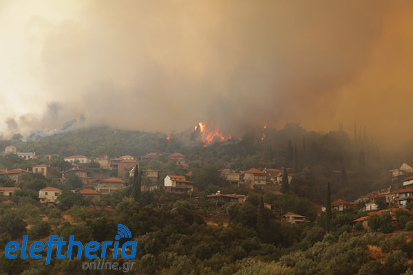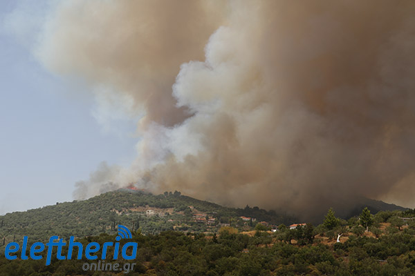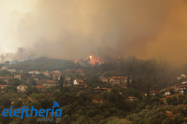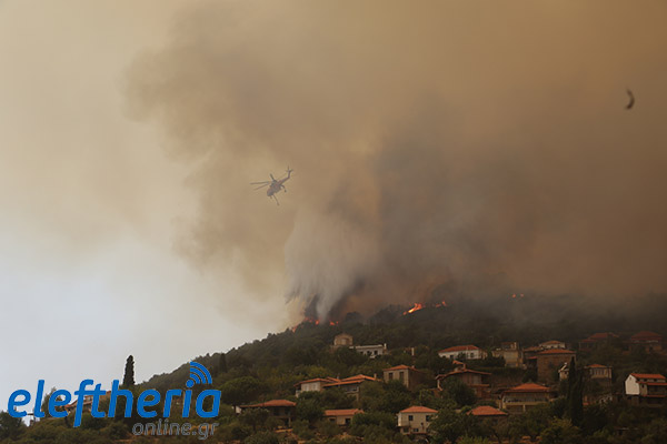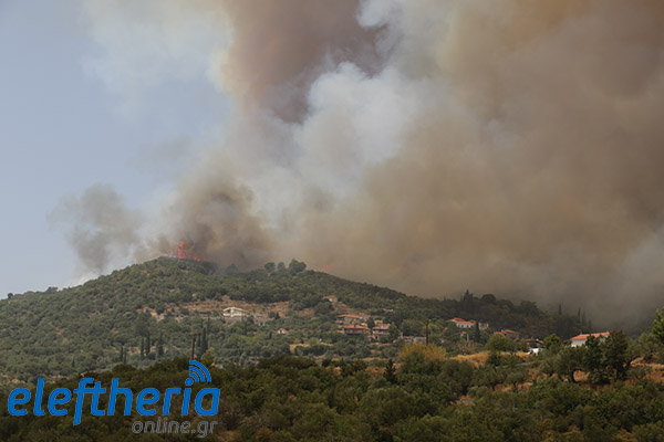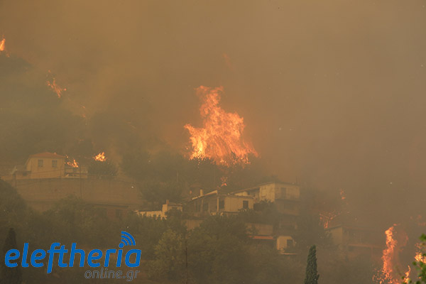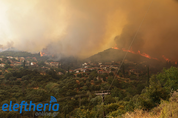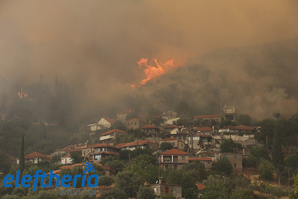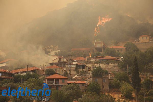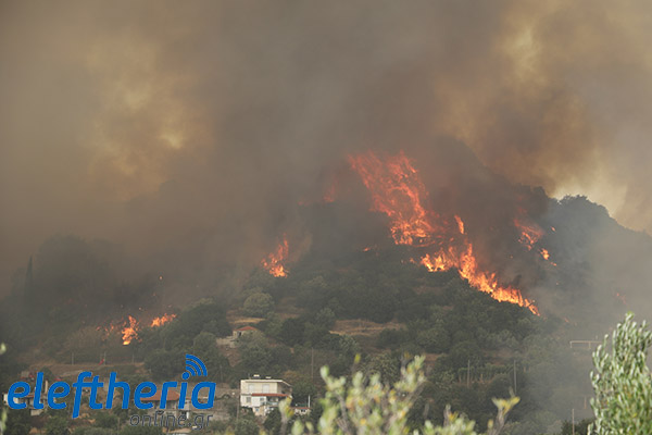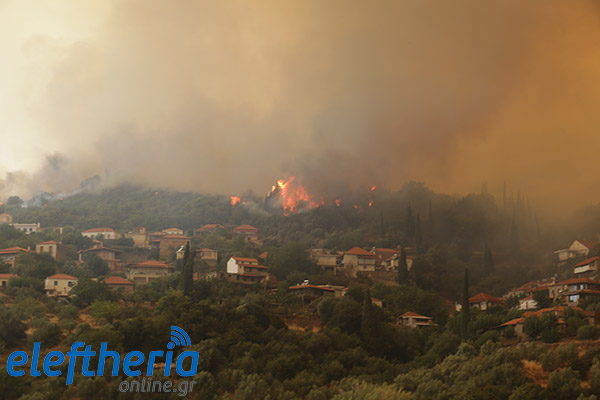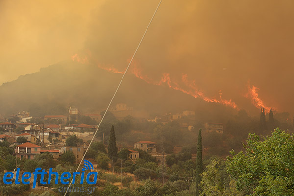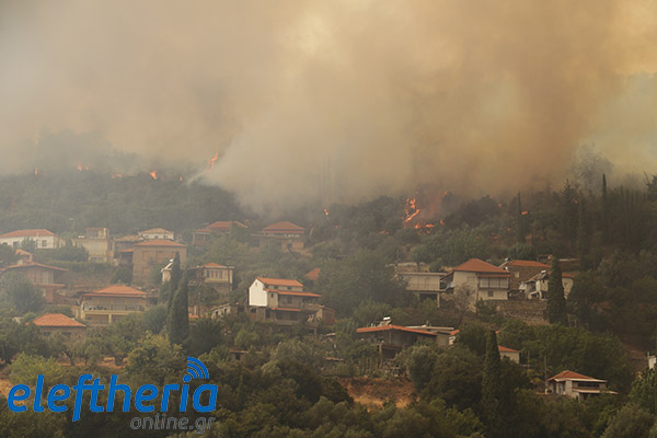 Την ίδια ώρα η πυρκαγιά μαινόταν ανεξέλεγκτη εξαιτίας των δυνατών ανέμων που έπνεαν στην περιοχή, και κινείτο με ορμή ανατολικά, πάνω από το Καρνάσι, και νότια μέσα στο χωριό, καίγοντας τα σπίτια. Κάποια στιγμή κι ενώ η φωτιά έκαιγε ήδη τα πρώτα σπίτια, είδαμε σε ένα από τα κοντινά σπίτια να υπάρχουν άνθρωποι, με άμεσο κίνδυνο να εγκλωβιστούν.
