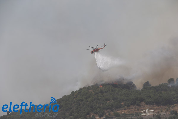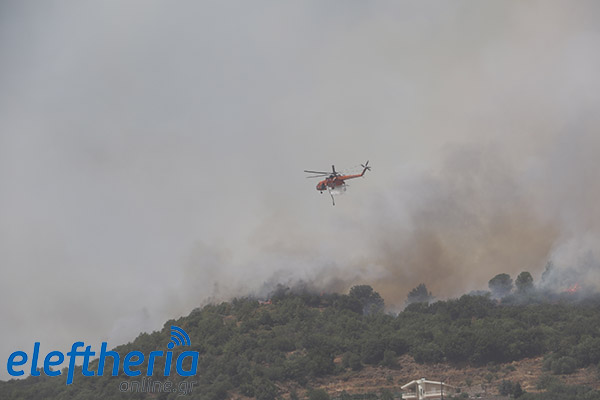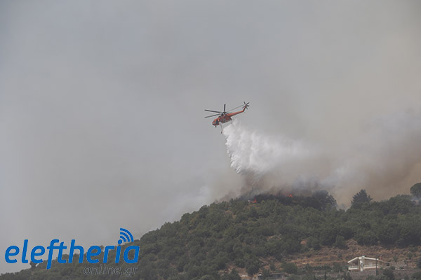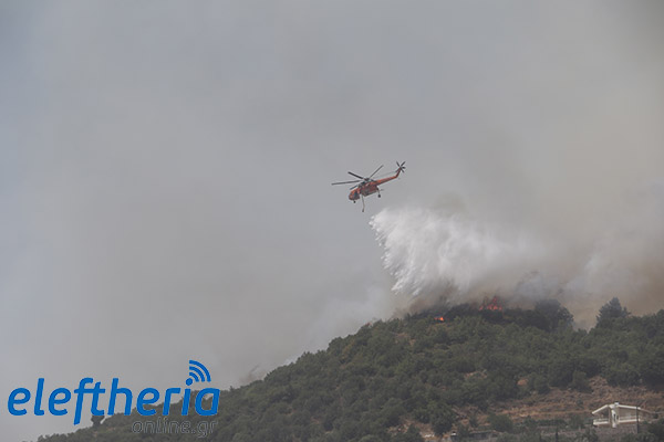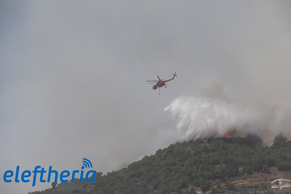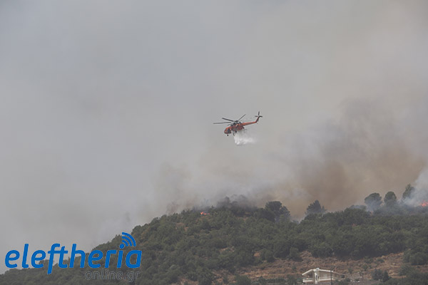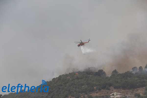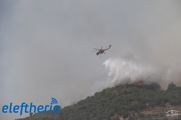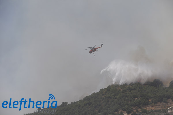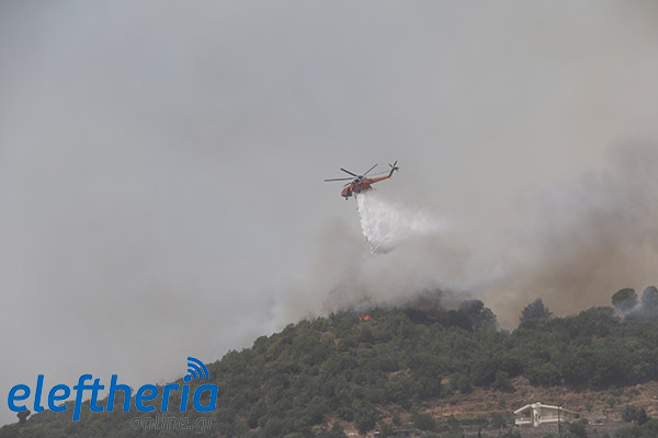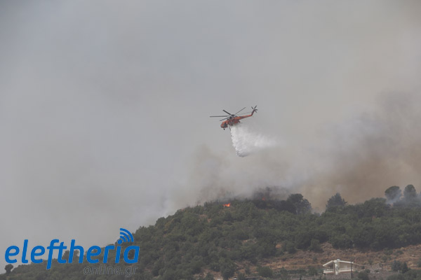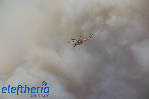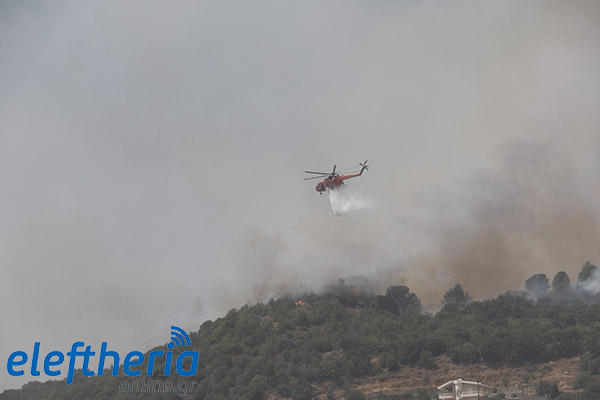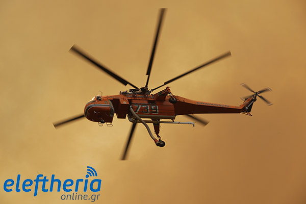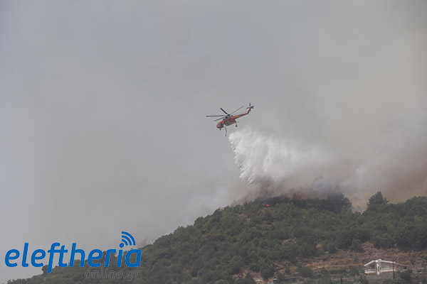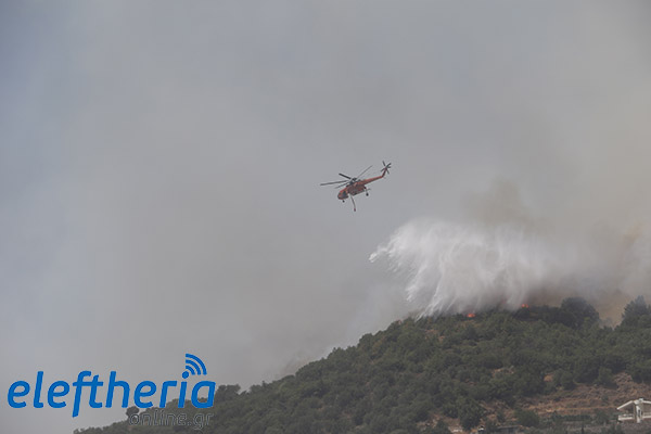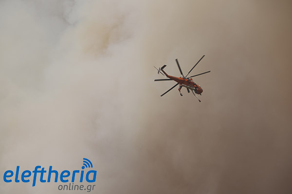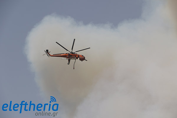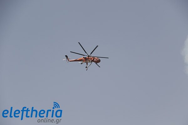 Νωρίτερα, την ώρα που το μεγάλο μέτωπο της φωτιάς κινείτο ακόμη απειλητικά προς το Καρνάσι, εμφανίστηκε ένα ελικόπτερο Erikson που έκανε ρίψεις για να περιορίσει τη φωτιά και να προστατεύσει το χωριό.