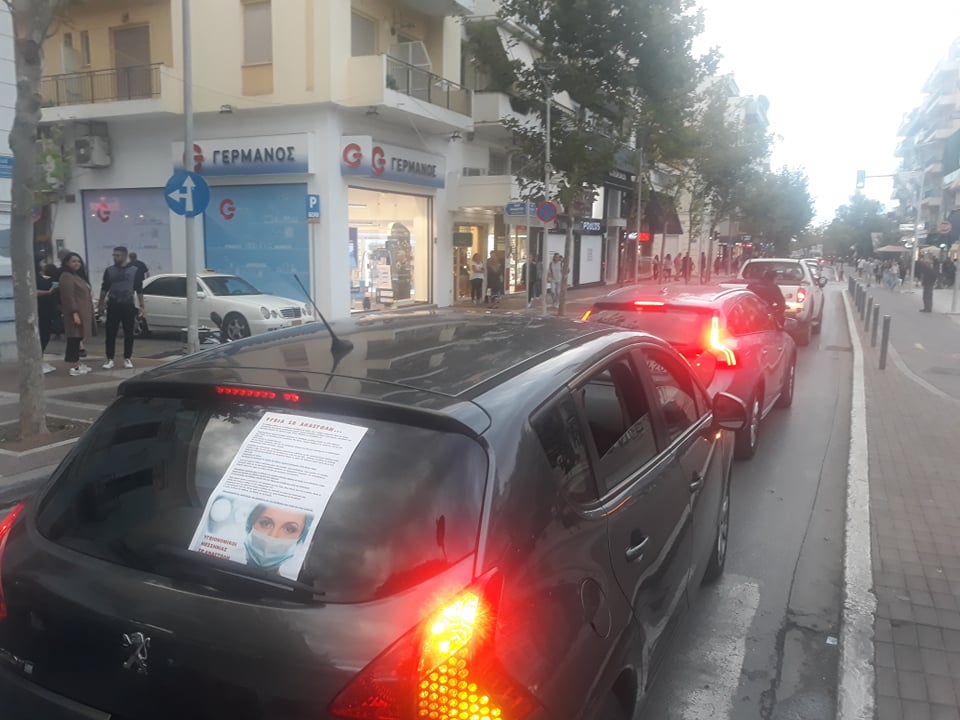 Η αυτοκινητοπομπή για περίπου μία ώρα έκανε τον γύρο της Καλαμάτας, ενώ πολλοί εκ των συμμετεχόντων με κορναρίσματα έδιναν τον ρυθμό.