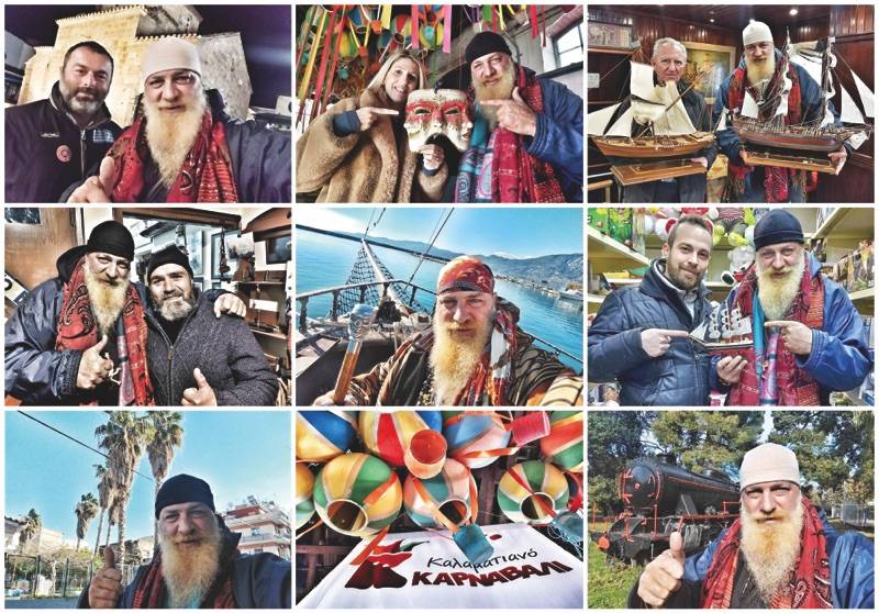 Στις πέντε συνολικά μέρες που διέμεινε στην Καλαμάτα και συγκεκριμένα στο «Albatros II» του φίλου του Δημήτρη Καπουλέα, ο “Πειρατής” έκανε το οδοιπορικό του στην πόλη ξεχωρίζοντας τα σημεία και τους ανθρώπους που θα συμπεριλάβει στο ντοκιμαντέρ. Μεταξύ άλλων, γνωστοποίησε στην «Ε» πως εστίασε στον εξαιρετικό μικροναυπηγό Γιώργο Καπρούλια και τα χειροποίητα «διαμάντια» του, στο Δημοτικό Πάρκο Σιδηροδρόμων, στους αμέτρητους φοίνικες, σε ένα από τα ιστορικότερα καταστήματα της πόλης, την «Παιχνιδούπολη», στο καρναβαλικό εργαστήρι στις αποθήκες του σιδηροδρομικού σταθμού και στον συλλέκτη Σπύρο Κατσίρα, που διαθέτει στη συλλογή του τα σπανιότερα όπλα του 1821.
