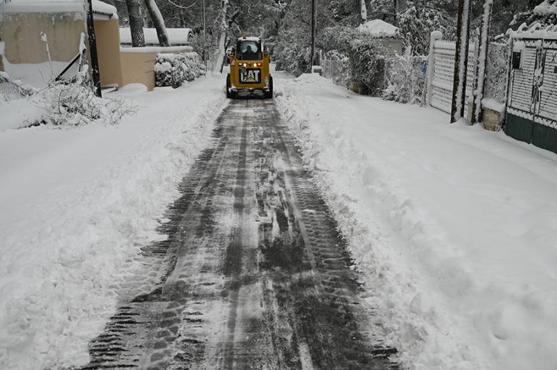Τέλος και στις δύο περιφερειακές ενότητες επιχειρούν συνεχώς εκχιονιστικά μηχανήματα, ώστε να παραμένουν ανοικτοί οι δρόμοι.