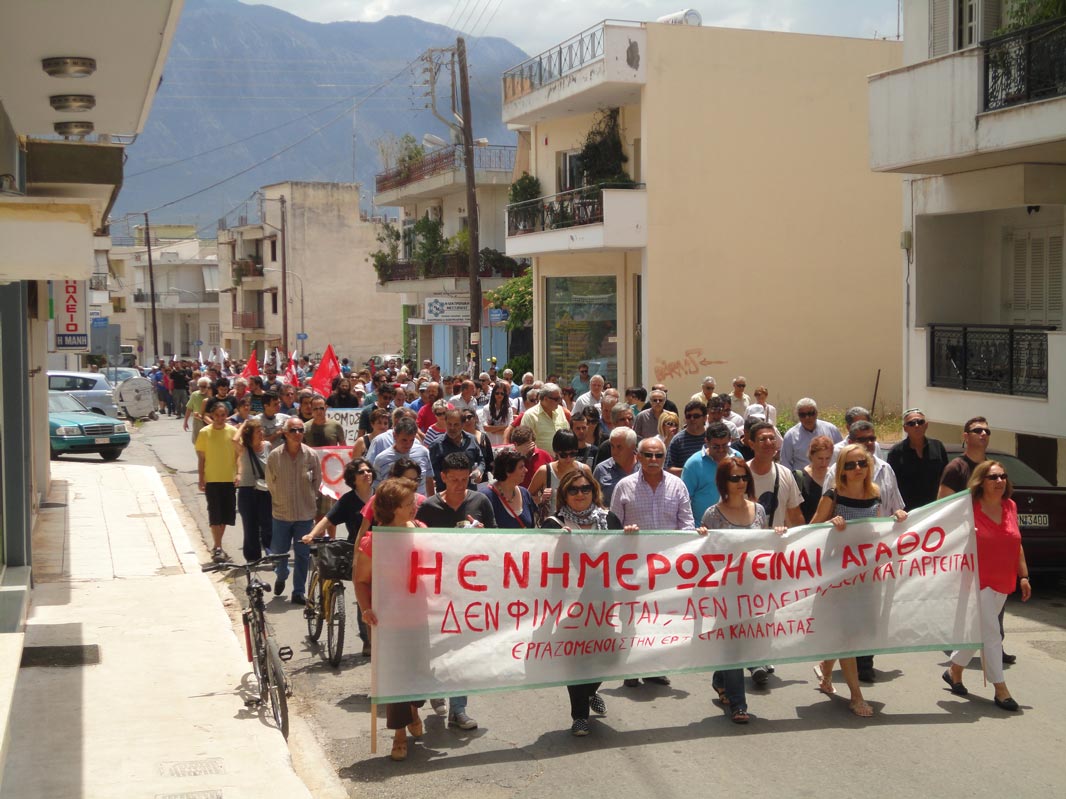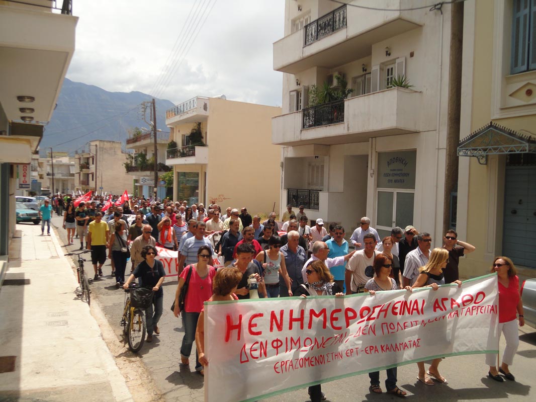 Οι εργαζόμενοι στις συγκεντρώσεις του Εργατικού Κέντρου και του ΠΑΜΕ απαίτησαν μεταξύ άλλων |να ανατραπουν οι πρακτικές της Χούντας που οδήγησαν στο κλεισιμο της δημόσιας ραδιοτηλεόρασης, στην κατάλυση της δημοκρατίας και των δημοκρατικών θεσμών". Μετά τις συγκεντρώσεις οι εργαζόμενοι ενώθηκαν και συγκεντρώθηκαν στο χώρο της ΕΡΑ στο Ανατολικό Κέντρο πραγματοποιώντας από εκεί κοινή πορεία μέχρι την κεντρική πλατεία της μεσσηνιακής πρωτεύουσας.