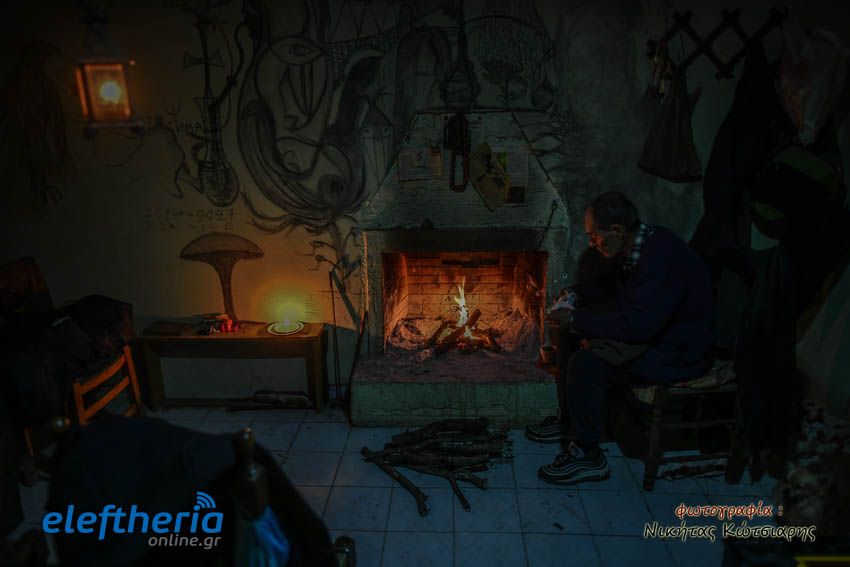 Με 350 ευρώ τι να πρωτοπληρώσει, το ρεύμα είναι απαγορευτικό. Για να πλυθεί έχει έναν ηλιακό θερμοσίφωνα που βγάζει έναν κουβά ζεστό νερό και με αυτόν πλένεται. “Εχω καθαρή ψυχή”, αυτό έχει μεγαλύτερη σημασία γι’ αυτόν. Ζεσταίνεται και μαγειρεύει σε ένα μικρό τζάκι με ξύλα και τα ρούχα του τα πλένει σε πλυντήρια φίλων. Δεν τρώει στο συσσίτιο του δήμου, γιατί έχει ζήσει μοναχικά και του αρέσει να μαγειρεύει, ενώ τον βοηθούν “και τα φιλαράκια”, καθώς έχει πρόβλημα με το στομάχι του και δεν μπορεί να φάει όλα τα φαγητά.