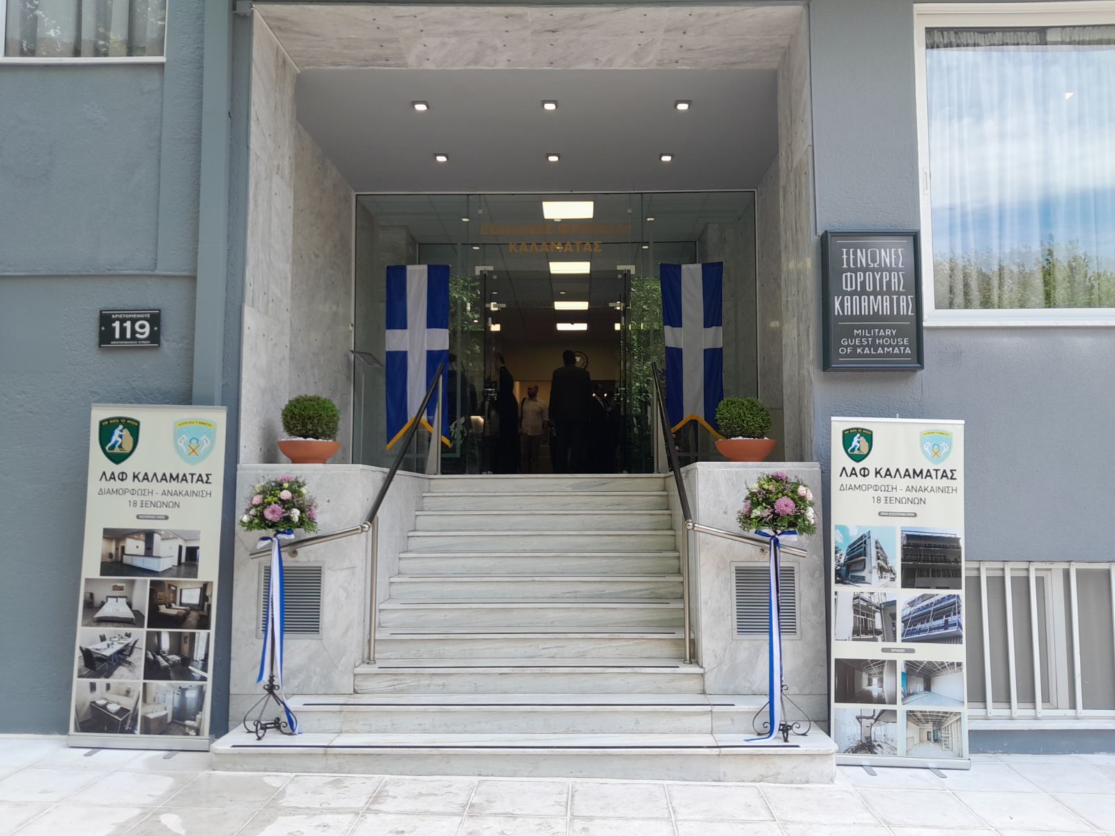 Την κορδέλα έκοψαν ο Αρχηγός ΓΕΣ - αντιστράτηγος Χαράλαμπος Λαλούσης, με καταγωγή από τα Φιλιατρά και ο Αχιλλέας Κωνσταντακόπουλος- πρόεδρος του ιδρύματος “Καπετάν Βασίλη και Κάρμεν Κωνσταντακοπούλου”, που ήταν ο βασικός δωρητής της διαμόρφωσης και ανακαίνισης των ξενώνων.