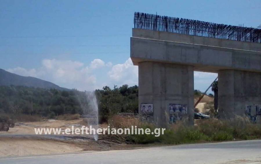 Πίδακας νερού στην υπό κατασκευή γέφυρα του Αντικαλάμου