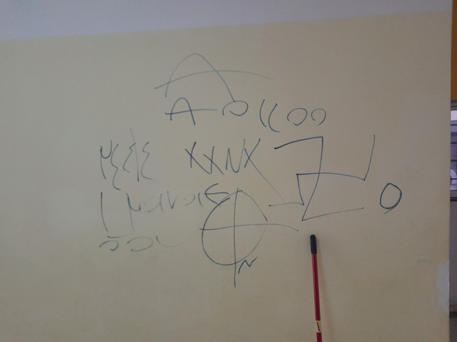 Οι καταληψίες είχαν σπάσει την πόρτα, είχαν προκαλέσει ζημιές και είχαν πάρει ό,τι βρήκαν. Εξω από το κυλικείο στους τοίχους είχαν ζωγραφίσει με μαρκαδόρο σύμβολα της ΕΟΝ και τον αγκυλωτό σταυρό των Ναζί και άλλες ασυνάρτητες “καλλιγραφίες”. Μεταξύ των ζημιών που προκάλεσαν, ήταν και το σπάσιμο ενός ξύλινου πάγκου.