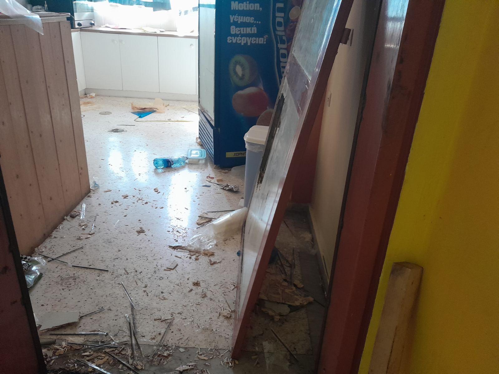 Χθες το πρωί το σχολείο άνοιξε και καθηγητές και μαθητές βρέθηκαν μπροστά σε μια άσχημη κατάσταση με πεταμένα σκουπίδια στο προαύλιο και βανδαλισμένο το κυλικείο.
