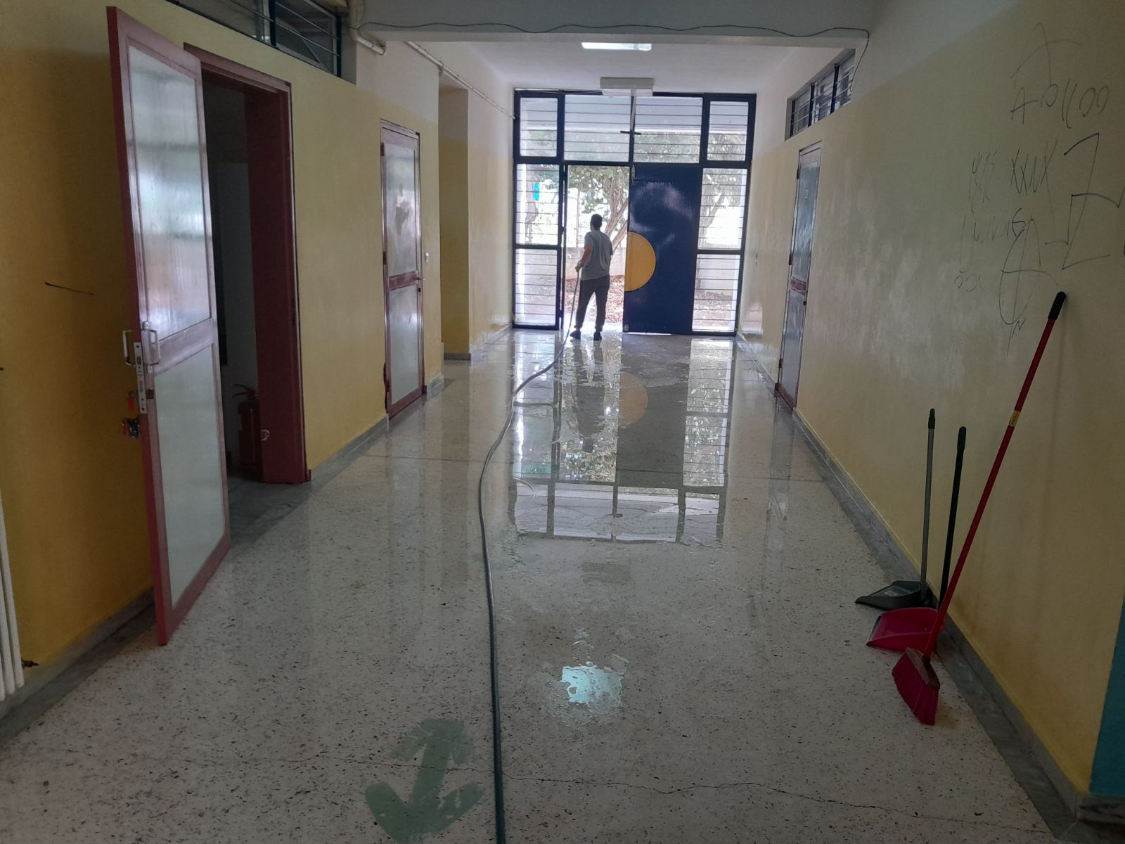 Στο σχολείο βρέθηκε ο διευθυντής Δευτεροβάθμιας Εκπαίδευσης Μεσσηνίας Αγάπιος Οικονομίδης που είδε τις ζημιές και συζήτησε με τους καθηγητές και τον διευθυντή Γιώργο Μαλαπάνη.