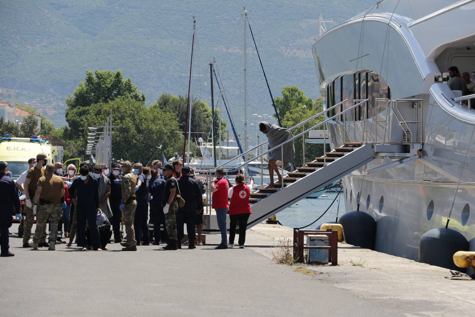 Οι πρόσφυγες και μετανάστες, που αποβιβάστηκαν από το σκάφος ήταν εμφανώς ταλαιπωρημένοι, αρκετοί εξ αυτών ξυπόλυτοι και άλλοι σκεπασμένοι πρόχειρα με κάποιες κουβέρτες. Κάποιοι εξ αυτών επιβιβάστηκαν άμεσα σε ασθενοφόρα και μεταφέρονται στο Νοσοκομείο Καλαμάτας για περίθαλψη. Ηδη εκεί έχουν μεταφερθεί νωρίτερα με Super Puma της Πολεμικής Αεροπορίας 4 άτομα με συμπτώματα αφυδάτωσης και υποθερμίας.