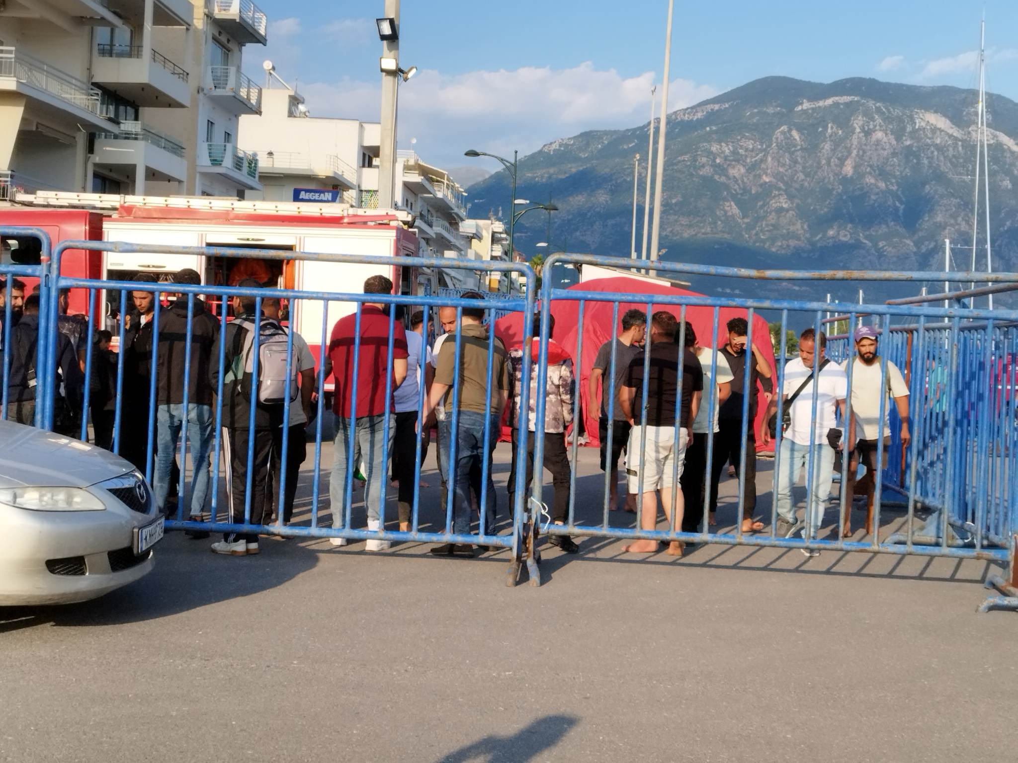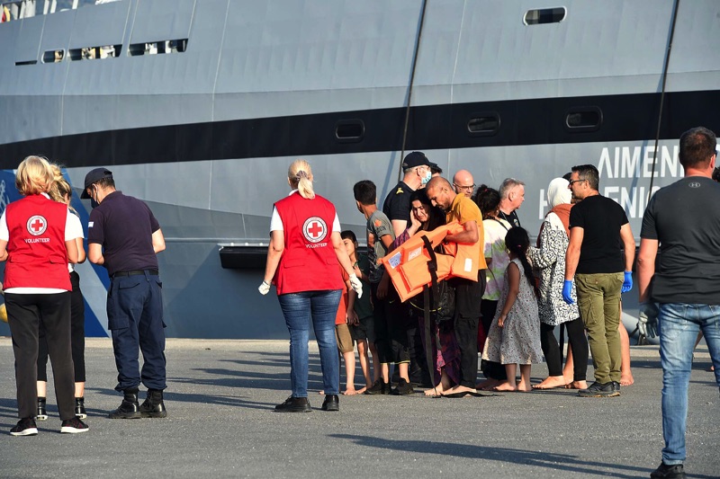 Κατά την άφιξη στο λιμάνι τους περίμεναν νοσηλεύτριες και εθελόντριες του Ερυθρού Σταυρού, καθώς και μέλη της ΟΑΚ 4Χ4 Μεσσηνίας, ενώ στη συνέχεια με μέριμνα της Περιφέρειας Πελοποννήσου μεταφέρθηκαν κλινοσκεπάσματα και από τον Δήμο Καλαμάτας ο λοιπός εξοπλισμός για τη φιλοξενία τους στον χώρο των αποθηκών.