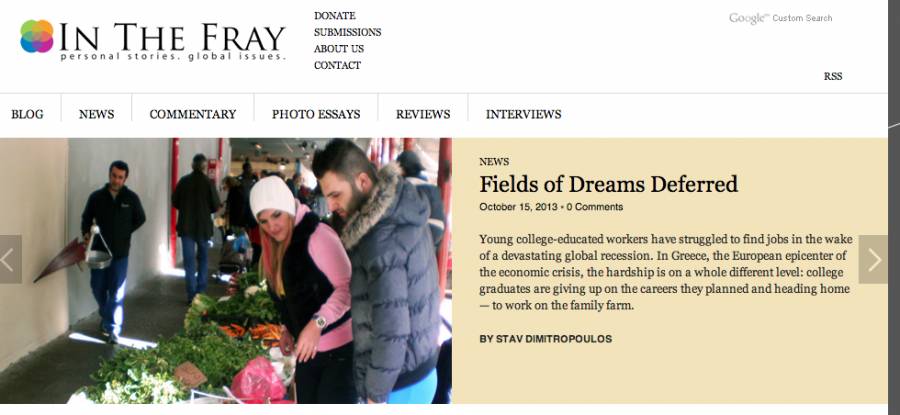 Με τίτλο "Fields of Dreams Deferred" ("Ονειρα που αναβλήθηκαν") δημοσιεύονται στο διεθνές διαδικτυακό περιοδικό "In the fray" ιστορίες Μεσσήνιων πτυχιούχων που βρίσκουν θέση εργασίας στην... οικογενειακή φάρμα.