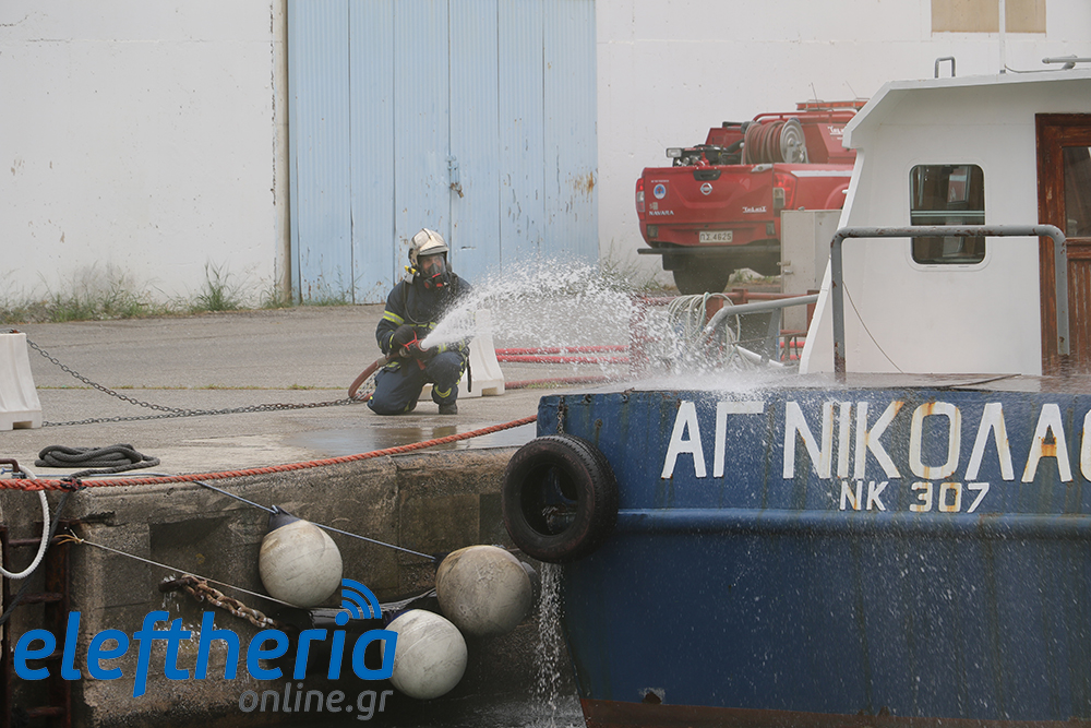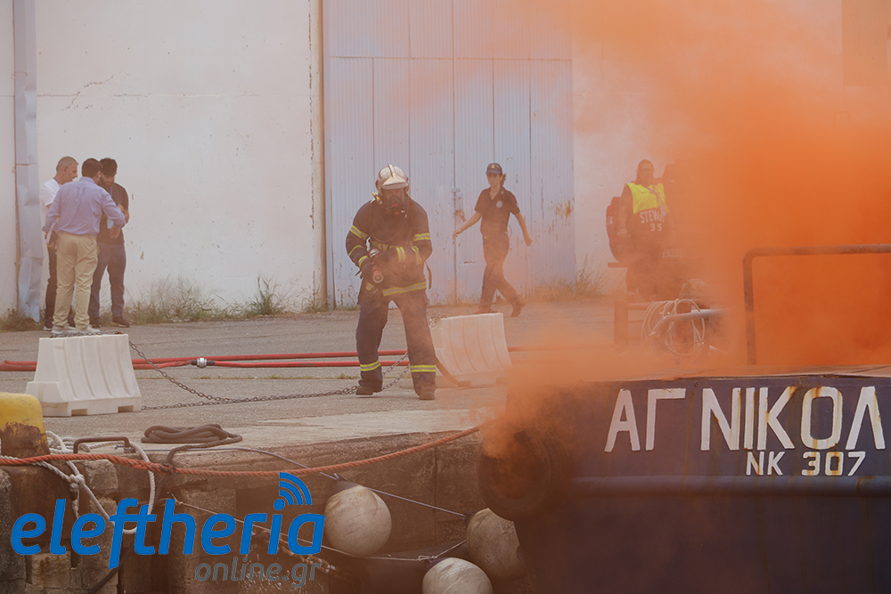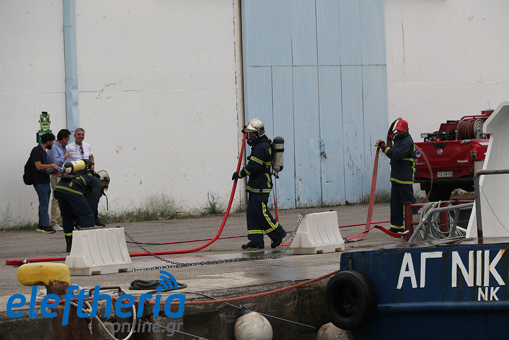 Η Πυροσβεστική έδρασε κυρίως στον περιορισμό και στην κατάσβεση της φωτιάς σε σκάφος (ήταν η λάντζα “Αγιος Νικόλαος”), ενώ γύρω και κάτω από το σκάφος έπεσαν δύτες εθελοντικών οργανώσεων για τον απαιτούμενο έλεγχο. Μέρος στην άσκηση πήραν στελέχη κι εθελοντές του Ελληνικού Ερυθρού Σταυρού και ο σκύλος της Αστυνομίας.