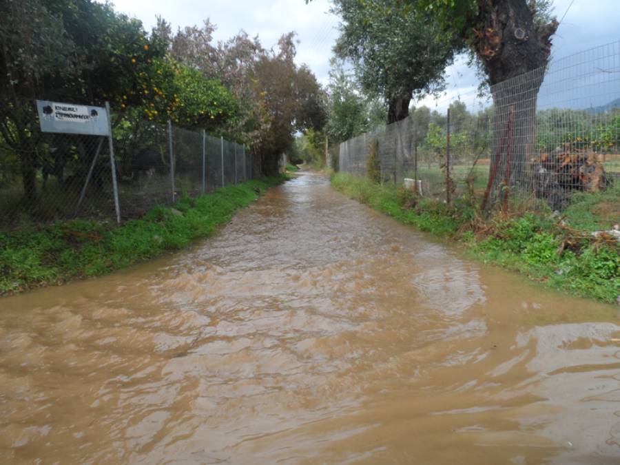 Το νερό από τους γύρω αγροτικούς δρόμους καταλήγει στην παράκαμψη, μεταξύ των σιδηροδρομικών γραμμών και της κοίτης του ποταμού, όπου δεν υπάρχει τρόπος απορροής του νερού που συγκεντρώνεται. Ετσι, σε πολλά σημεία τα αυτοκίνητα... κολυμπούν, με κίνδυνο οι οδηγοί να εγκλωβιστούν στο νερό, αφού δεν υπάρχει άλλη διέξοδος και η κίνηση των οχημάτων είναι συνεχής.