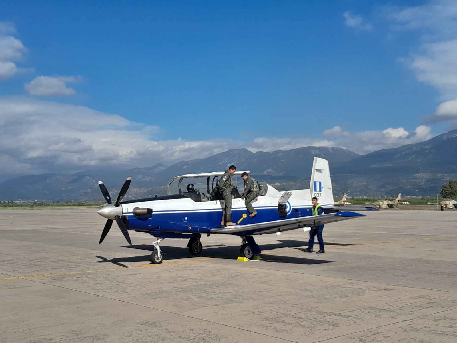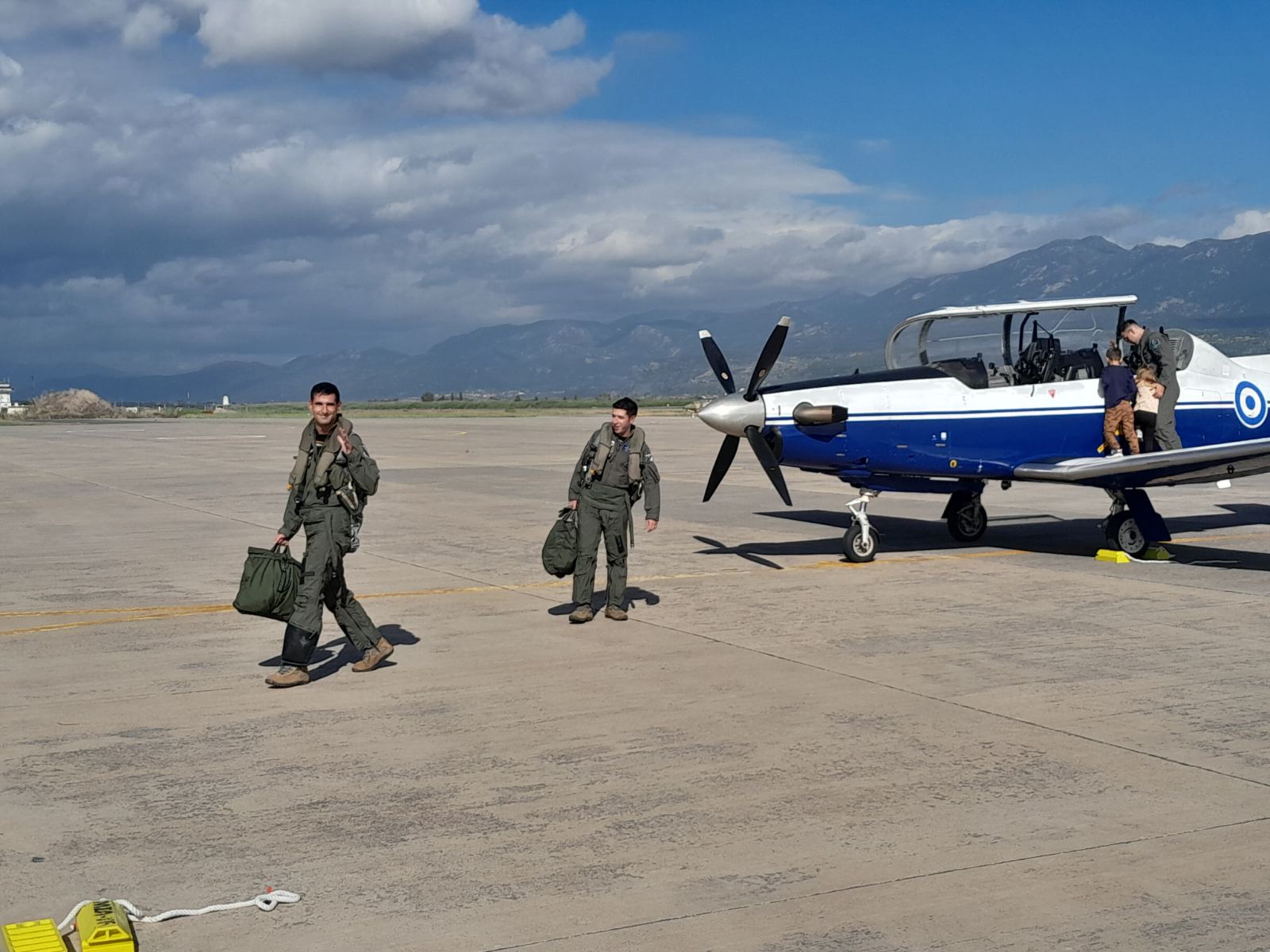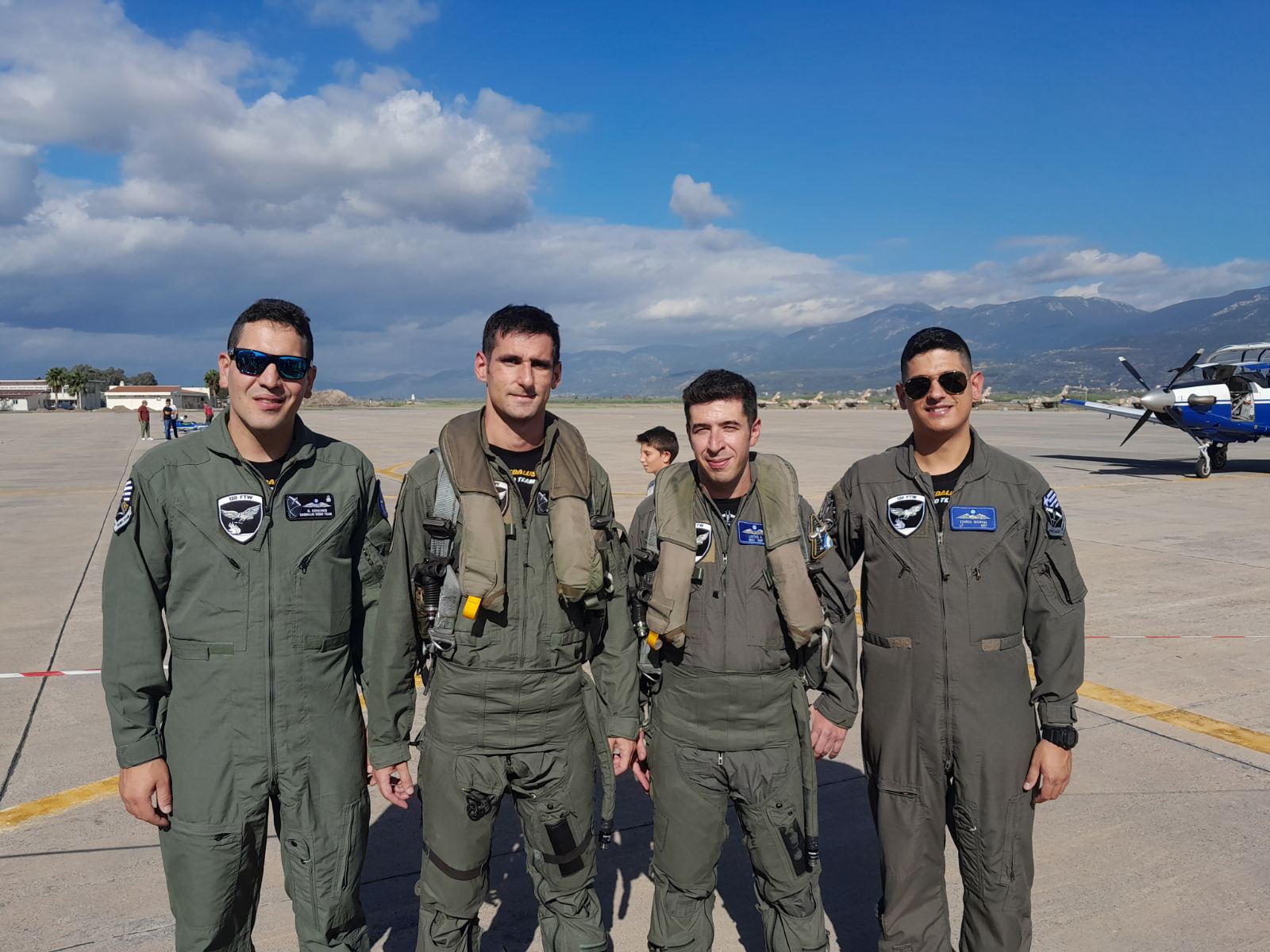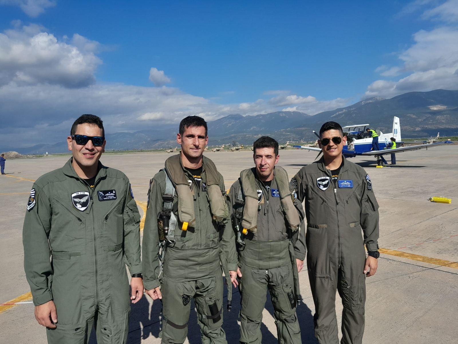 Την αεροπορική επίδειξη υποστήριξαν από εδάφους τα άλλα μέλη της ομάδας αεροπορικών επιδείξεων, σμηναγοί (Ι) Γεώργιος Κόκκινος, Ηλίας Δαγαλάκης και ο υποσμηναγός Ιωάννης Τσανής.