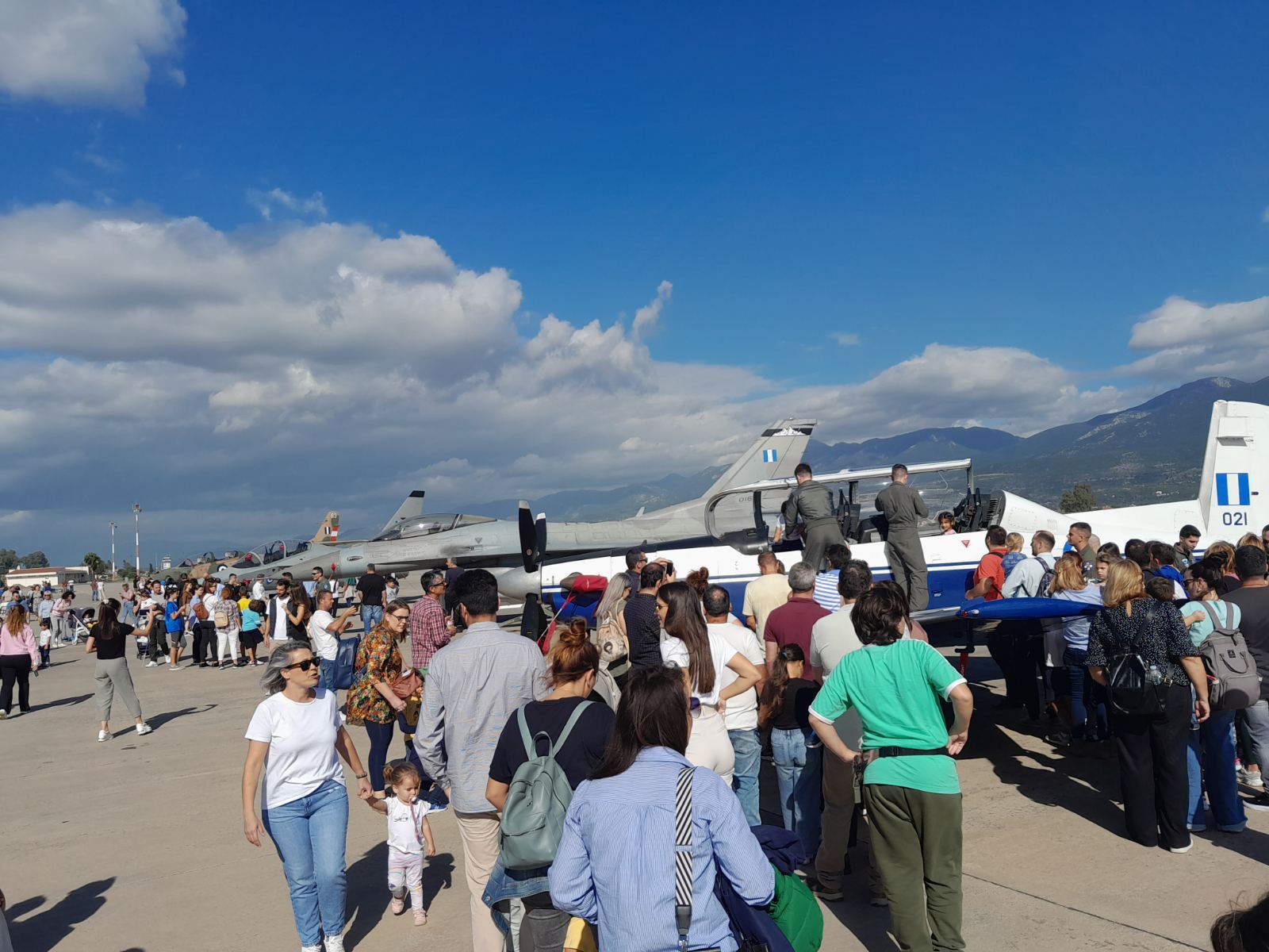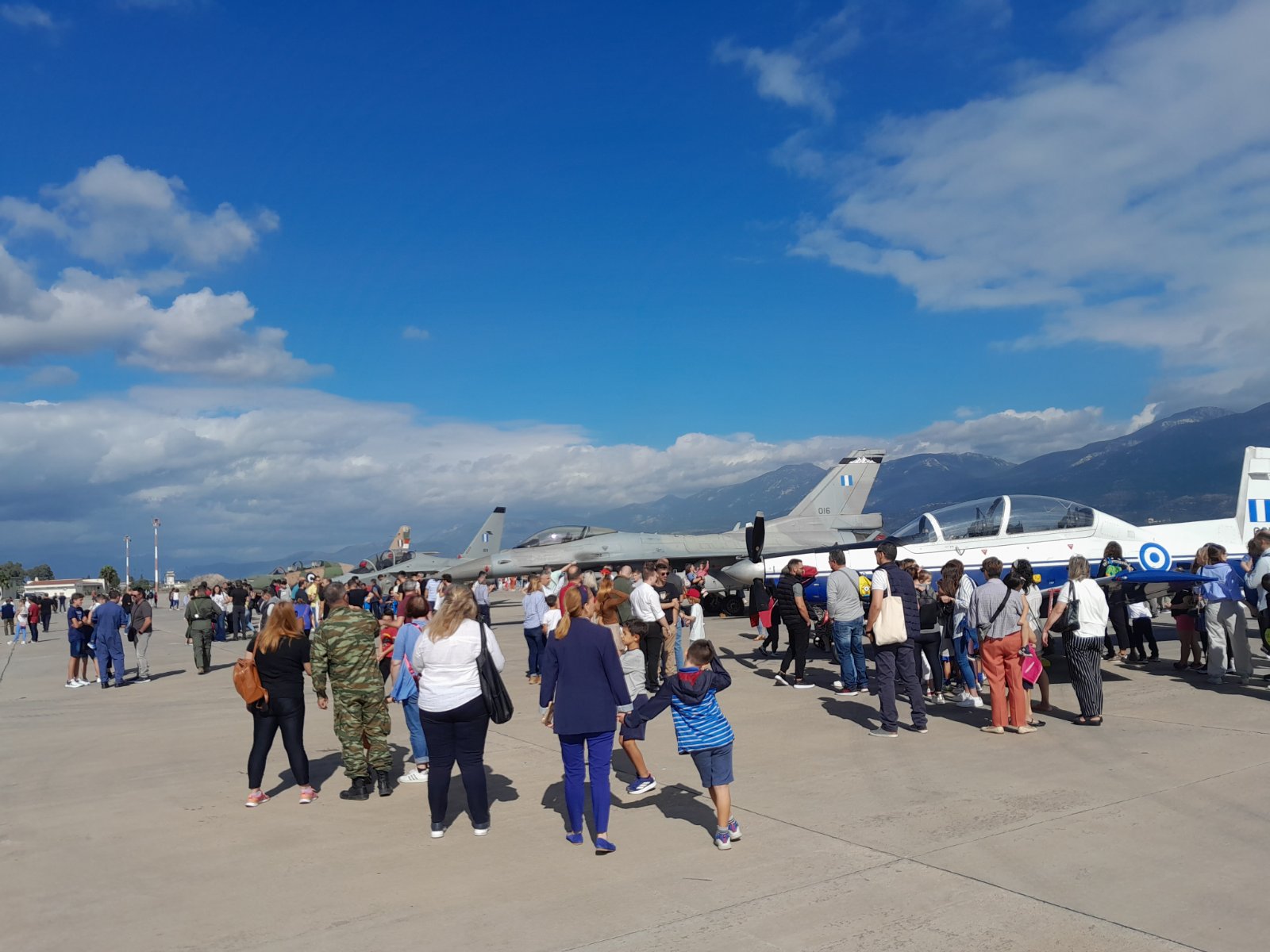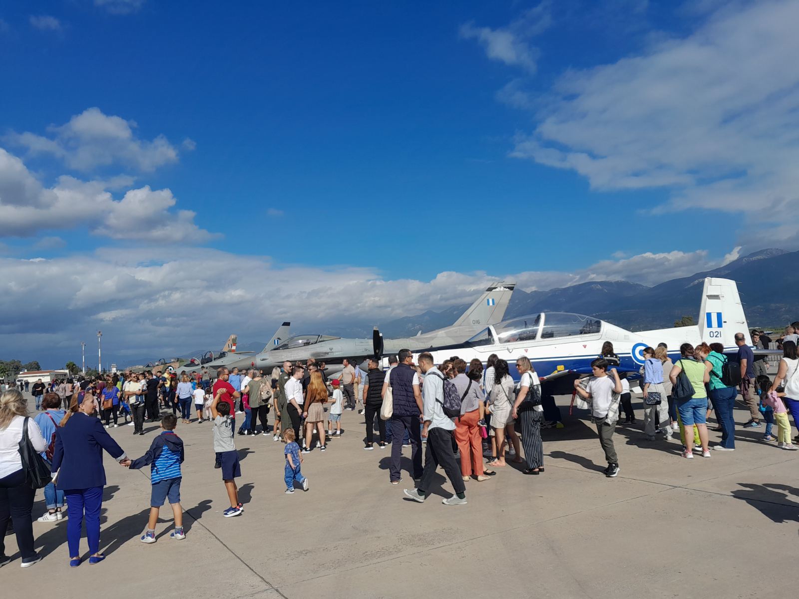 Η στατική έκθεση περιλαμβάνει το νέο εκπαιδευτικό αεροσκάφος Μ-346, τα παλιά εκπαιδευτικά Τ-2 και Τ-6 και το μαχητικό F-16.