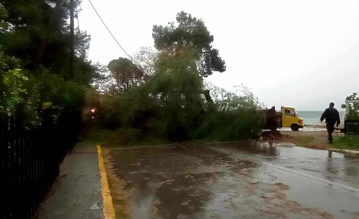 Στο σημείο έσπευσε η Τροχαία και η Πυροσβεστική για την κοπή του δέντρου και την απομάκρυνση του.