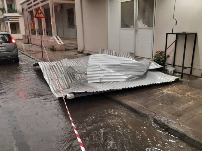 Στην οδό Ακρίτα, στη διασταύρωση με τη Βασιλ. Κωνσταντίνου, από τον δυνατό αέρα που κράτησε για λίγα λεπτά, μεγάλο κομμάτι τσίγκου “πέταξε” από την ταράτσα της πολυκατοικίας (πάνω από τον 5ο όροφο) και “προσγειώθηκε” στο πεζοδρόμιο δίπλα σε αρτοποιείο. Το ευτύχημα ήταν ότι δεν χτύπησε κάποιον άνθρωπο, δεν προκάλεσε σοβαρό ατύχημα.