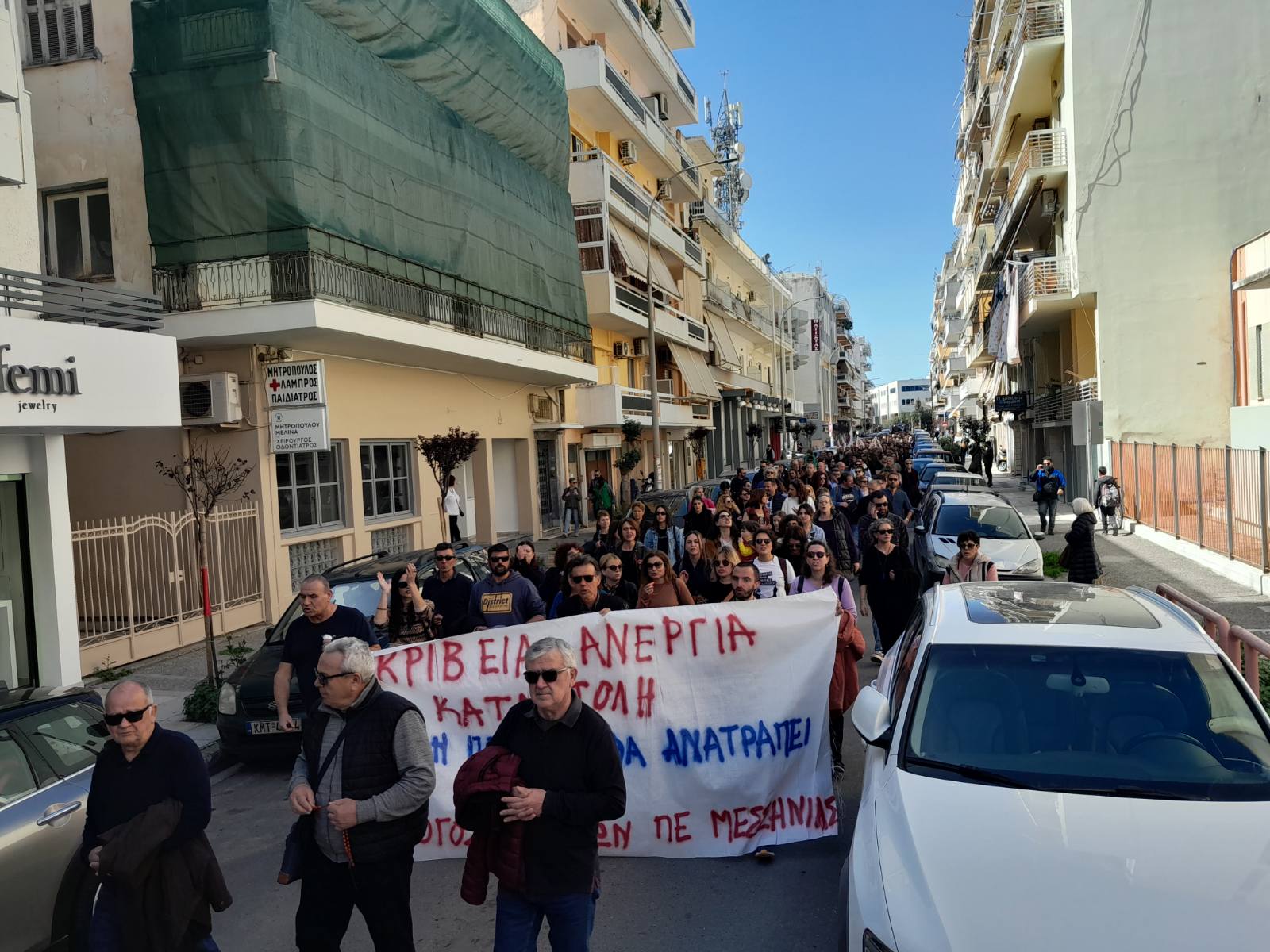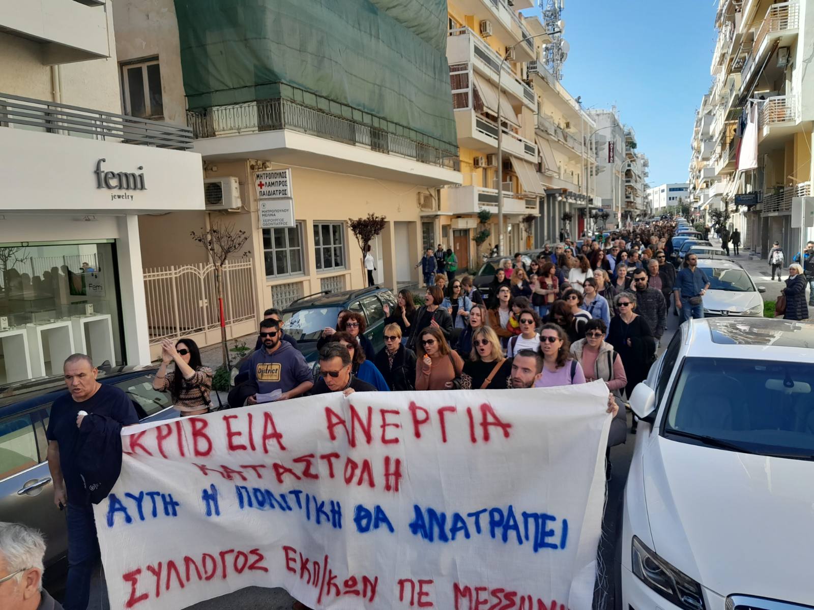 Στη συγκέντρωση μπροστά από το παλιό Δημαρχείο Καλαμάτας, στον πεζόδρομο της Αριστομένους, όπου τηρήθηκε ενός λεπτού σιγή στη μνήμη των θυμάτων της τραγωδίας - εγκλήματος των Τεμπών, χαιρετισμούς απηύθυναν: Ο αντιπρόεδρος του Νομαρχιακού Τμήματος Μεσσηνίας της ΑΔΕΔΥ Κώστας Γαλιώτος, οι πρόεδροι της Α’ ΕΛΜΕ Μεσσηνίας Αλέξης Χαραλαμπιδόπουλος, του Σωματείου Εργαζομένων στις ΔΕΥΑ Μεσσηνίας Σταυρούλα Στραβάκου, του Συλλόγου Εκπαιδευτικών Πρωτοβάθμιας Εκπαίδευσης Μεσσηνίας Χριστίνα Λαδά, του Συλλόγου Εργαζομένων στο Νοσοκομείο Καλαμάτας Δημήτρης Τσιλίκας, του Σωματείου Ειδικευμένων Ιατρών ΕΣΥ Μεσσηνίας Χρυσάνθη Μάλλιου, η μαθήτρια του Μουσικού Σχολείου Καλαμάτας Κατερίνα Χρυσανθακοπούλου, ο αντιπρόεδρος του Αγροτικού Συλλόγου Μεσσήνης Κώστας Δουρούμης, ο εκπρόσωπος της Ομοσπονδίας Ιδιωτικών Υπαλλήλων Γιώργος Κανέλης, ο πρόεδρος του Συνδικάτου Οικοδόμων Μεσσηνίας Παναγιώτης Καράμπελας, η πρόεδρος του Συλλόγου Υπαλλήλων Περιφερειακής Ενότητας Μεσσηνίας Δήμητρα Δημητρούλια, ο Αρης Κομπότης από το ΣυνδικάτΟ Γάλακτος Τροφίμων και Ποτών, ο Παναγιώτης Κοντογιάννης από το Σύλλογο Υπαλλήλων ΙΚΑ - ΕΦΚΑ, ο Γιάννης Λαγογιάννης από το Συνδικάτο Υπαλλήλων στον Ιδιωτικό Τομέα Μεσσηνίας.