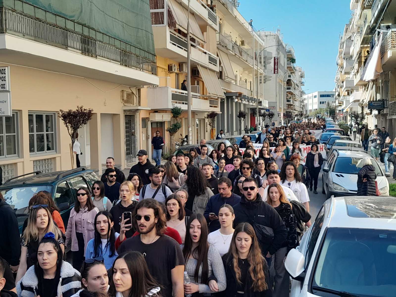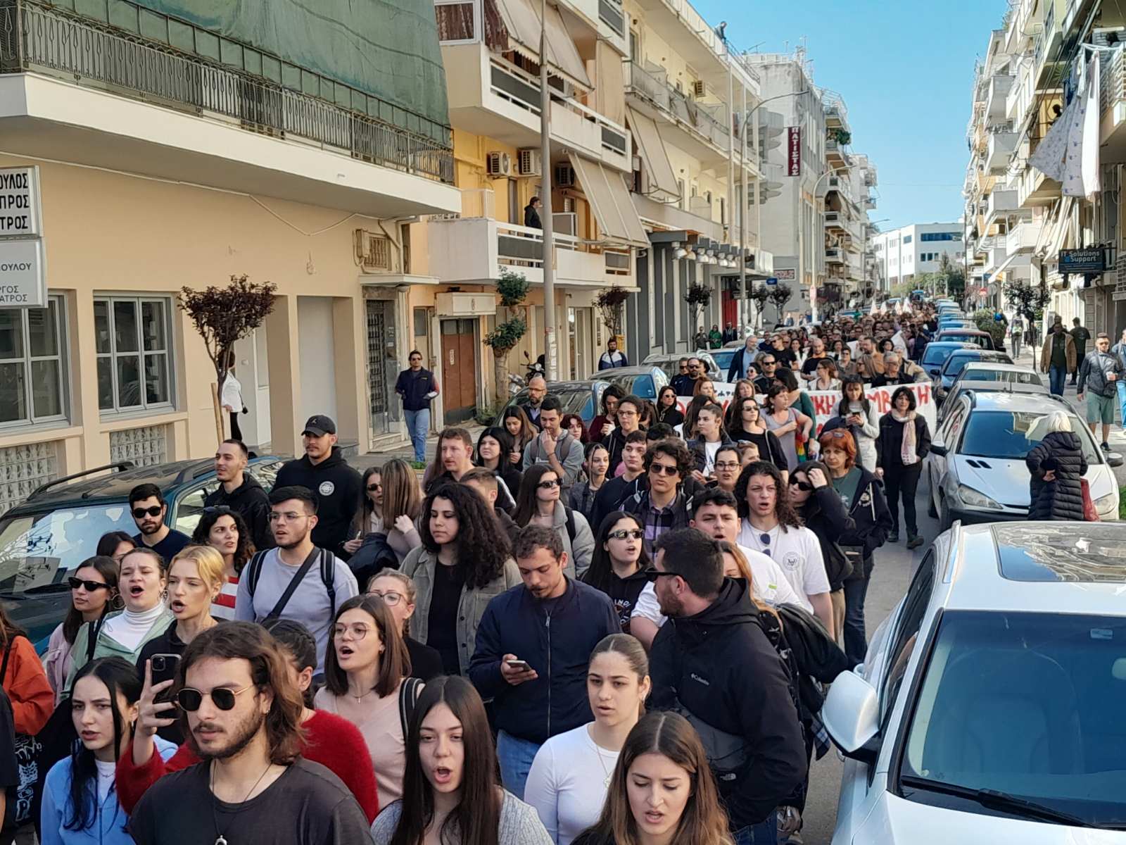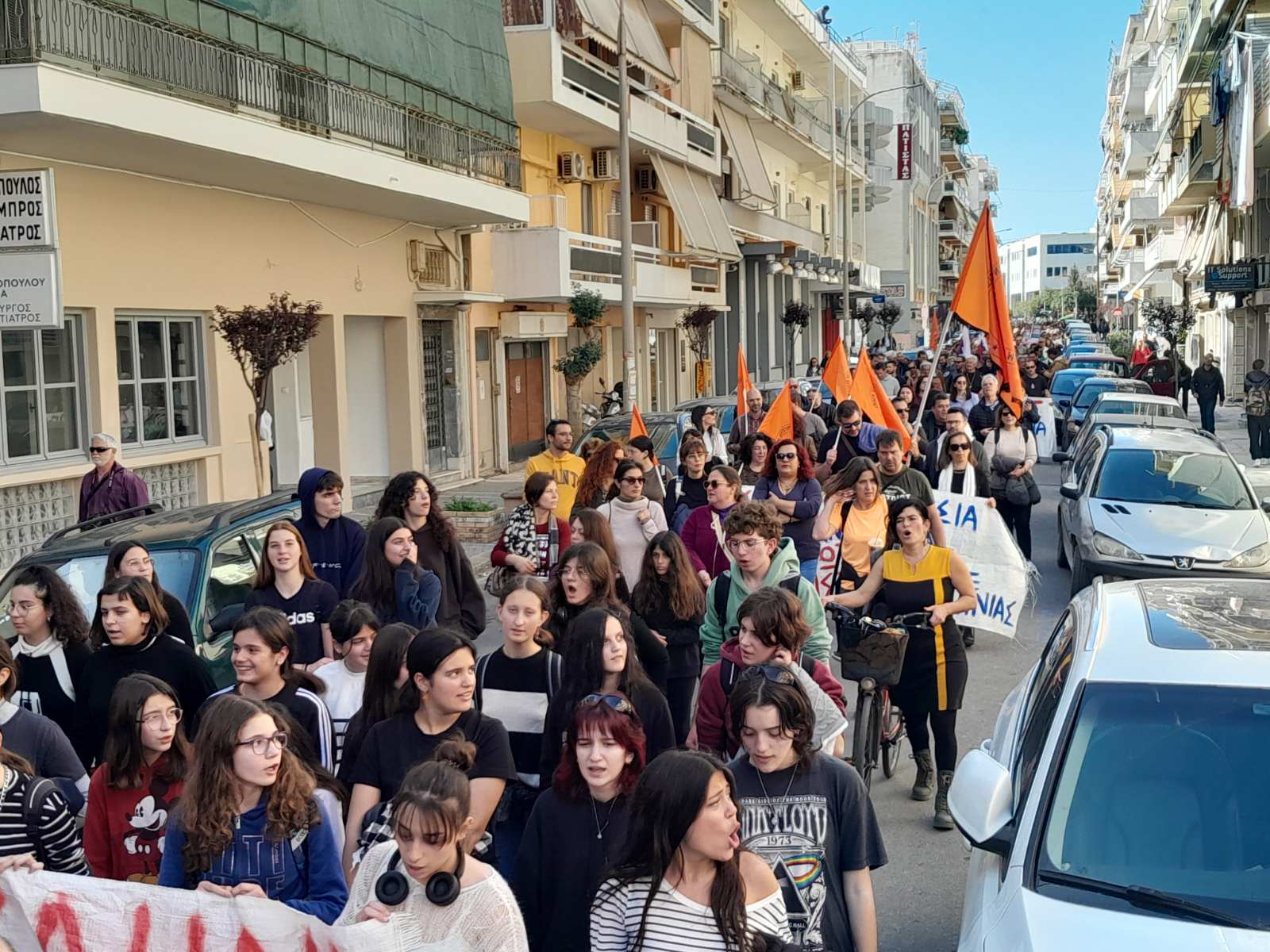 Η μαθήτρια Κατ. Χρυσανθακοπούλου που εκπροσώπησε τους μαθητές του Μουσικού Σχολείου, υποσχέθηκε ότι “δεν θα ξεχάσουμε τα παιδιά που χάθηκαν στα Τέμπη” και ζήτησε “να μην συγκαλυφθεί το έγκλημα στα Τέμπη, δημόσια δωρεάν υγεία και παιδεία και να νιώθουμε ασφάλεια στη χώρα μας”.