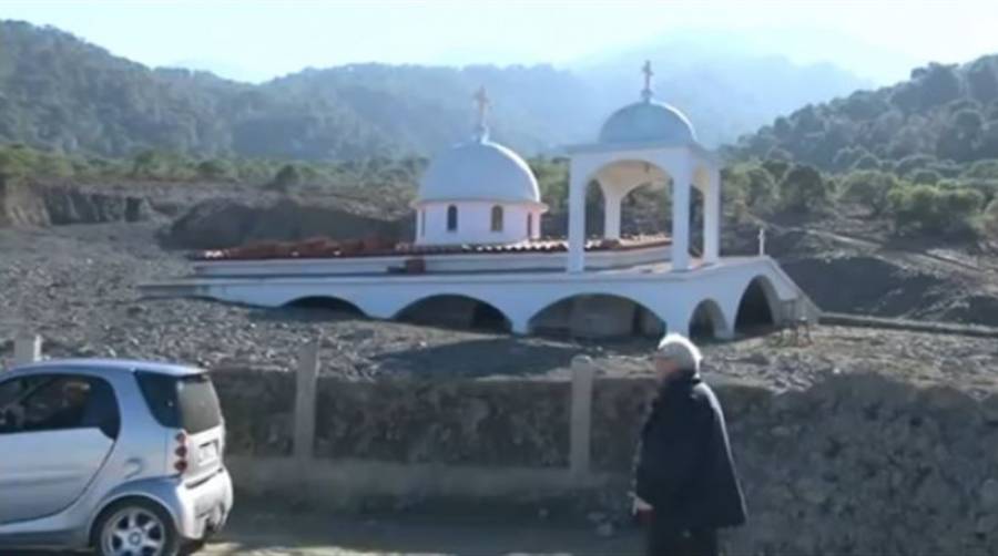 Είναι τέτοια η καταστροφή σε σημείο που τα μπάζα έθαψαν κυριολεκτικά εκκλησία στο ύψος του οικισμού “Βαμβακιές”.Μπορεί να ακούγεται απίστευτο αλλά η εκκλησία Αγίας Παρασκευής σκεπάστηκε μέχρι την οροφή της και μόνο ο τρούλος ξεχωρίζει..!