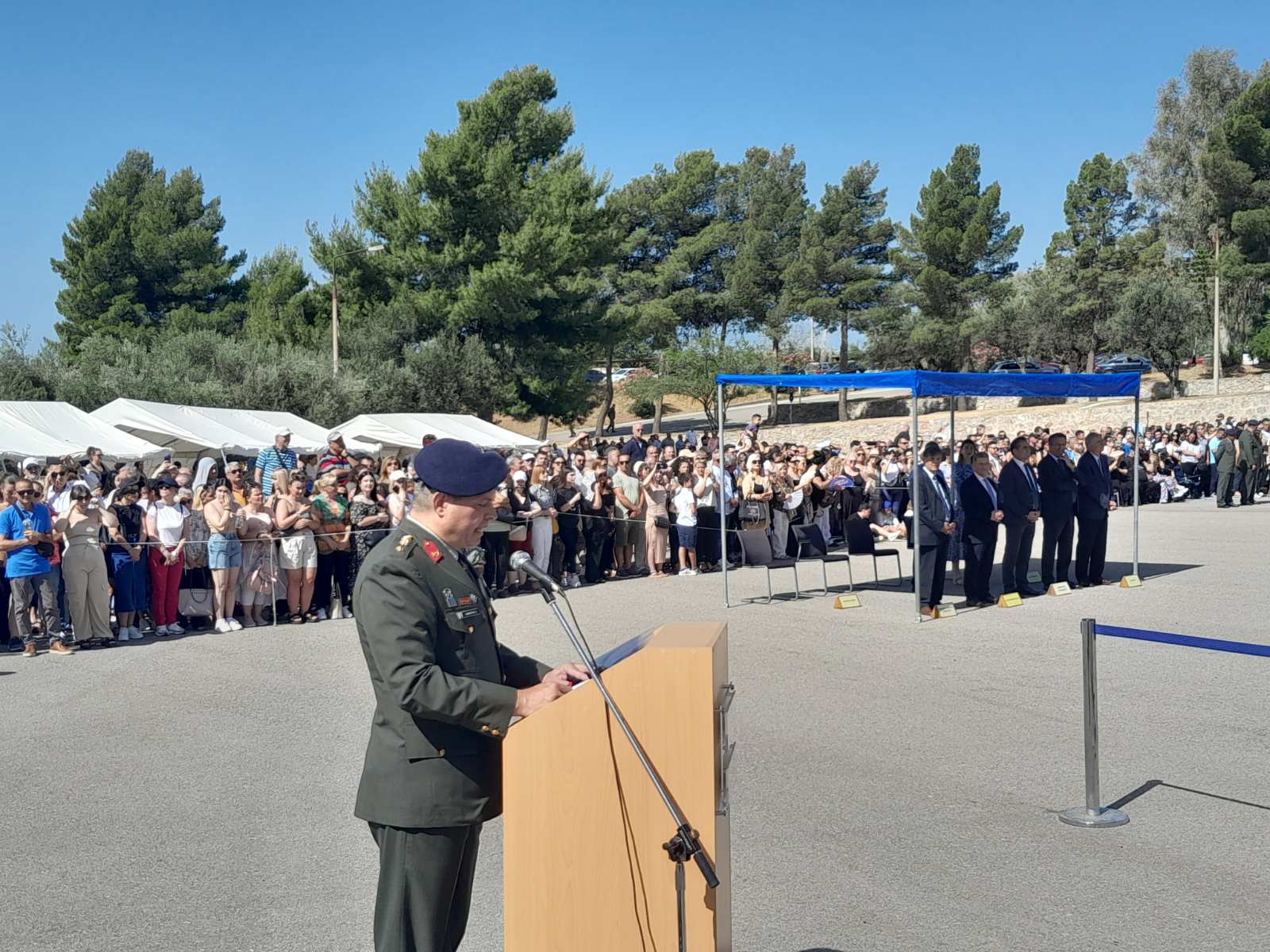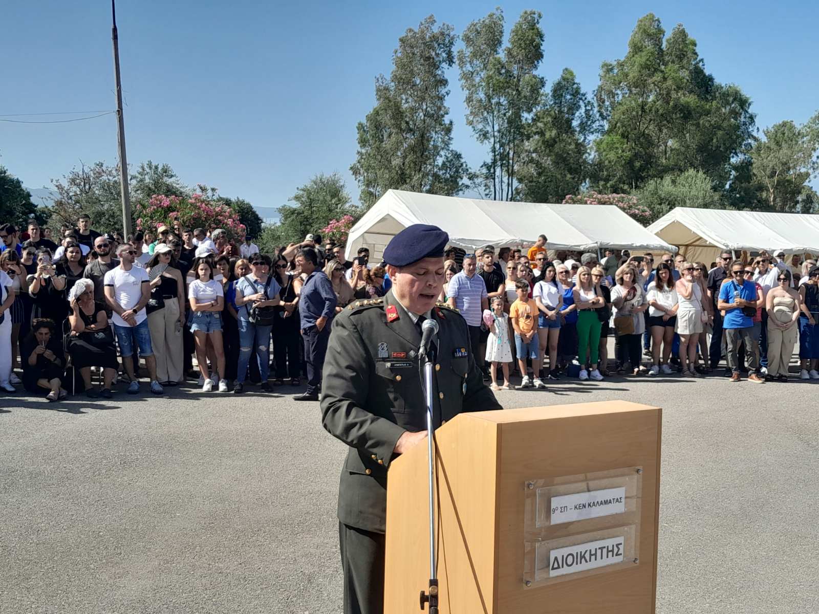 Σε χαιρετισμό του ο διευθυντής του Α’ Κλάδου της Ανώτατης Στρατιωτικής Διοίκησης Υποστήριξης Στρατού (ΑΣΔΥΣ) Σπυρίδων Παπαρούπας, διάβασε μήνυμα του Αρχηγού ΓΕΣ - αντιστράτηγου Γιώργου Κωστίδη προτρέποντας τους νεοσυλλέκτους να πορευτούν “με πίστη και αφοσίωση στο καθήκον” και “να είστε περήφανοι που σας δίνετε η δυνατότητα να υπερασπίσετε το σημαντικότερο αγαθό του ανθρώπου, την ελευθερία”.