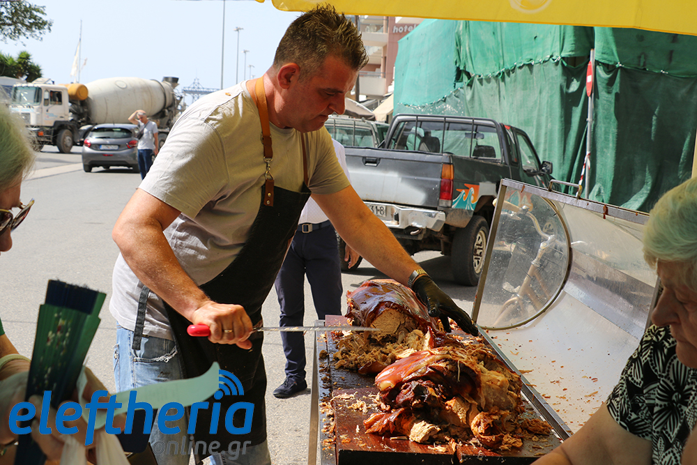 Η παραδοσιακή γουρνοπούλα είχε την τιμητική της. Ο κόσμος της πόλης τίμησε το “έθιμο”, όπως το επέβαλε η μέρα. Από νωρίς το πρωί, με αφετηρία την Παραλία, στο τέρμα της οδού Ψαρών, πριν κοντά στον πανηγυρίζοντα ναό, ο κόσμος έσπευσε και αγόρασε από τις γουρνοπούλες που διέθεταν τα καταστήματα υγειονομικού ενδιαφέροντος, καφενεία - ταβέρνες, ψησταριές, καθώς και τα κρεοπωλεία.